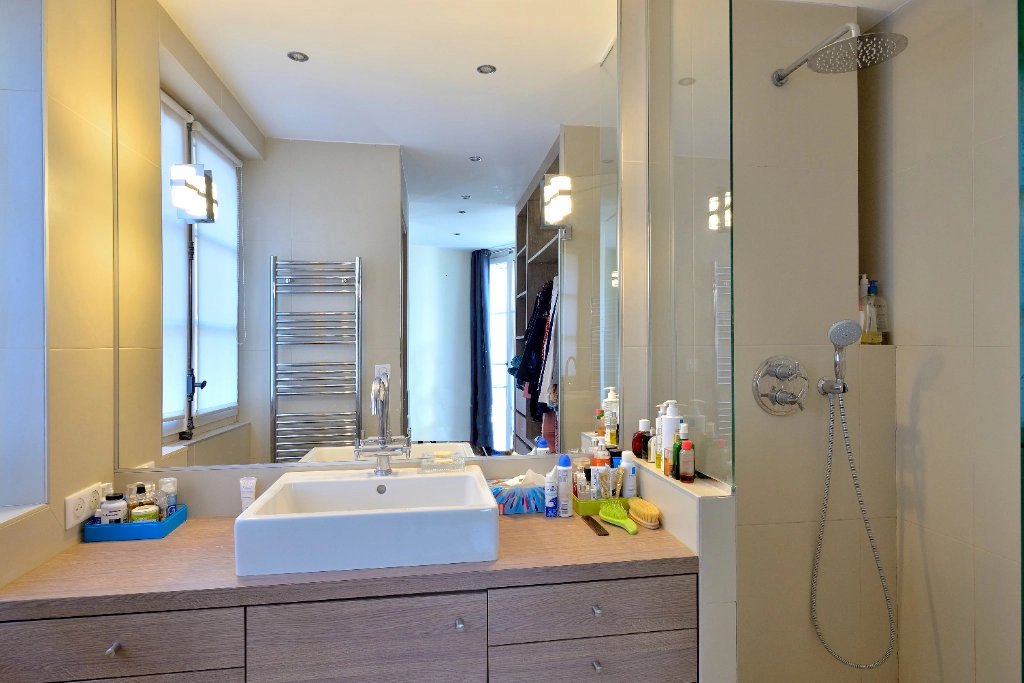 • The apartment benefits from outstanding brightness thanks to its high ceilings (rare for a 4th floor) and from the several windows facing the charming courtyard and the roofs of Paris.