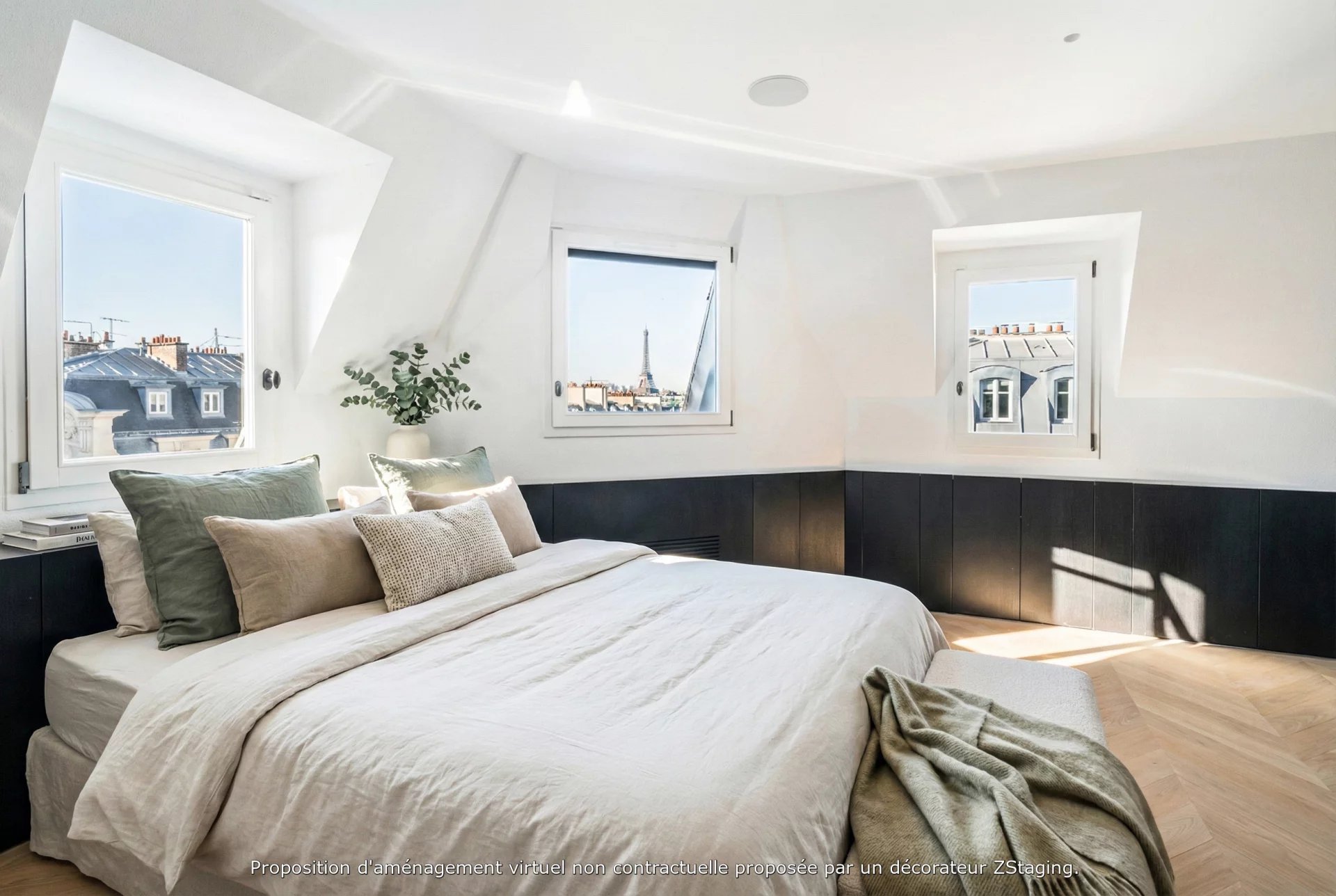 Sole agent. Paris 7. Saint Thomas d'Aquin Magnificent apartment in a prestigious old condominium. With a surface area of 190 m2, this duplex apartment on the top floors with elevator has been renovated to a very high standard. Offering beautiful views of the Eiffel Tower and the Dôme des Invalides, this property is composed as follows: 5th floor: - entrance gallery - south-facing double living room with dining room - separate fitted and equipped kitchen - bedroom with shower room 6th floor : - master bedroom with bathroom, sauna and dressing room - 3rd corner bedroom (now a fitness room) with shower room All bathrooms in marble, perfect layout with no loss of space, sun all day, air-conditioning throughout. Located in the heart of the Saint Thomas d'Aquin district, one minute from rue du Bac. Possibility of purchasing furniture in addition to the price. A rare property in the neighborhood.