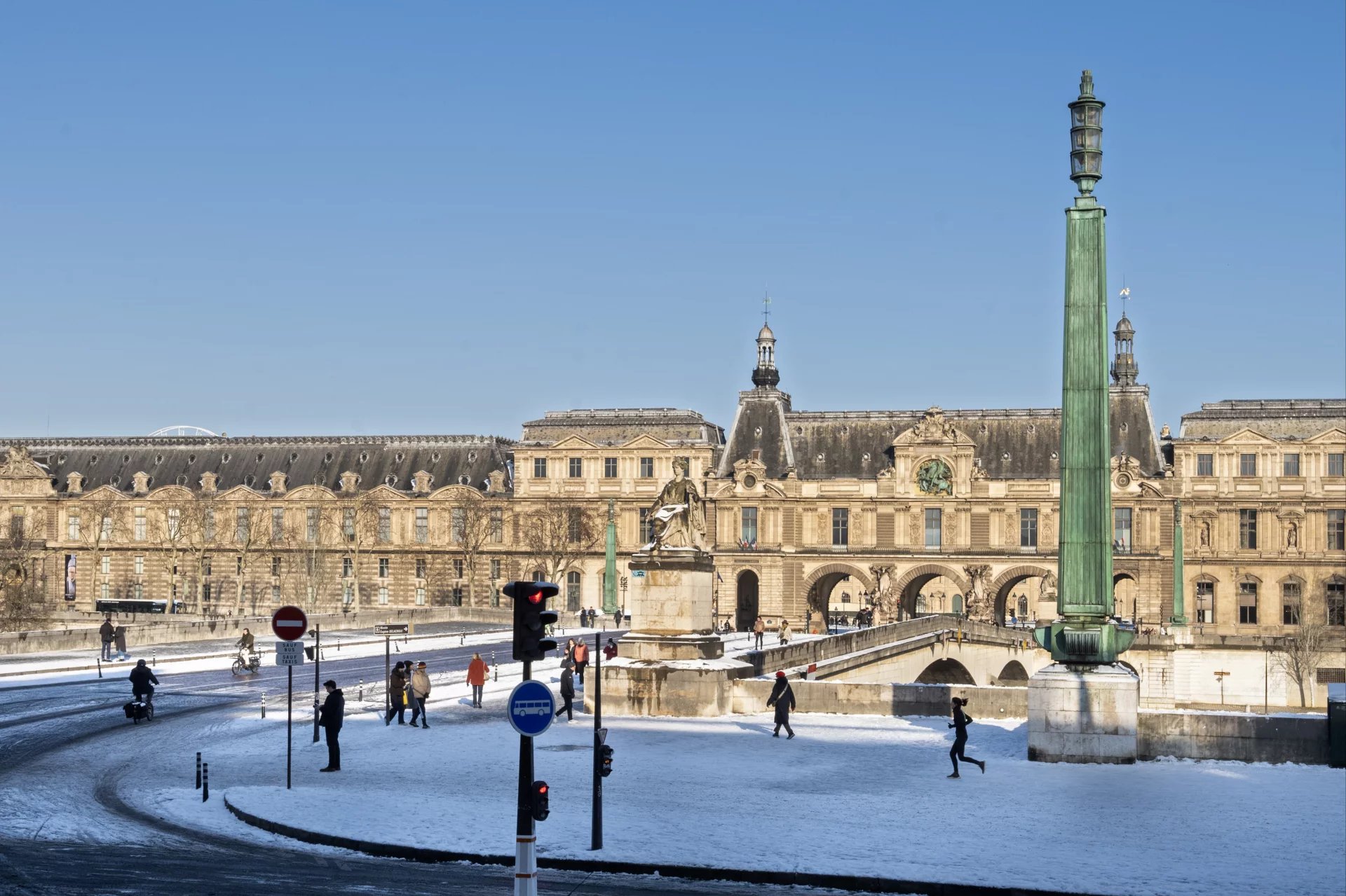 The property includes an entrance, a magnificent corner reception area with a west-facing exposure, enjoying a beautiful view of the Seine and the Louvre, a dining room, a fully equipped eat-in kitchen, two very large suites with bedroom, bathroom, dressing room, toilets, guest toilets, and plenty of storage.