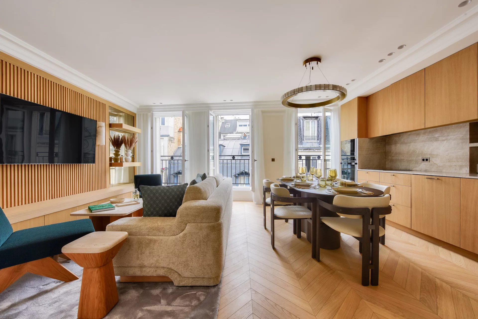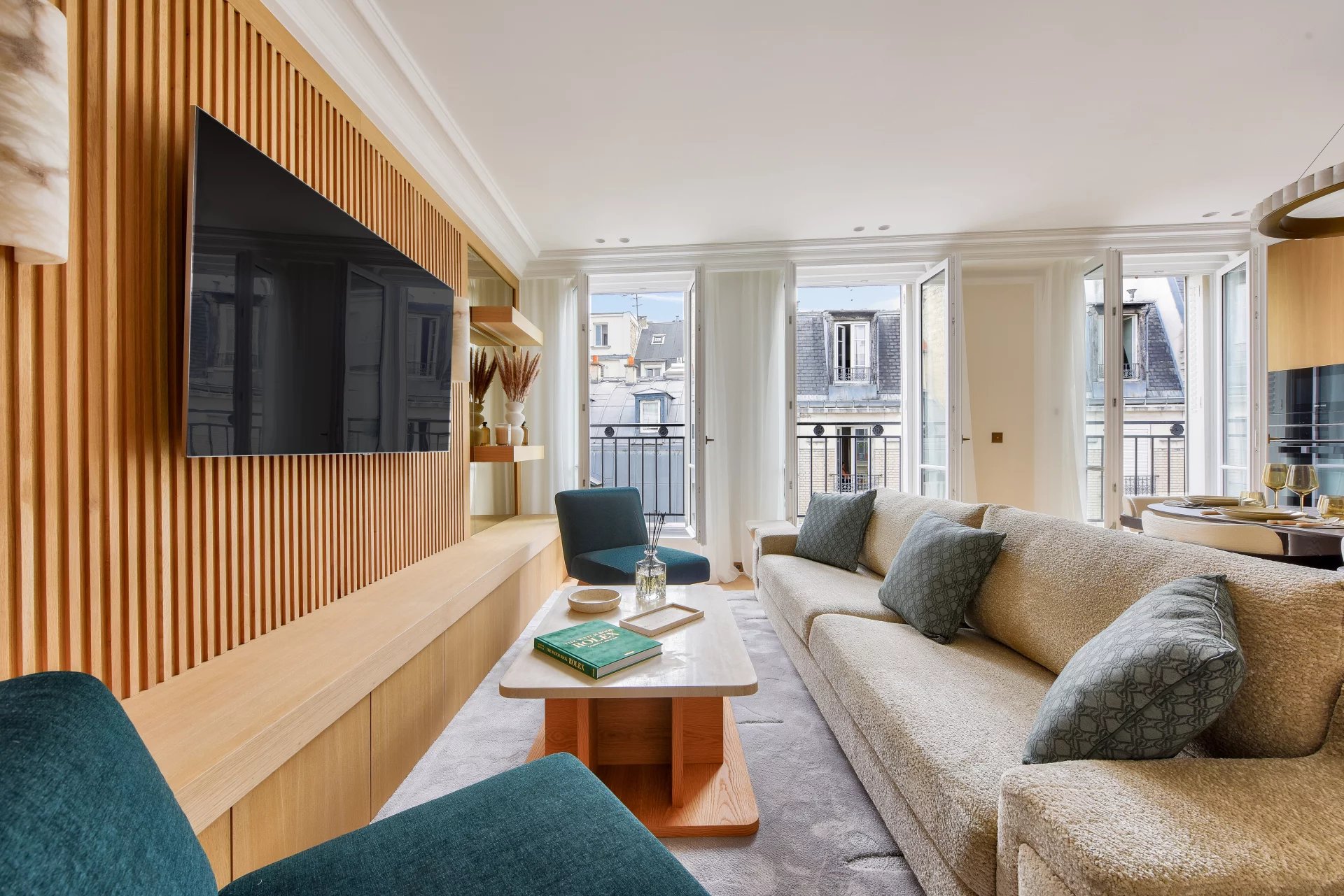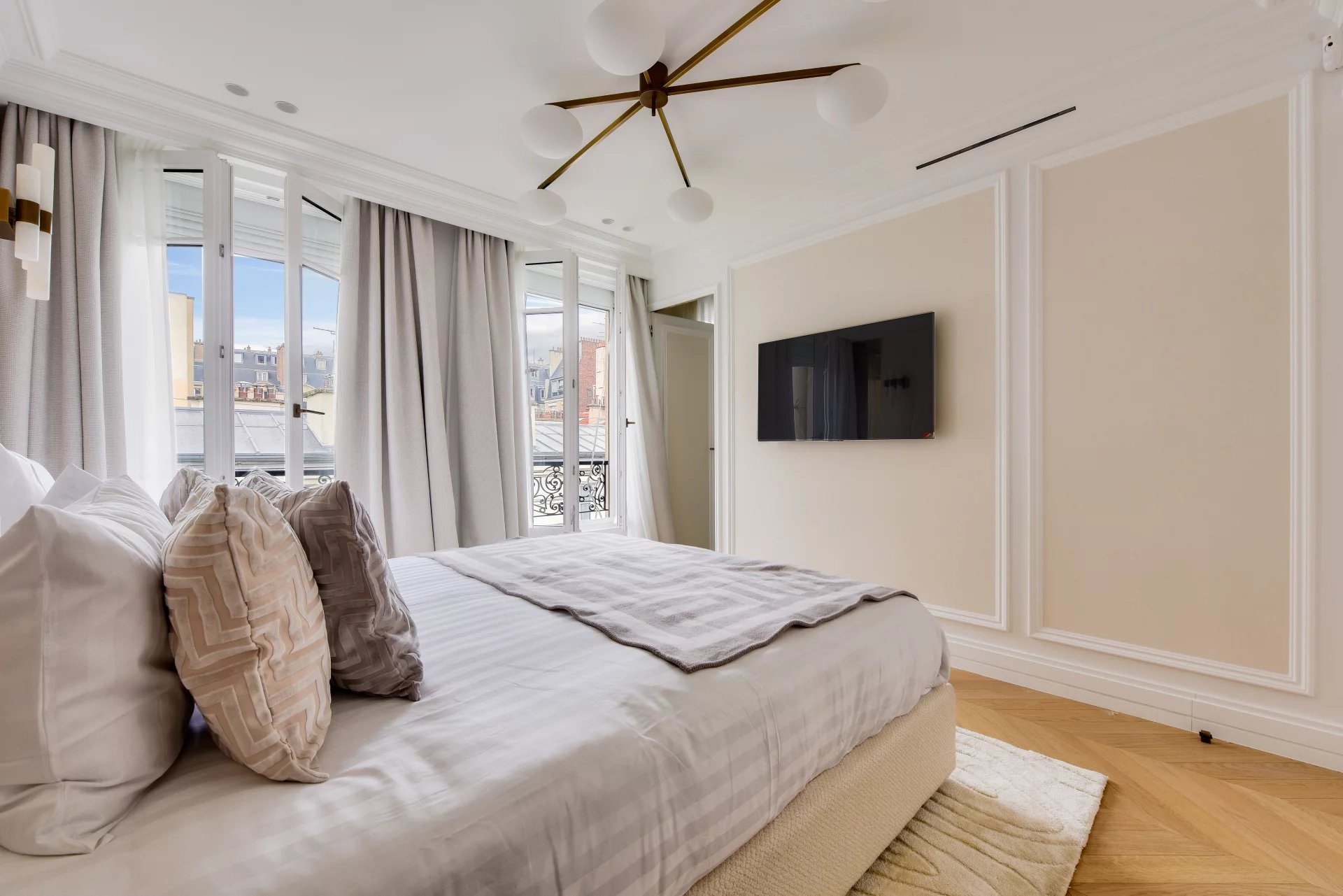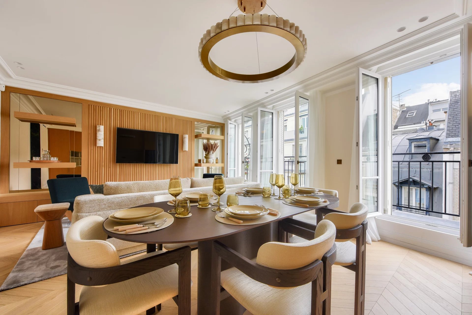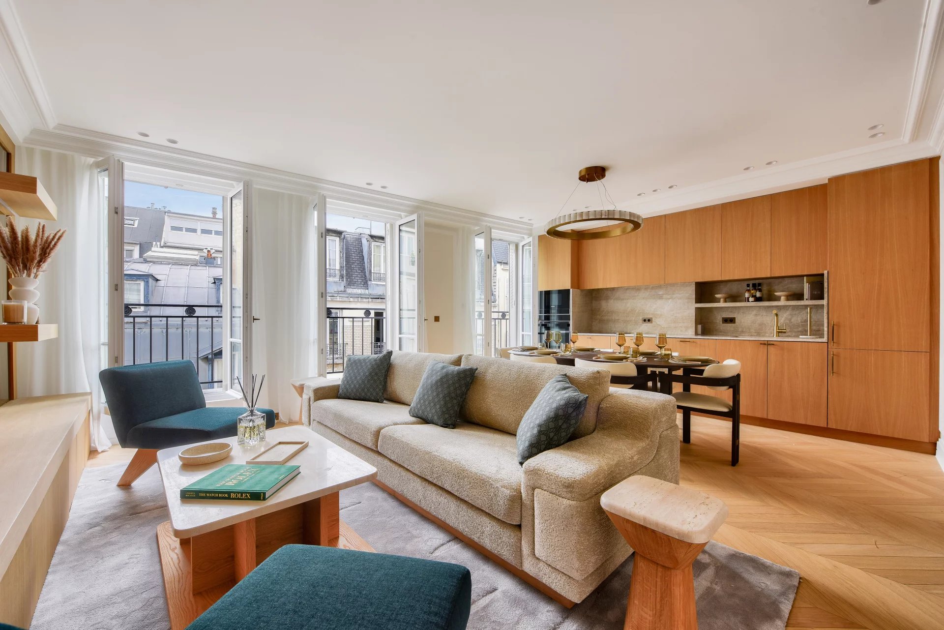 Bathed in light and surrounded by balconies, it offers a lovely view of the Arc de Triomphe. It comprises