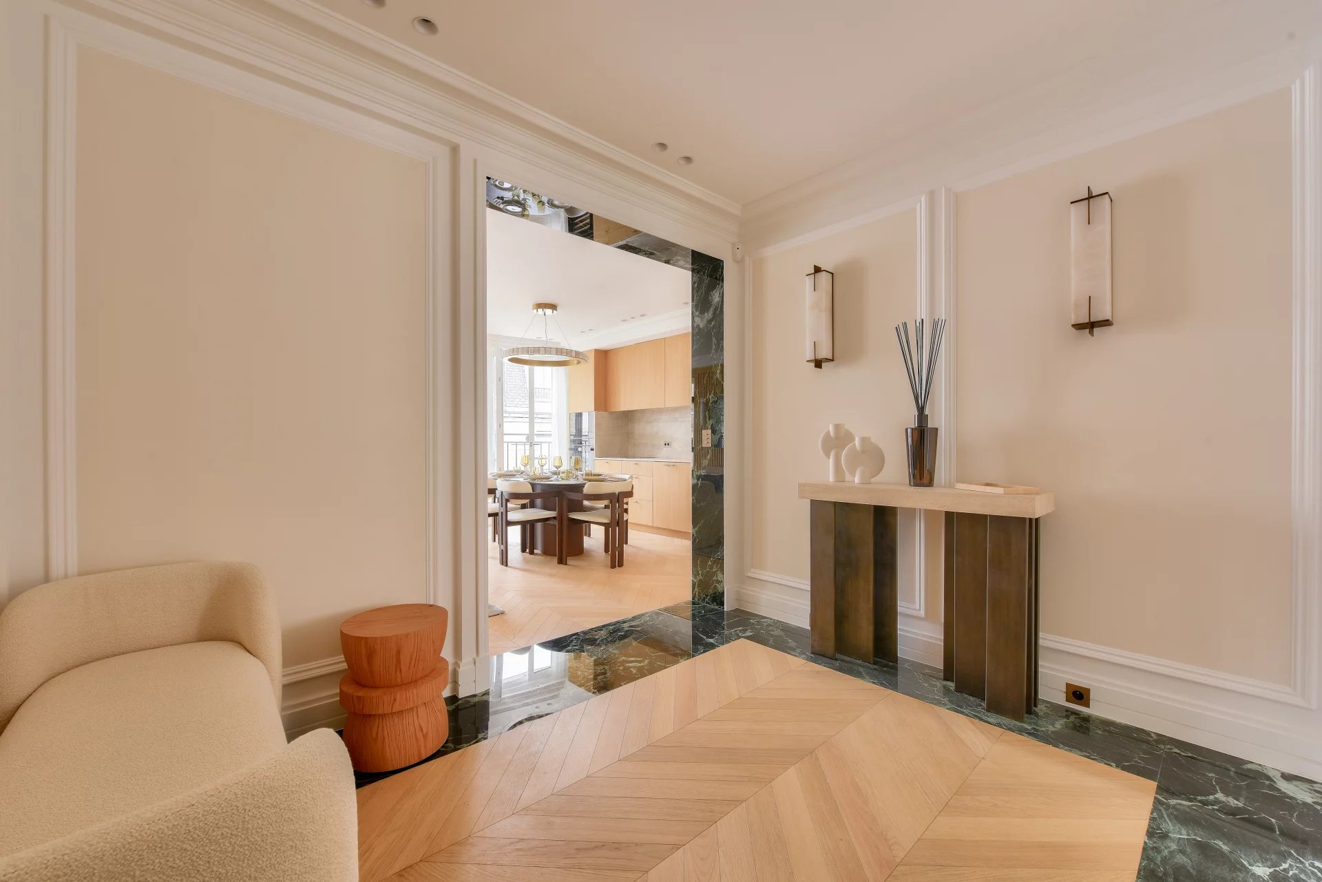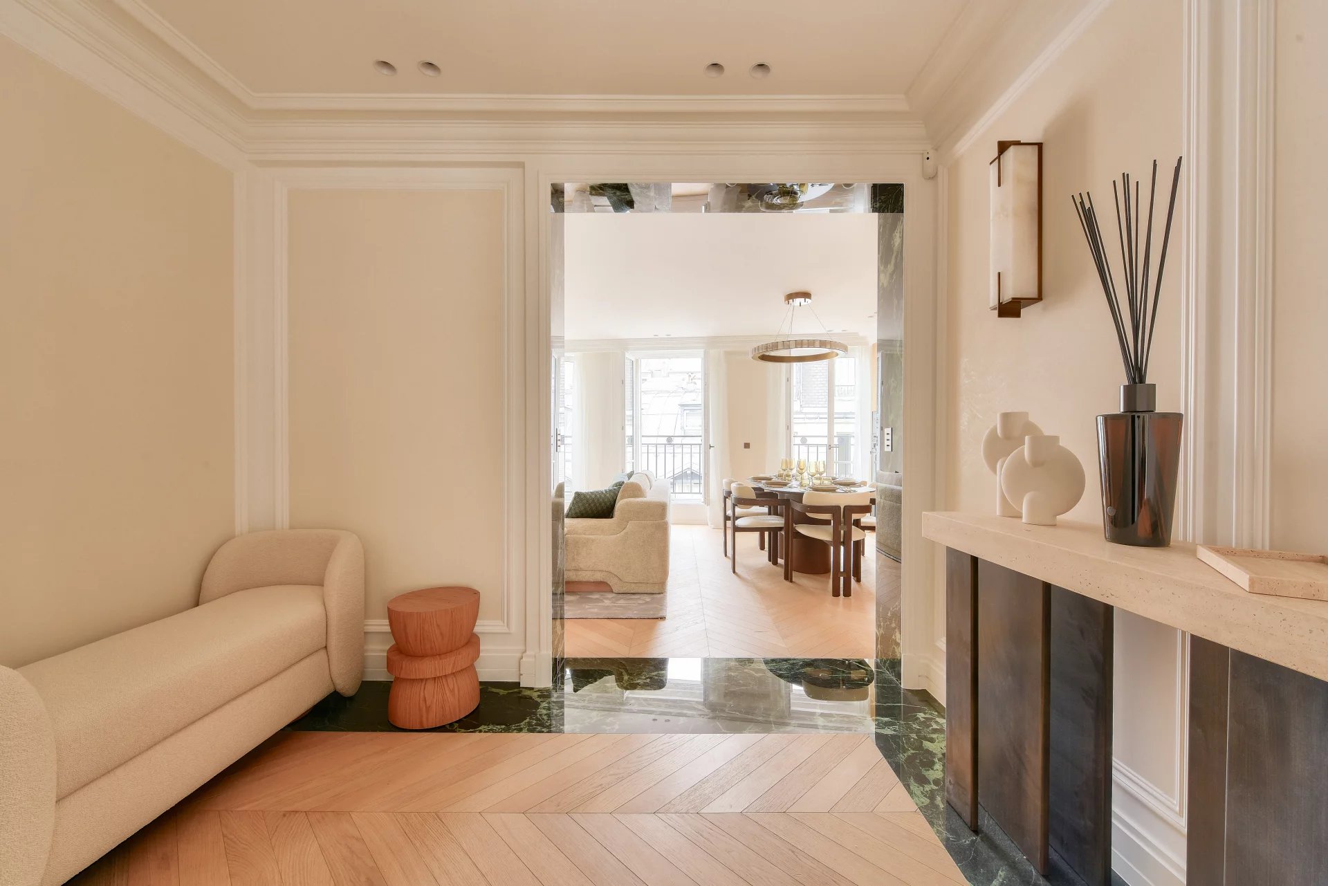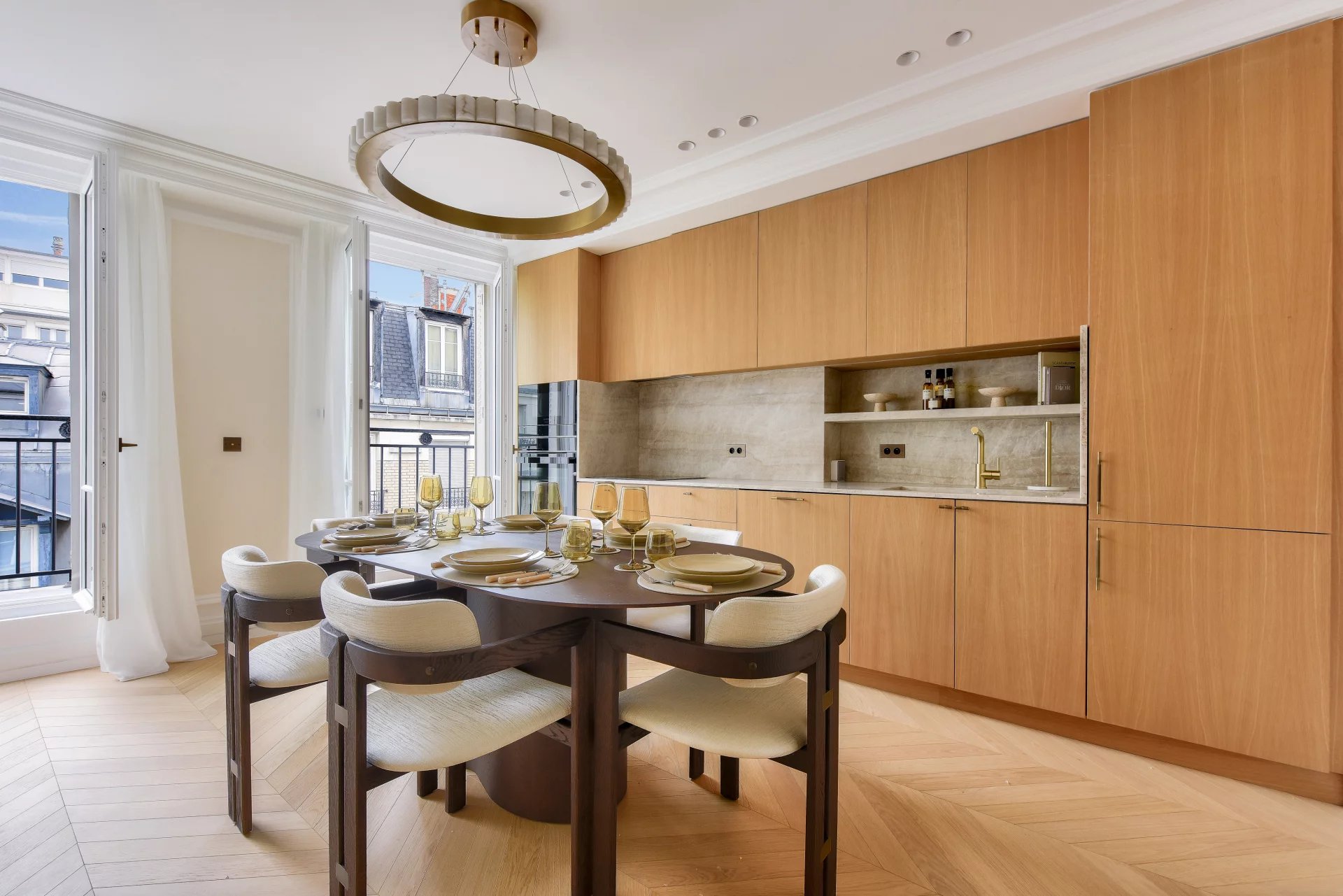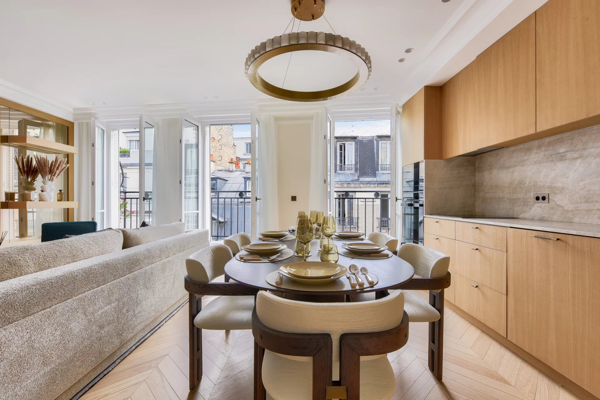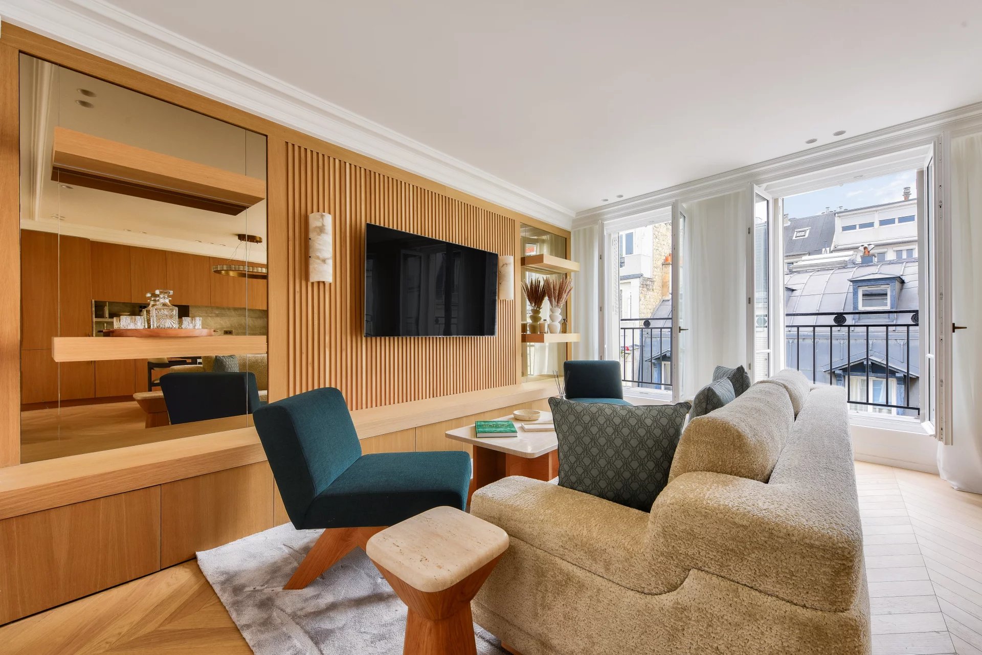Bathed in light and surrounded by balconies, it offers a lovely view of the Arc de Triomphe. It comprises