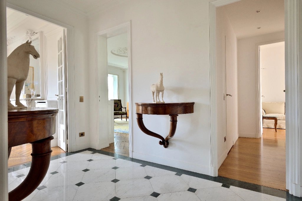 • The apartment features an elegant entrance hall and 3 large main rooms (living room, dining room and master suite with bathroom and dressing room) opening on the tree-lined Rue Royale and the urban landscape described just above.