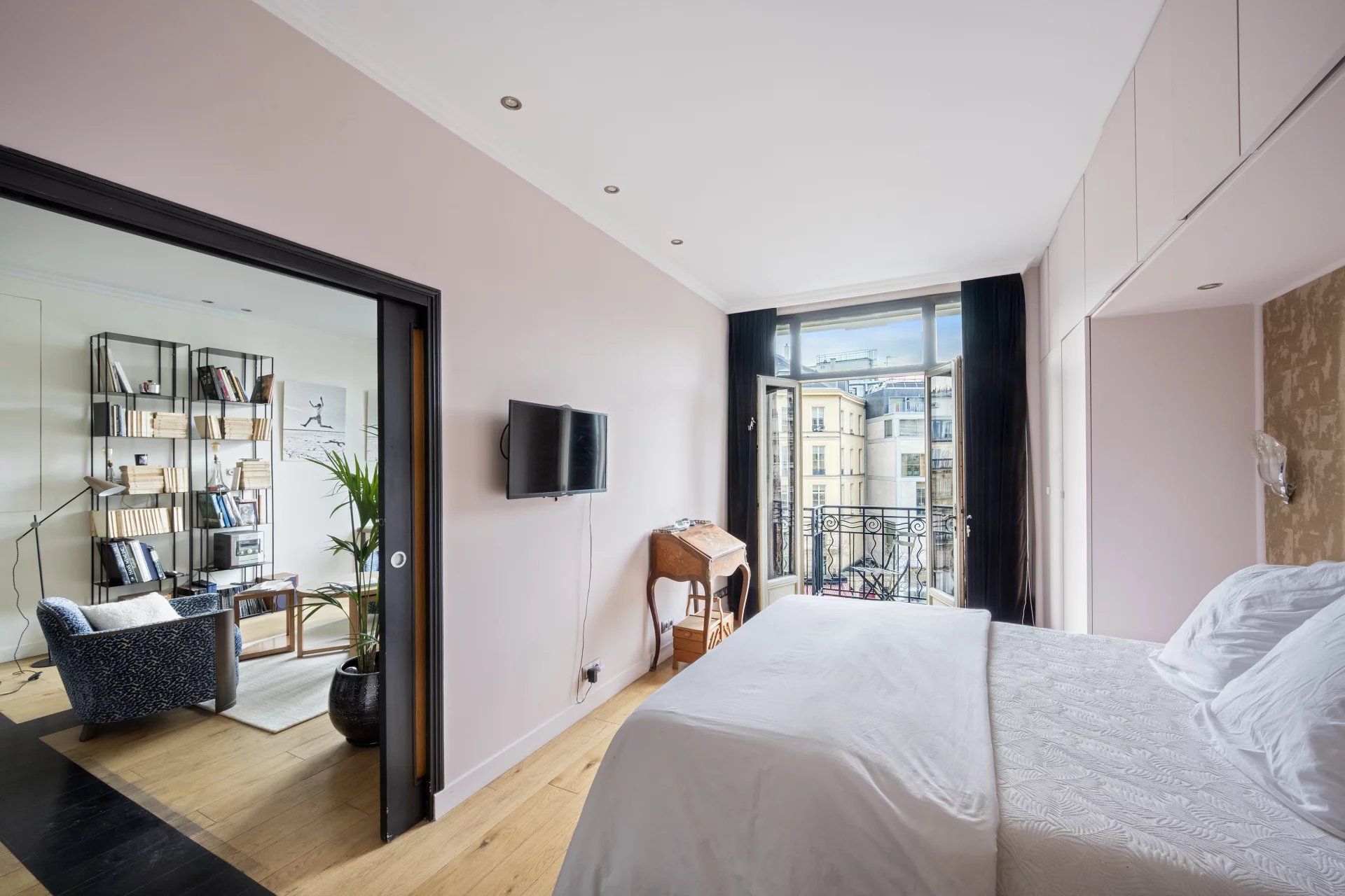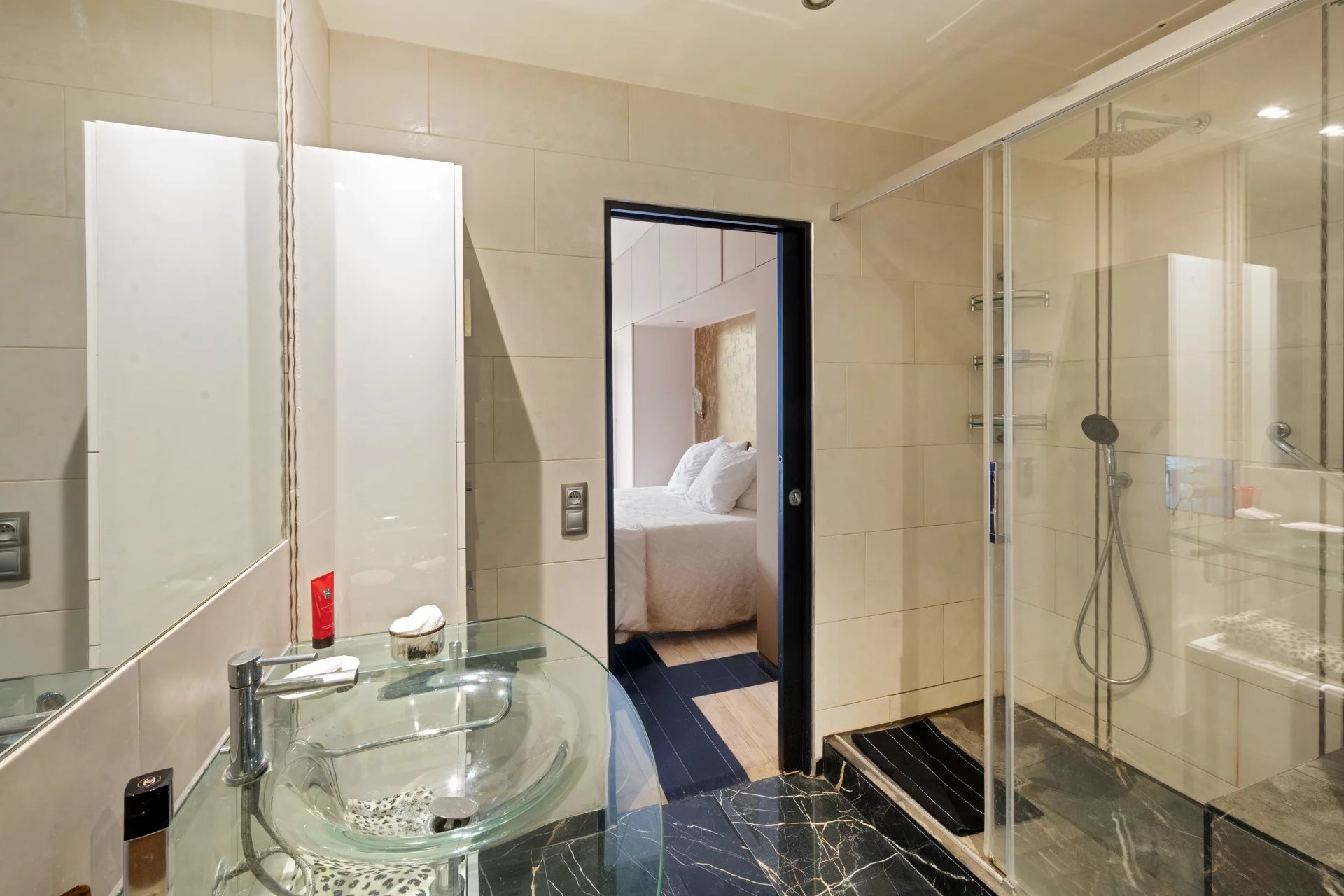 47 m² pied-à-terre apartment, south-facing, located on the 3rd floor with elevator in a remarkable Art Deco condominium, ideally located in the heart of the 9th arrondissement. Bathed in light, this property charms with its spacious rooms and harmonious layout. It offers a semi-open kitchen, a beautiful living/dining area opening onto a balcony with unobstructed views, and a large bedroom with its own balcony. A spacious bathroom with shower and toilet completes this rare property.