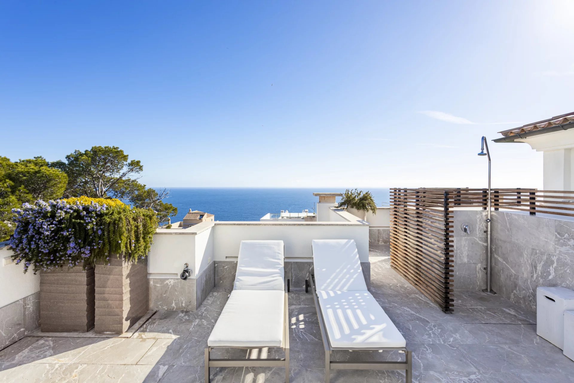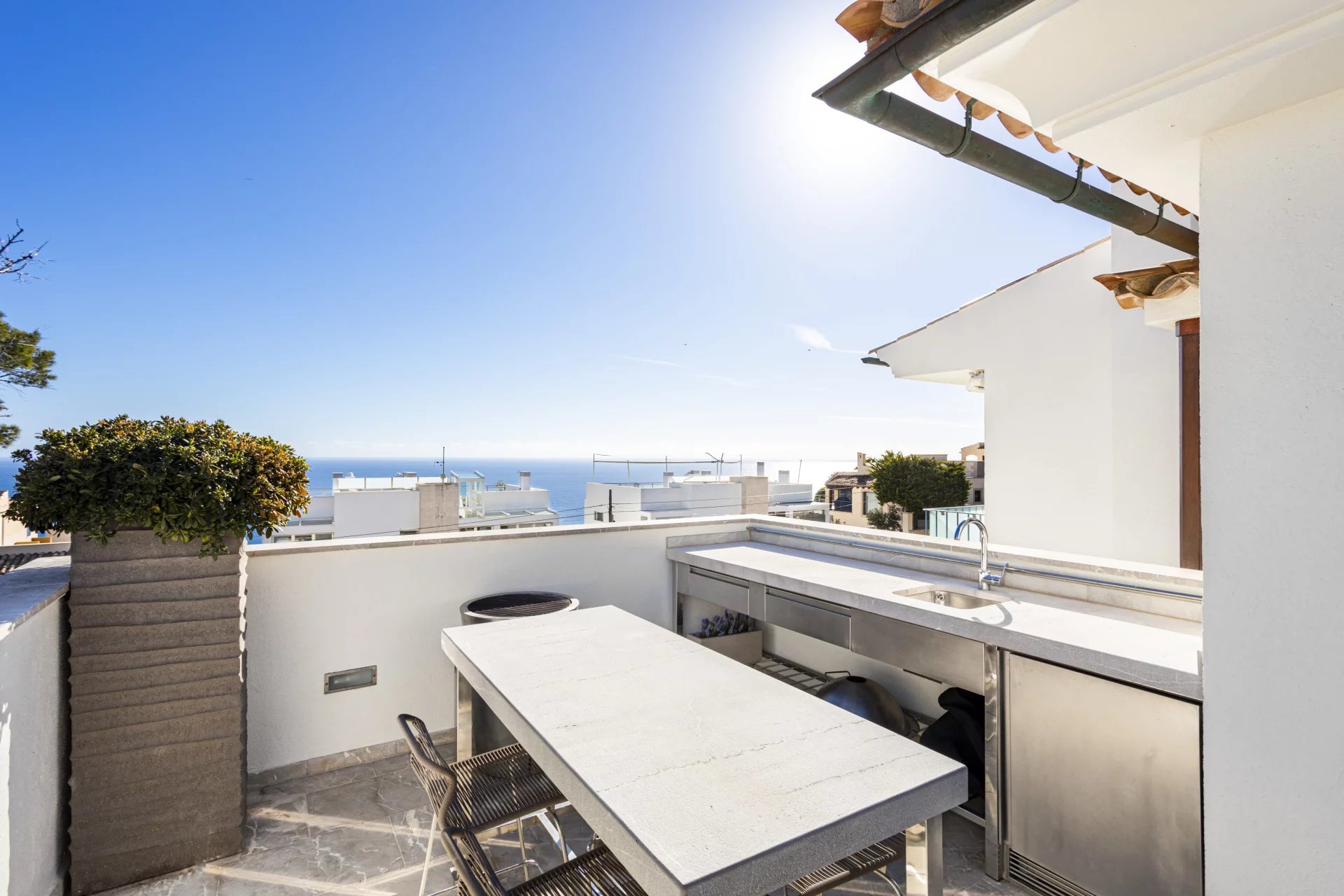 It is the epitome of indoor-outdoor living with the comfort of having the living area and 62 sqm of terraces on the same level with the added benefit of having an additional rooftop terrace of approx. 100 sqm with a marine summer steel kitchen, dining, lounge, and relaxation areas cleverly divided with handmade clay pots and plants creating the perfect ambiance, an automatic irrigation system, and designer outdoor furniture.