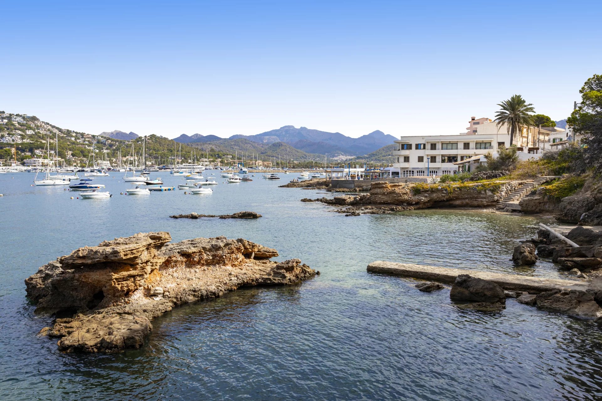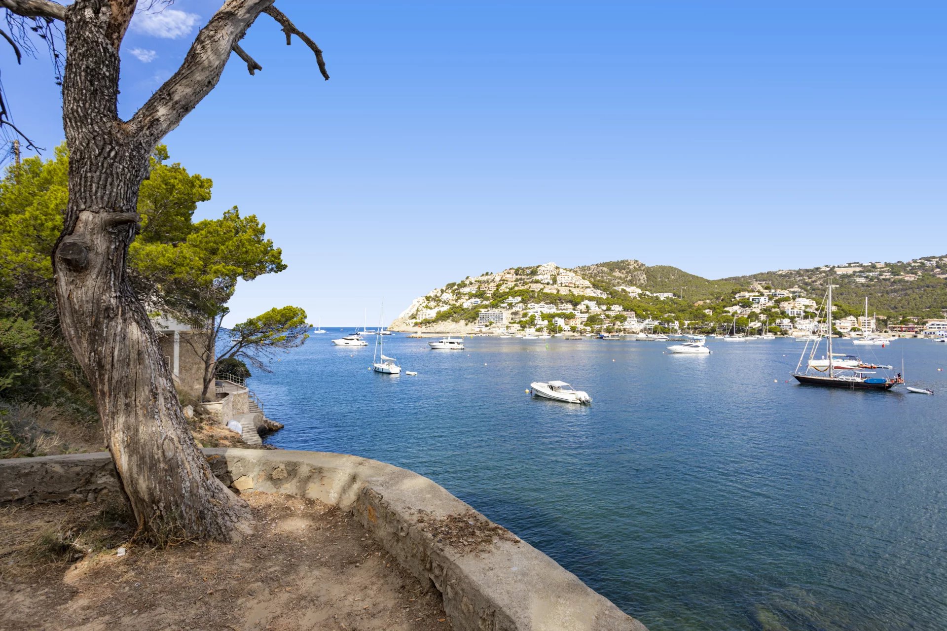 The Port of Andrach (officially and in Catalan Port d'Andratx) is a natural port of the Balearic Islands, surrounded by coves with transparent waters such as Cala Llamp, Cala Moragues, and Cala d'Egos. This modern port town, with 3,000 inhabitants, has gone from being a former fishermen's refuge to being one of the most important and visited tourist centers in Mallorca, thanks to its nautical activity, which is conducive to very exclusive residential tourism. El Puerto is a cosmopolitan and lively place, where many cultures mix and shopping, sun, and nightlife are combined. It also offers an infinity of activities related to the sea. However, it has one of the best-equipped marinas on the Islands, the Puerto de Andrach Sailing Club, with about 500 berths occupied by sports and pleasure boats. Shops and restaurants with pleasant terraces overlooking the sea overlook the promenade, which leads to the lighthouse and the Club de Vela, passing through the small torrent des Saluet. The Port of Andrach has a select hotel infrastructure and also some of the most renowned establishments in the island's gastronomic offer. In the afternoon, it becomes one of the liveliest areas of the municipality. From the port, it is possible to go to Sa Mola, from where you can admire a splendid sunset and the open sea with the island of Dragonera