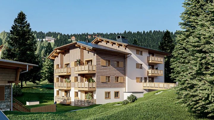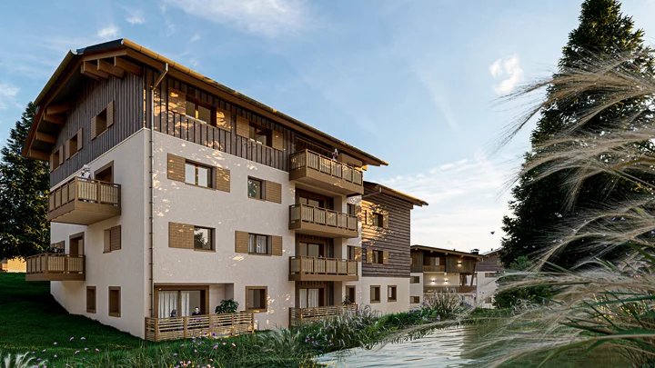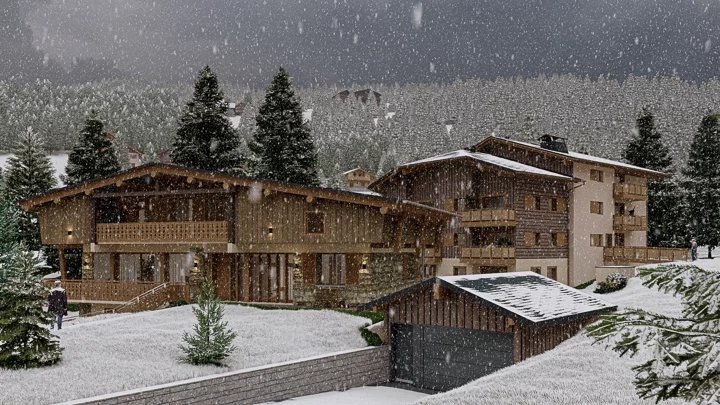 The 1907 new-build development, a piece of paradise in the heart of Val d'Arly. At the gateway to the Espace Diamant and just 4 km from Megève, this new development is ideally located in the centre of the resort of Praz-sur-Arly. Comprising 22 apartments, the development is inspired by traditional Alpine architecture and blends perfectly into this small mountain village. The residence comprises two new buildings on a and two renovated half chalets. The interiors have been designed to optimise space for your well-being and comfort. In an ideal living environment, surrounded by snow-capped peaks and lush green mountain pastures, this new address invites you to contemplate the panorama while enjoying all the amenities of a real Haute-Savoie village on foot. Ski-lovers can easily reach the Crêt du Midi chairlift (600m away) with the free shuttle bus, which stops directly at the foot of the residence.