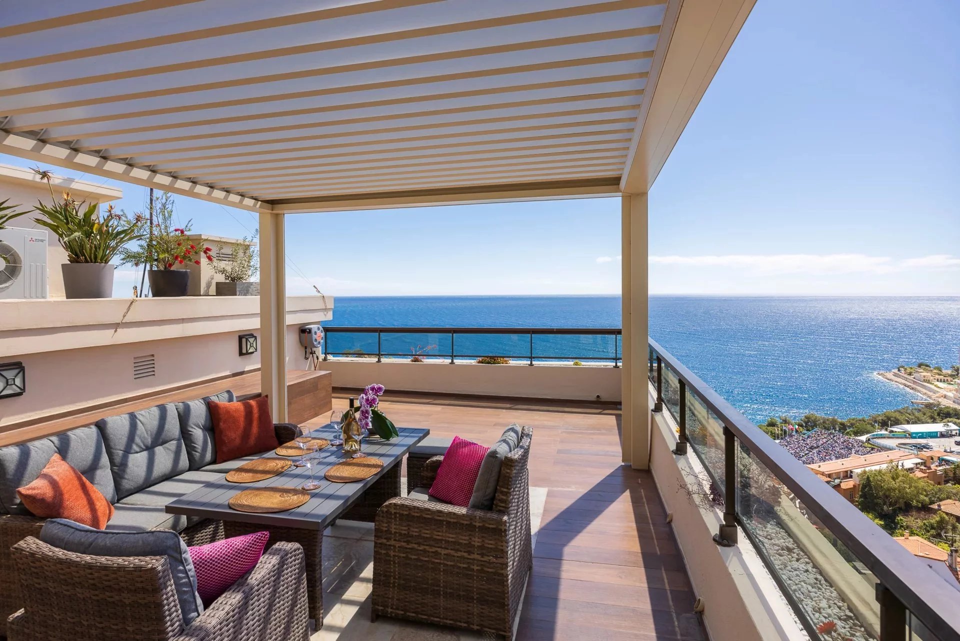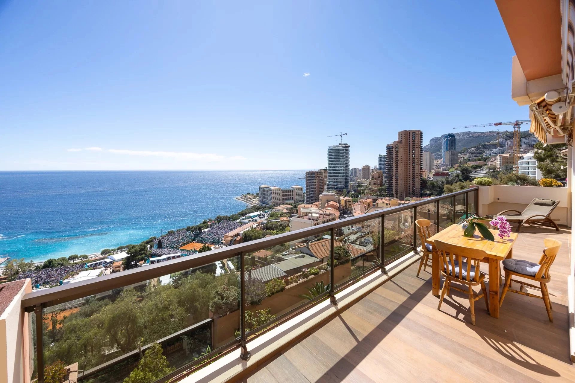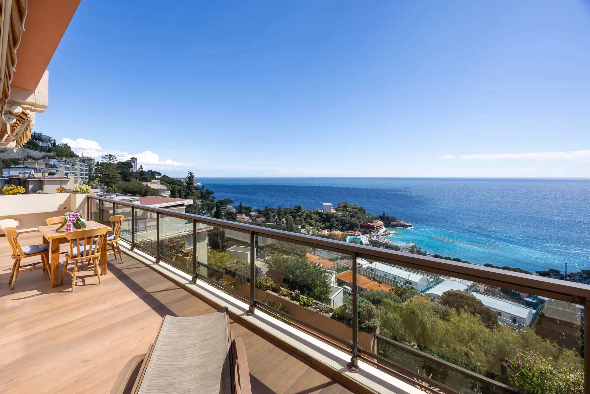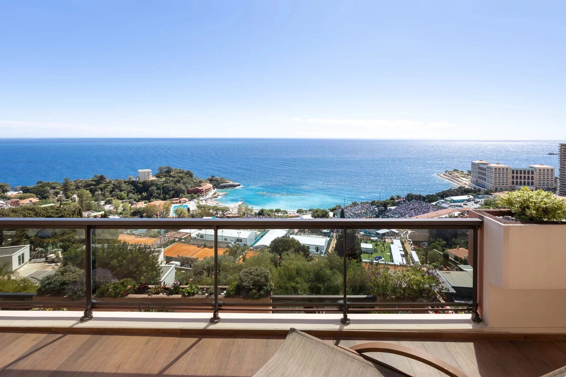 Bathed in natural light, it boasts breathtaking panoramic views over the sea and the Monte-Carlo Country Club.