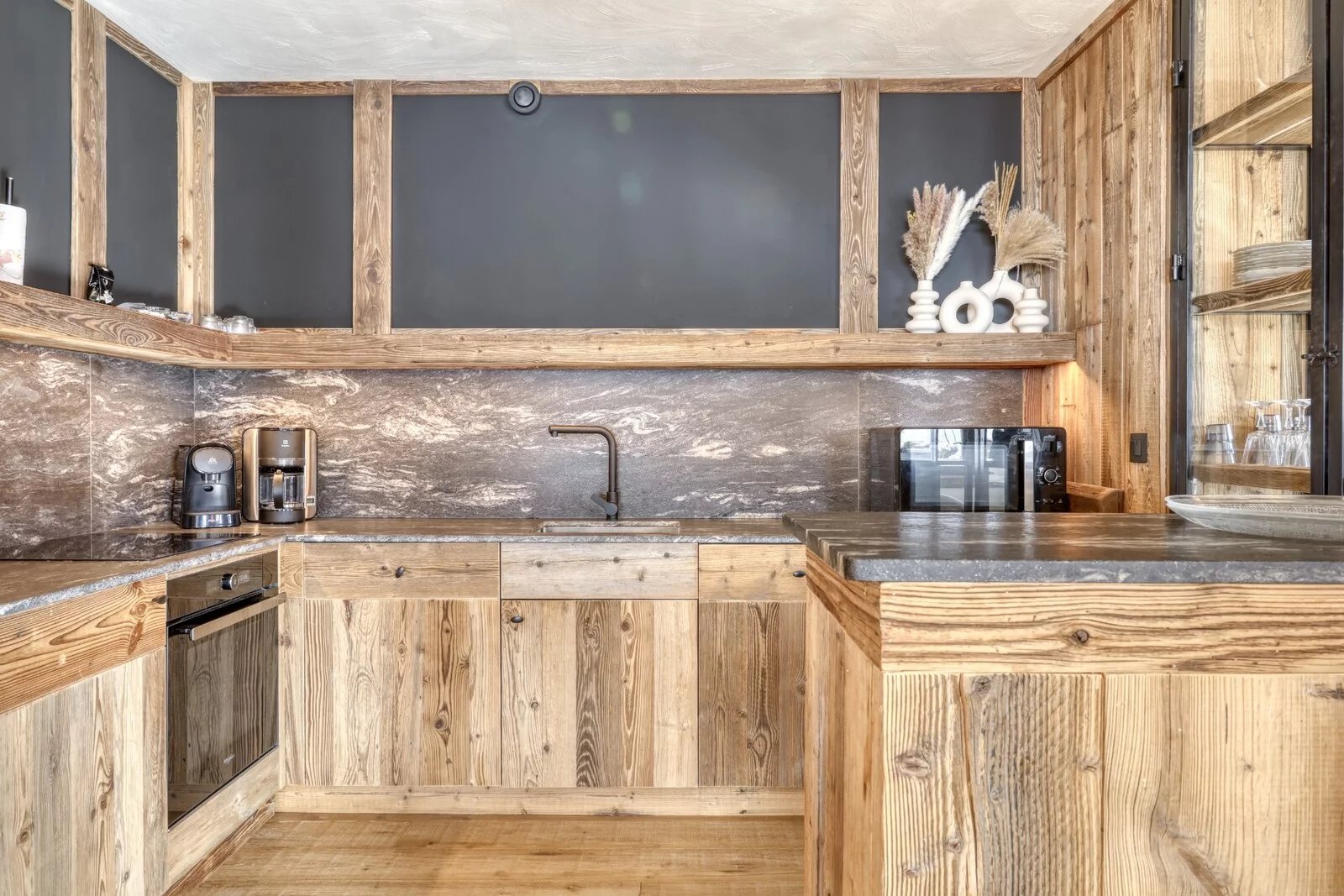 The property is complemented by a ski room, two covered outdoor parking spaces, an outdoor parking space, a cellar/laundry room and a large storage area. The apartment has been fully renovated, fitted out and decorated in a refined, warm atmosphere, in keeping with Alpine style.