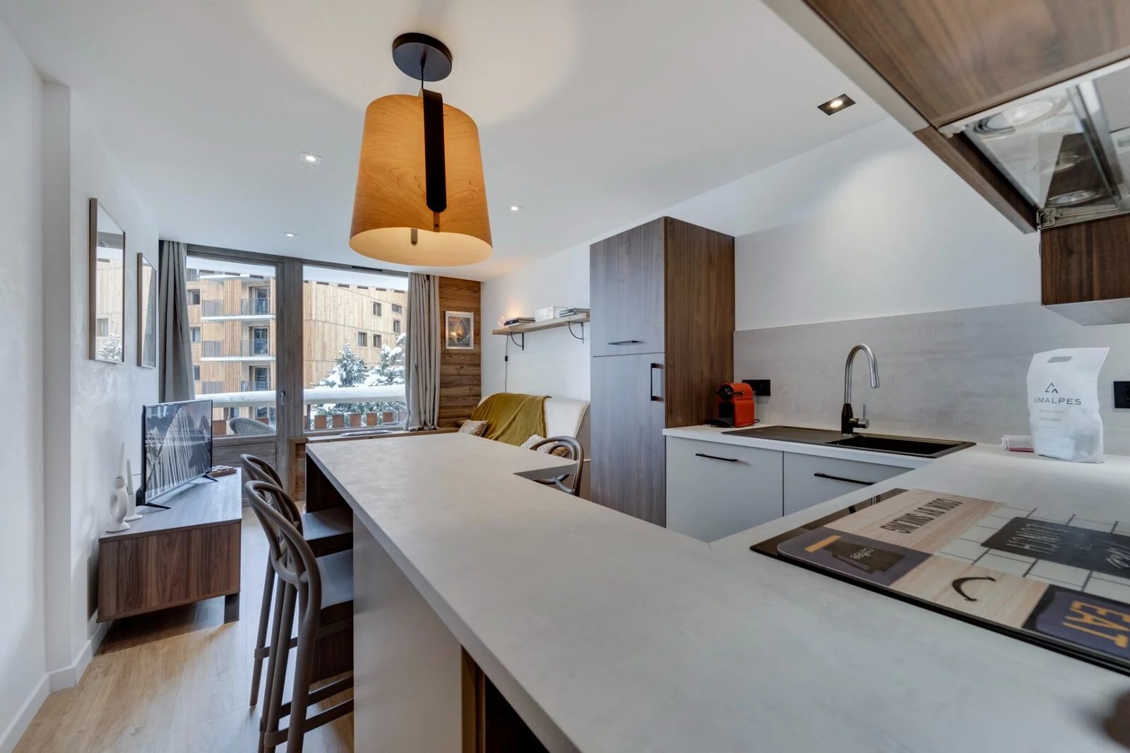 Exceptional location in the heart of Tignes le Lac where all the shops and establishments are located, come and discover this flat which has been completely renovated in a modern and high quality way.