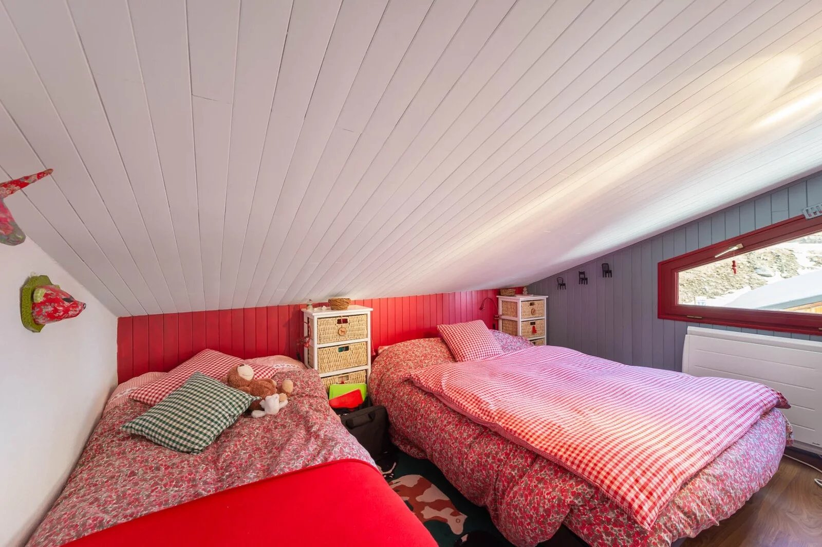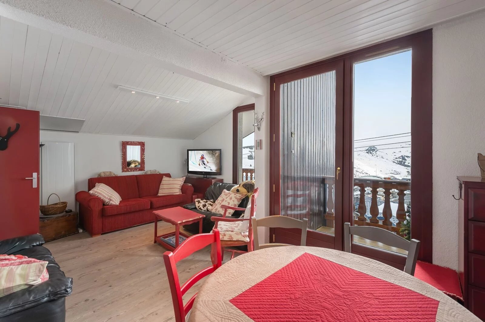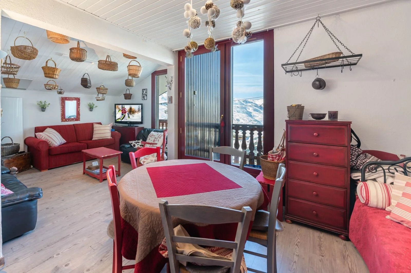 Mountain style apartment located on the top floor of a residence, in the heart of the resort of Val Thorens with a view on the surrounding peaks.