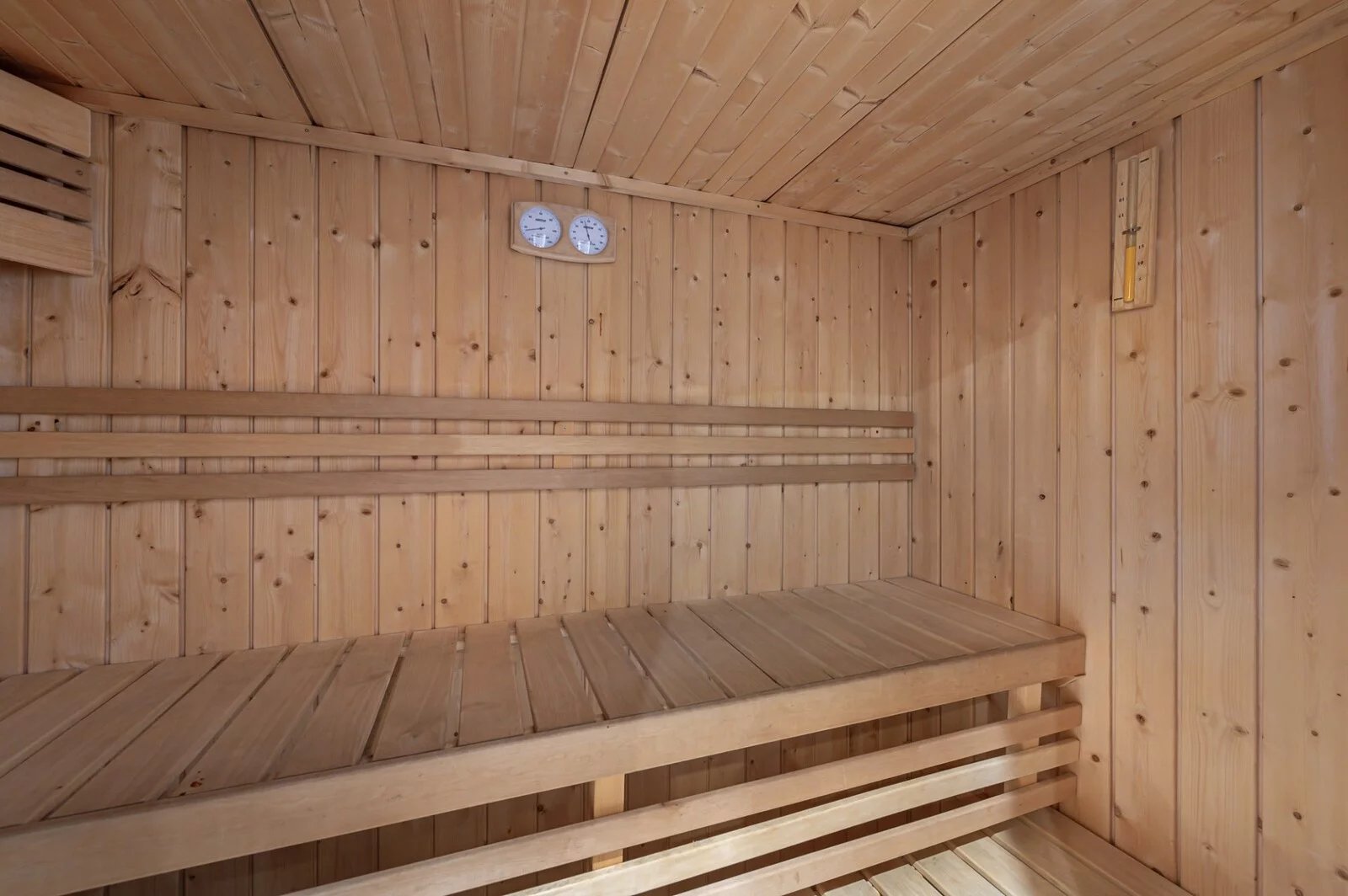 Level 0 features a spacious entrance hall and a private sauna with shower for relaxing after a day on the slopes. There is also a storage area.