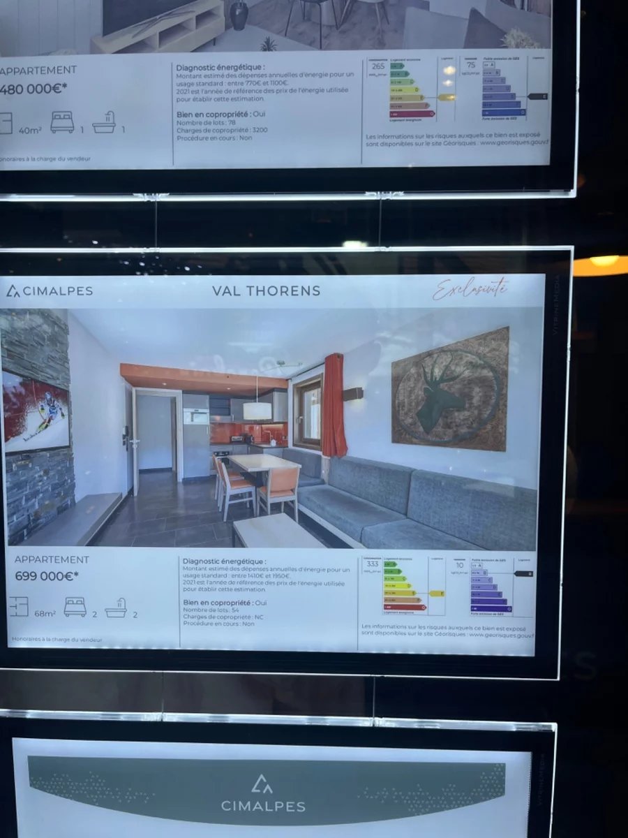 Ideally located at the foot of the slopes, the apartment is also sold with a ski locker and an indoor parking space, a valuable advantage in Val Thorens.