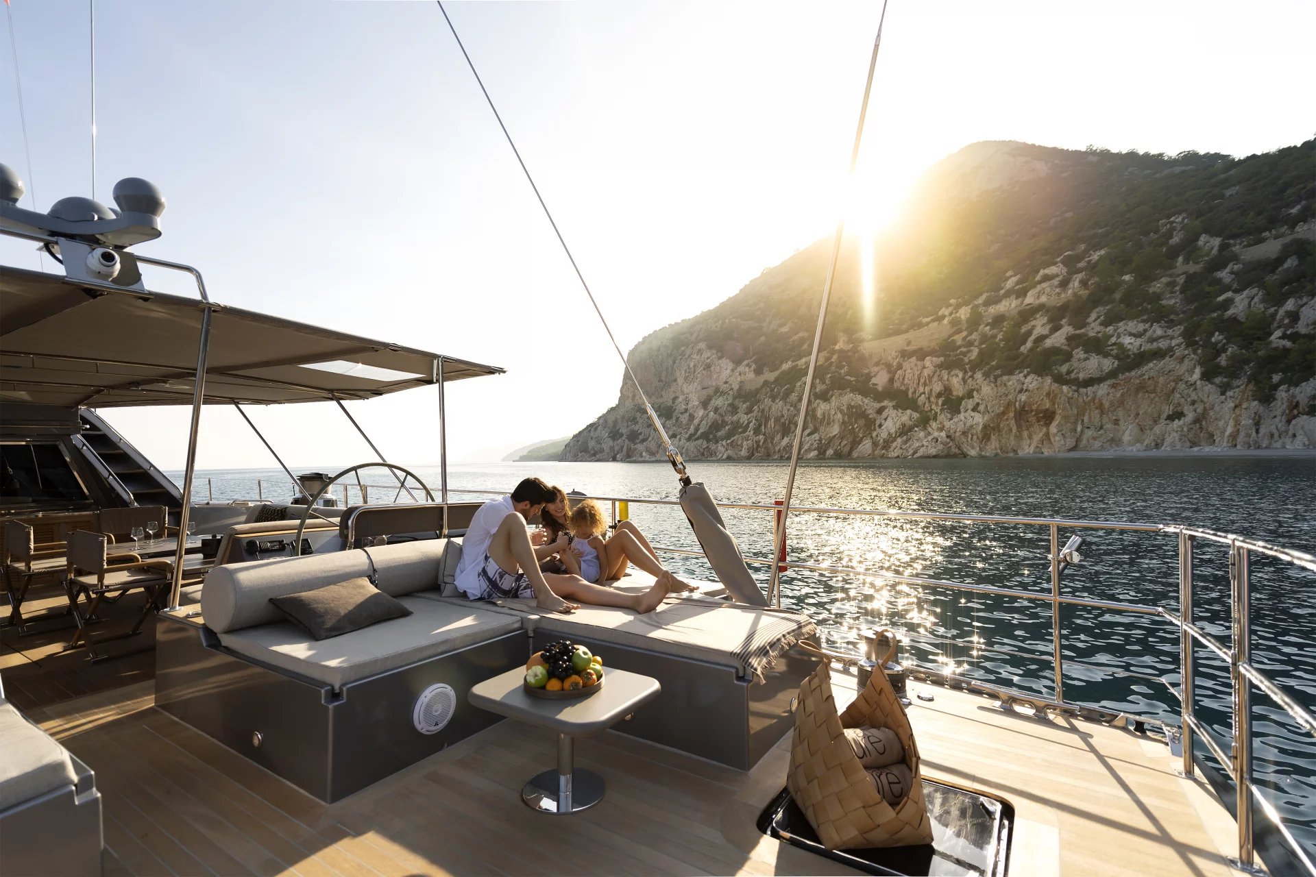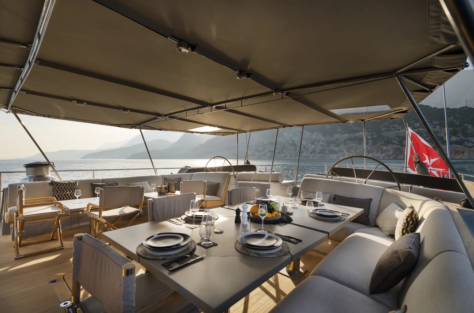 OCEAN PURE 2 has all the perks of a superyacht. Luxurious and comfortable but sporty, secure and fast, she is definitely the best choice for those who want the adventure of a sailing cruise without any compromise .