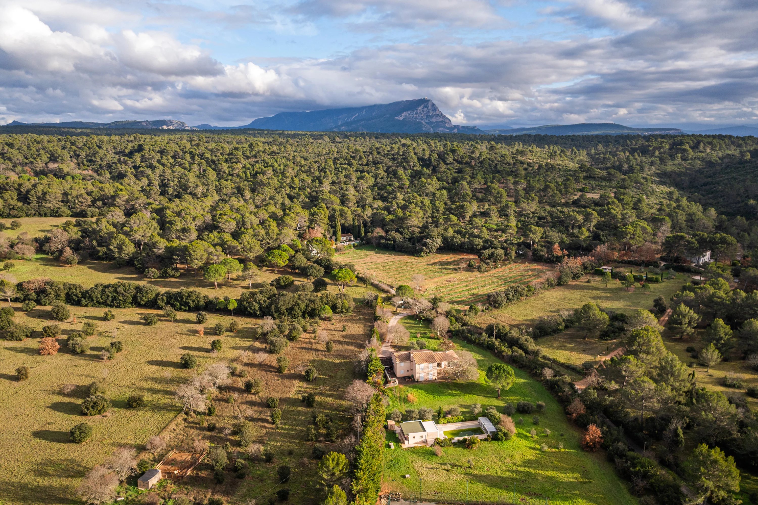 Your John Taylor prestige real estate agency is pleased to present for sale a property located in the highly sought-after Pinchinats district, in an exceptional natural environment. Set in 6,400 m² of enclosed grounds planted with pine and oak trees, it offers absolute calm and quality of life, just a few minutes from the historic center of Aix-en-Provence.