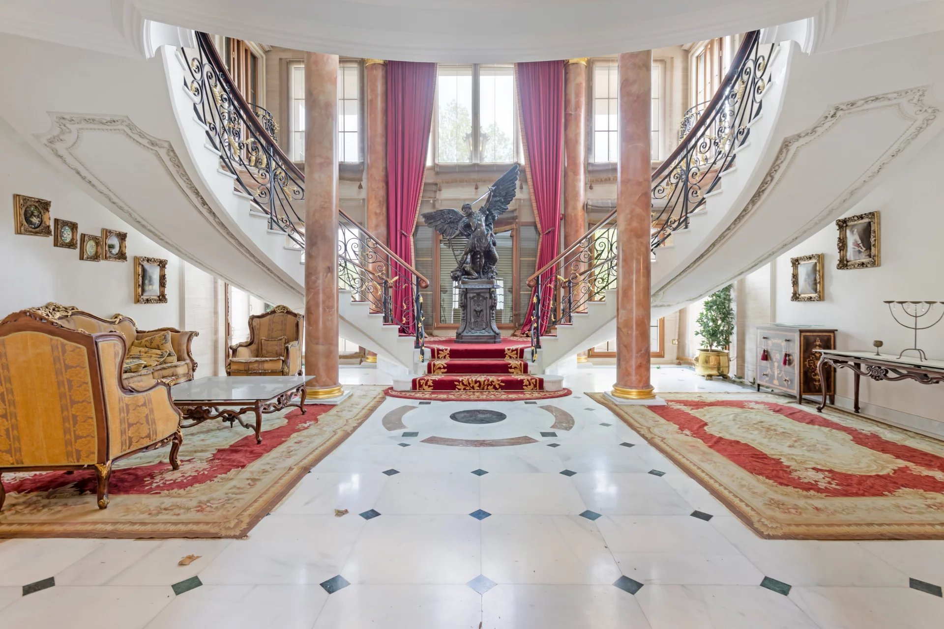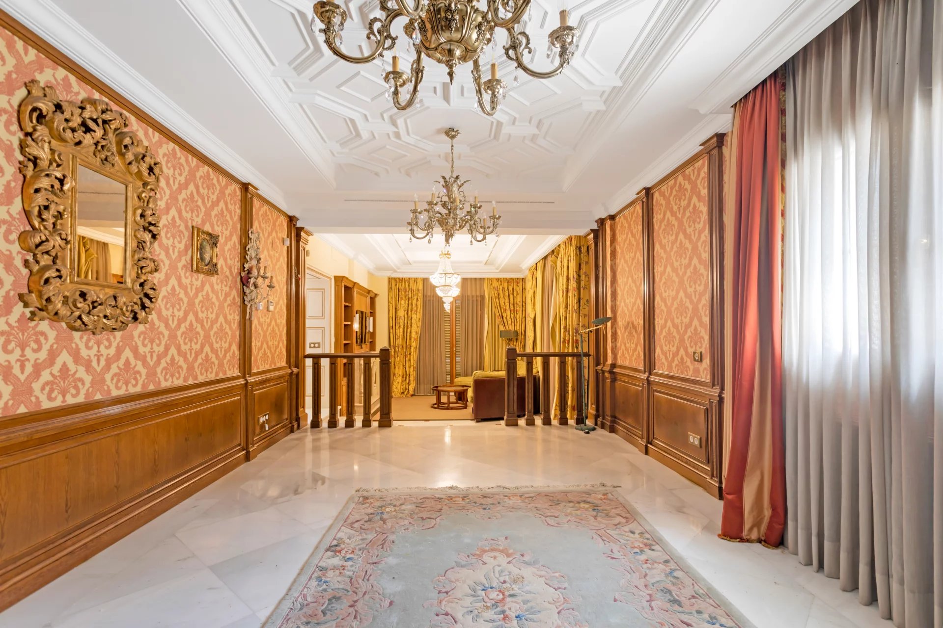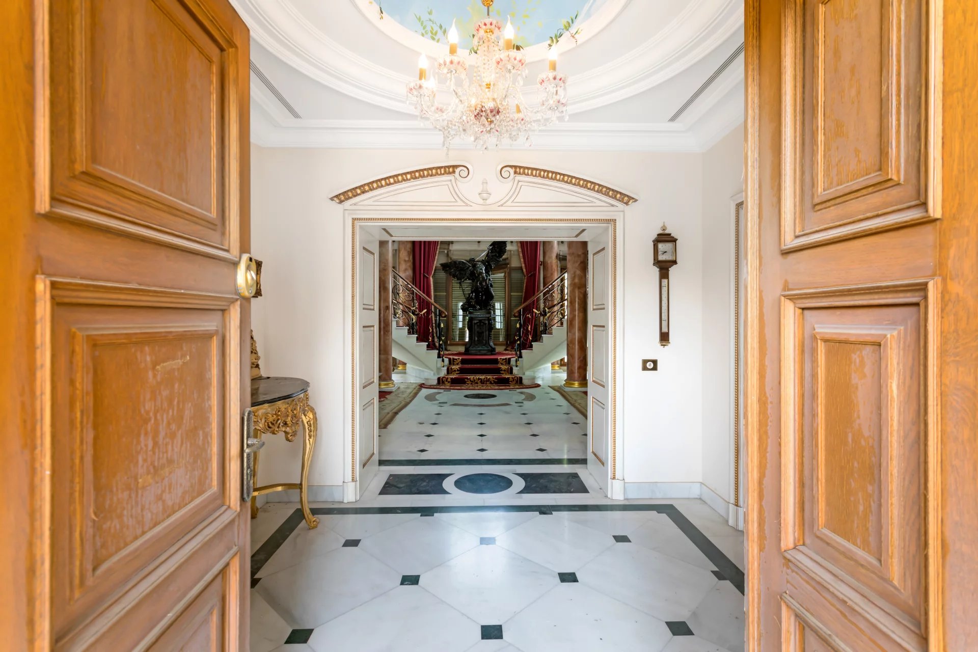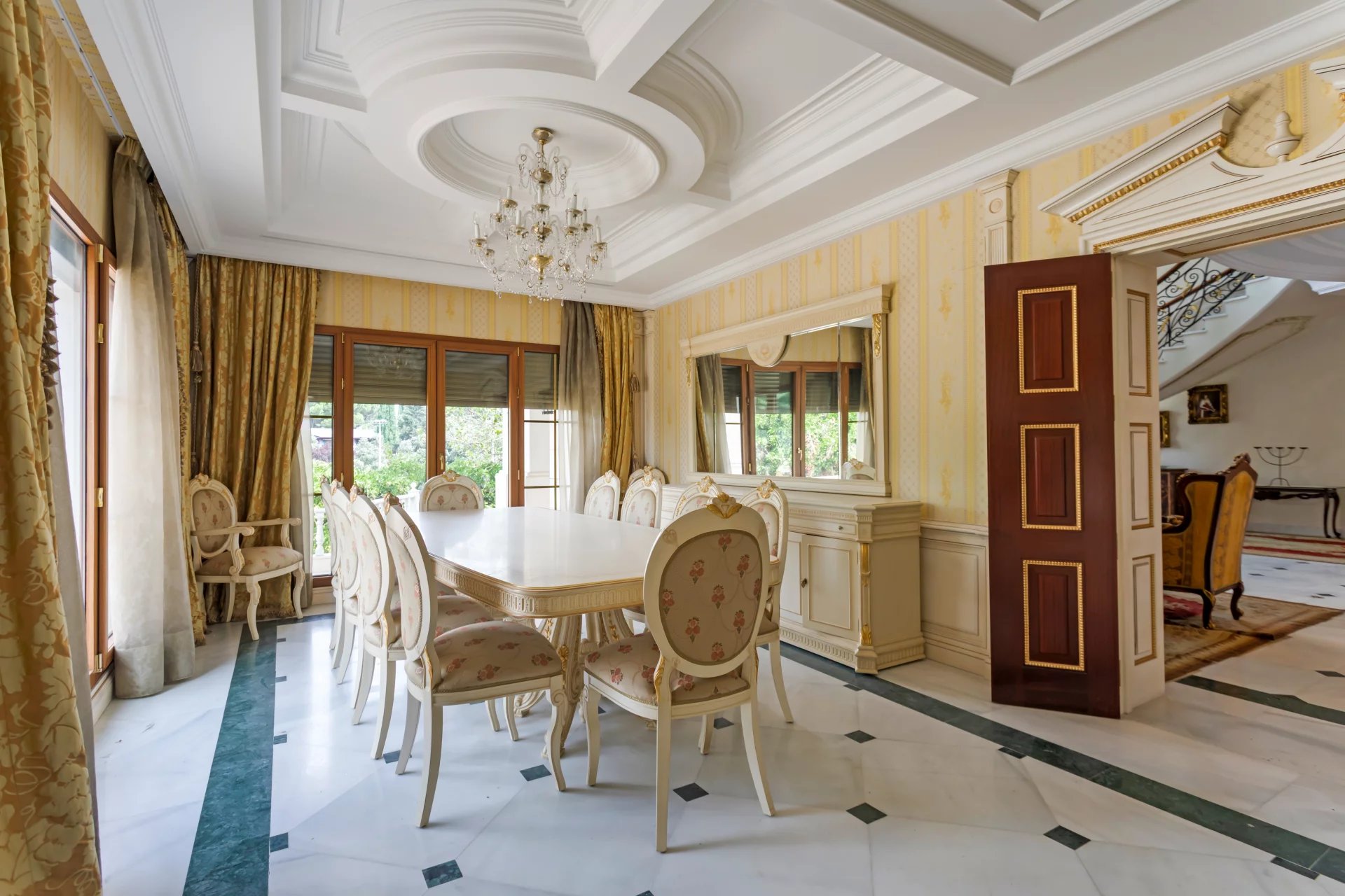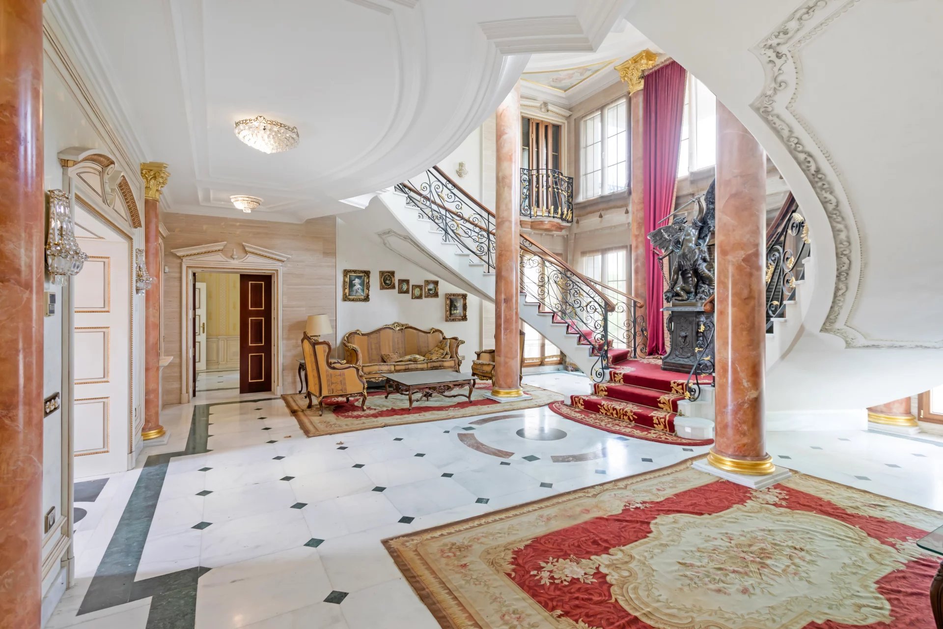 Its qualities, marble, hardwoods, Venetian stuccoes, domes with stained glass windows are carefully worked. The plot is located on the golf course with stunning views.
