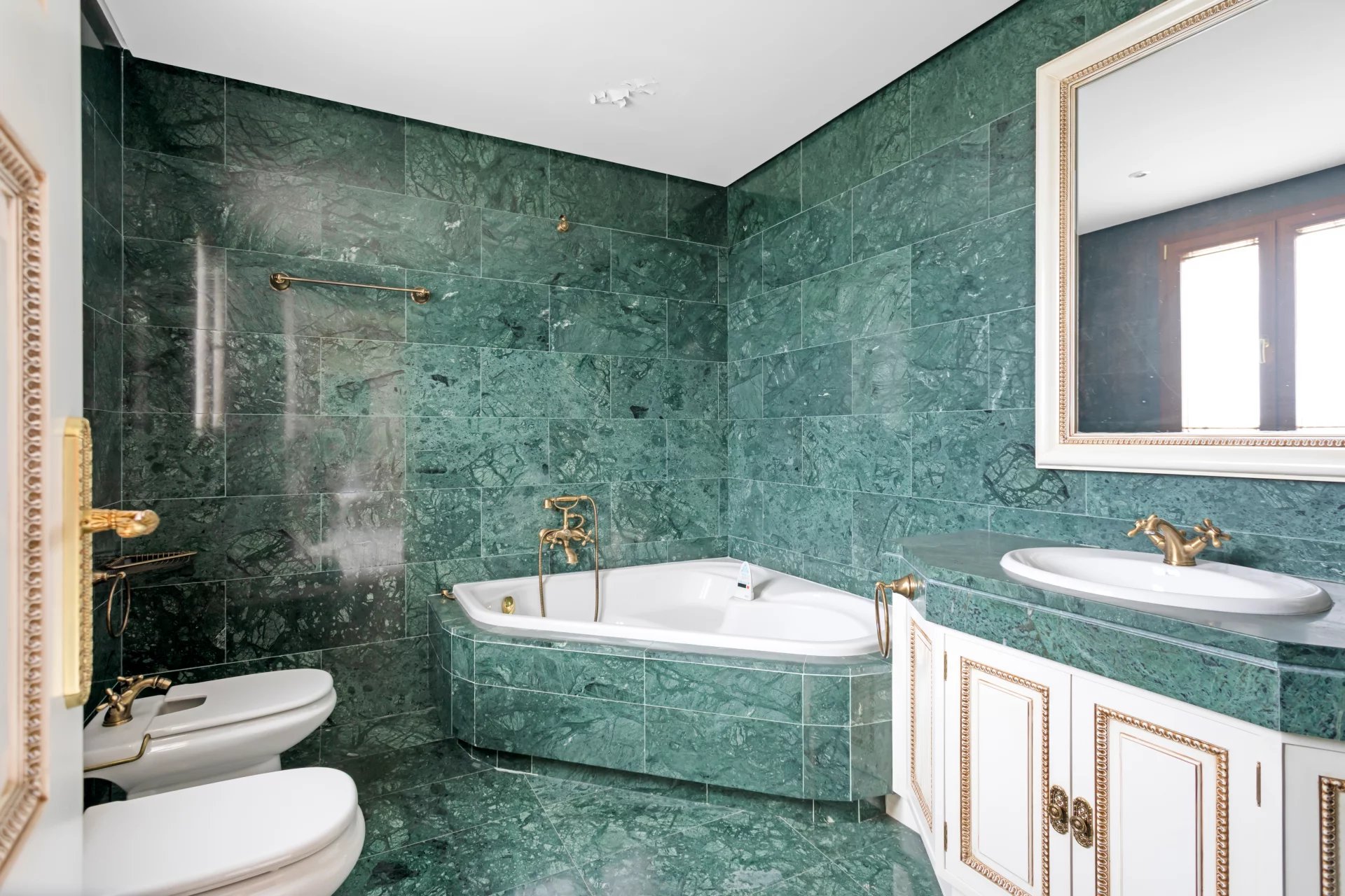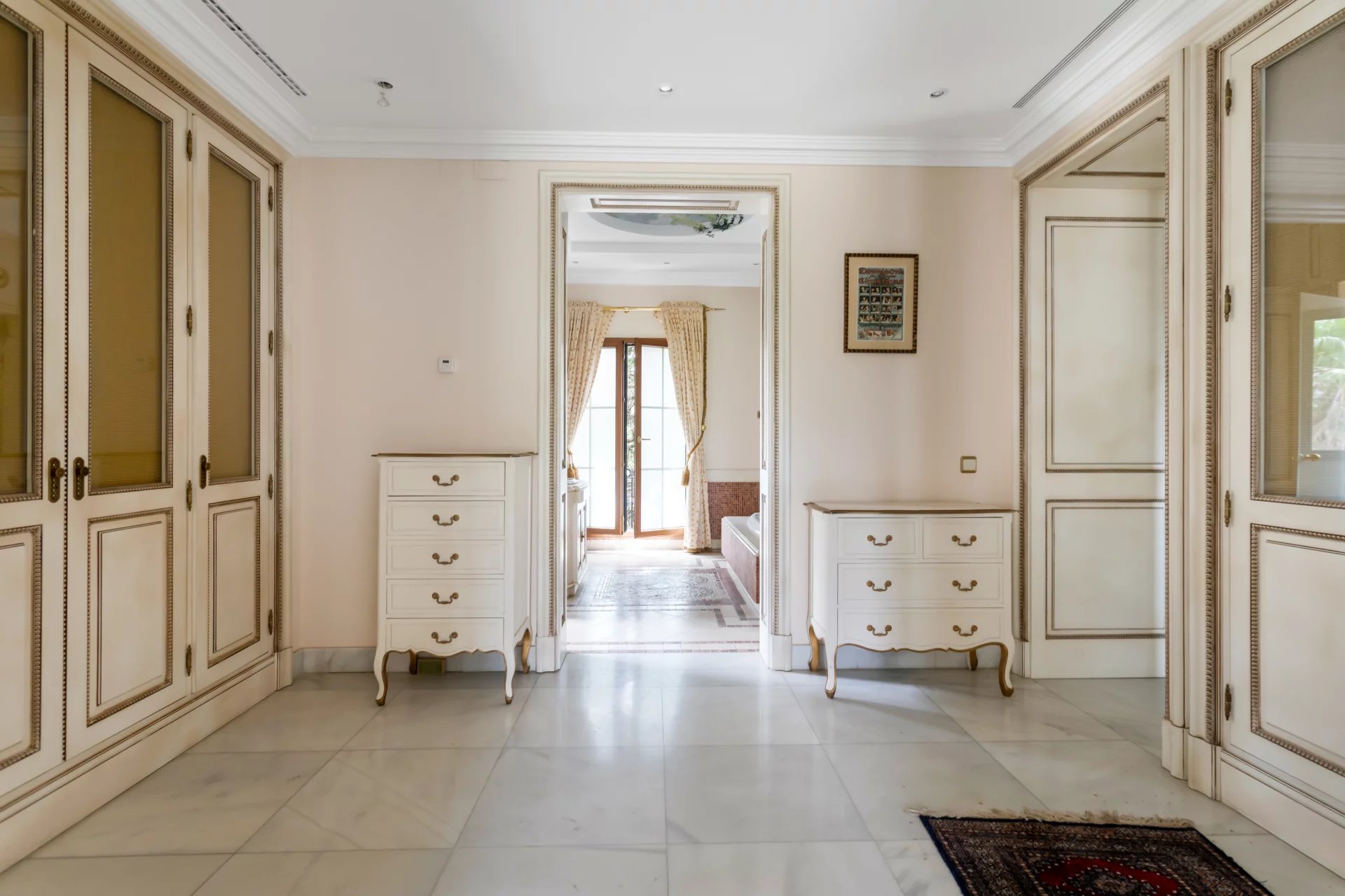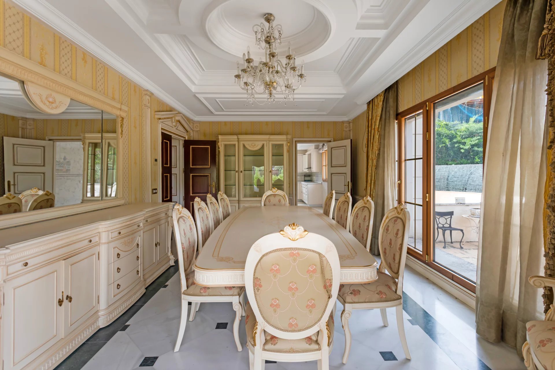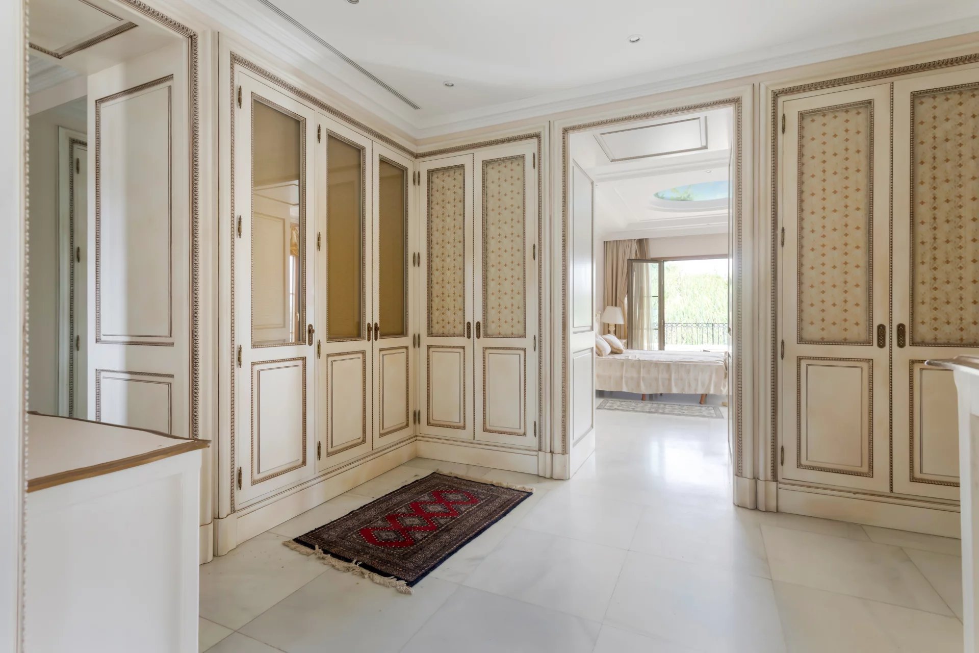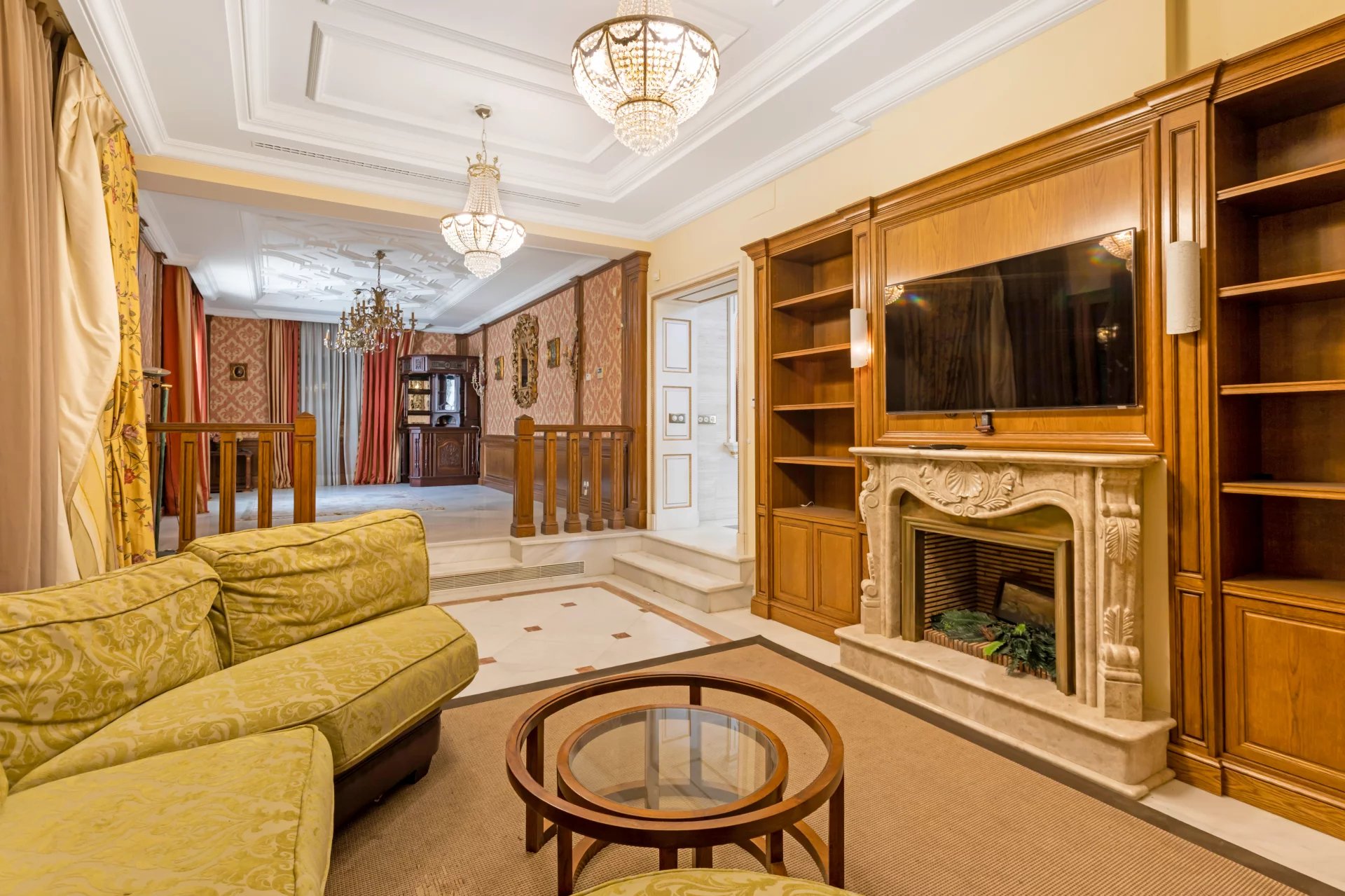 Its qualities, marble, hardwoods, Venetian stuccoes, domes with stained glass windows are carefully worked. The plot is located on the golf course with stunning views.