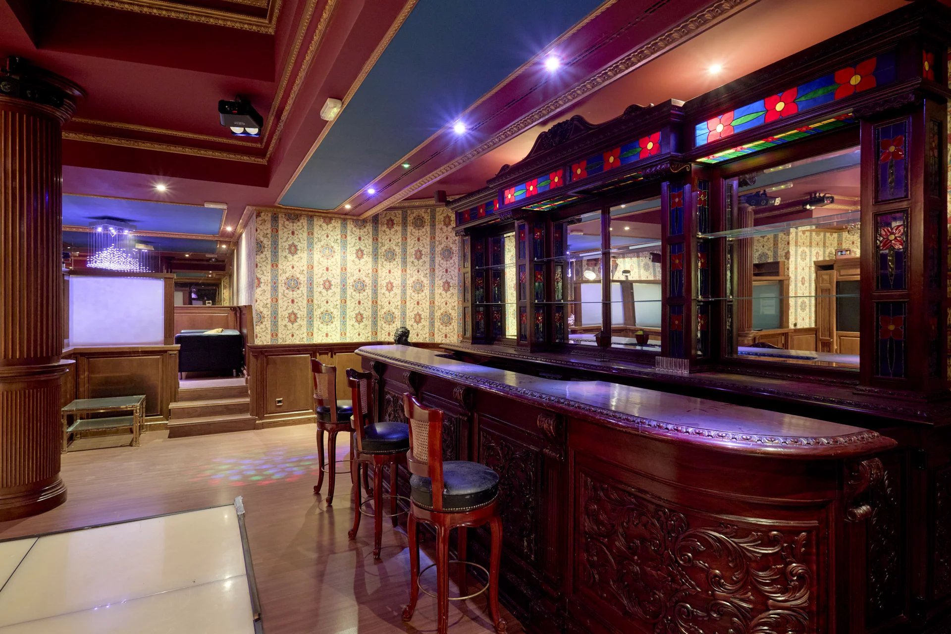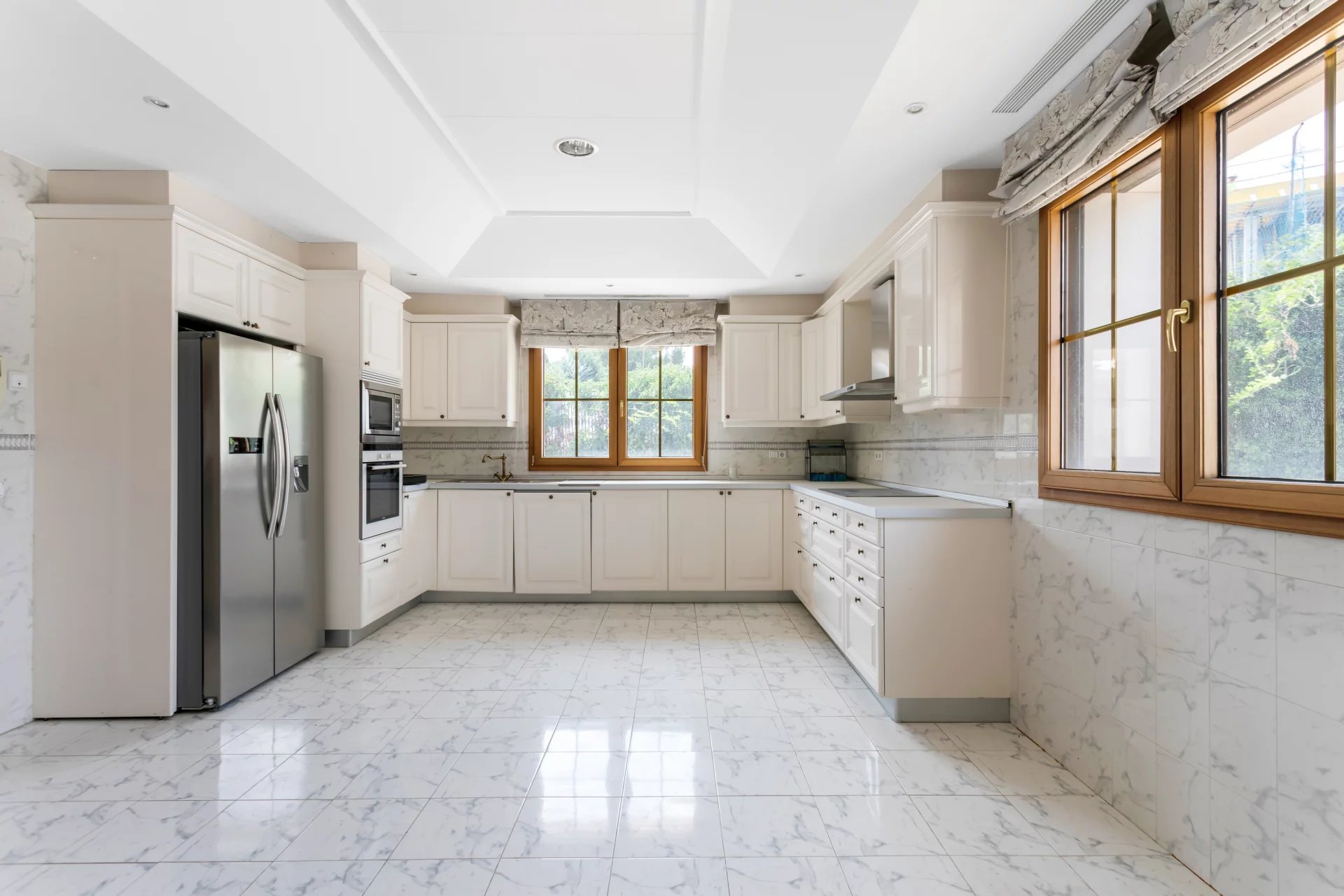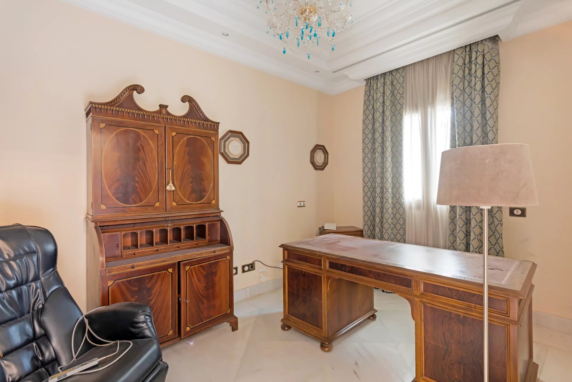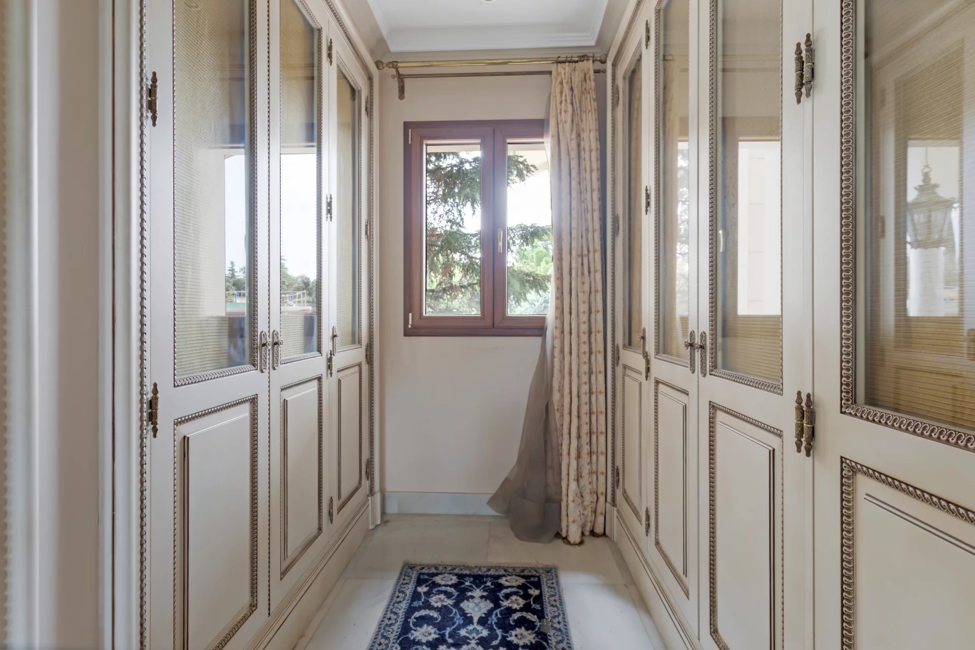 Its qualities, marble, hardwoods, Venetian stuccoes, domes with stained glass windows are carefully worked. The plot is located on the golf course with stunning views.