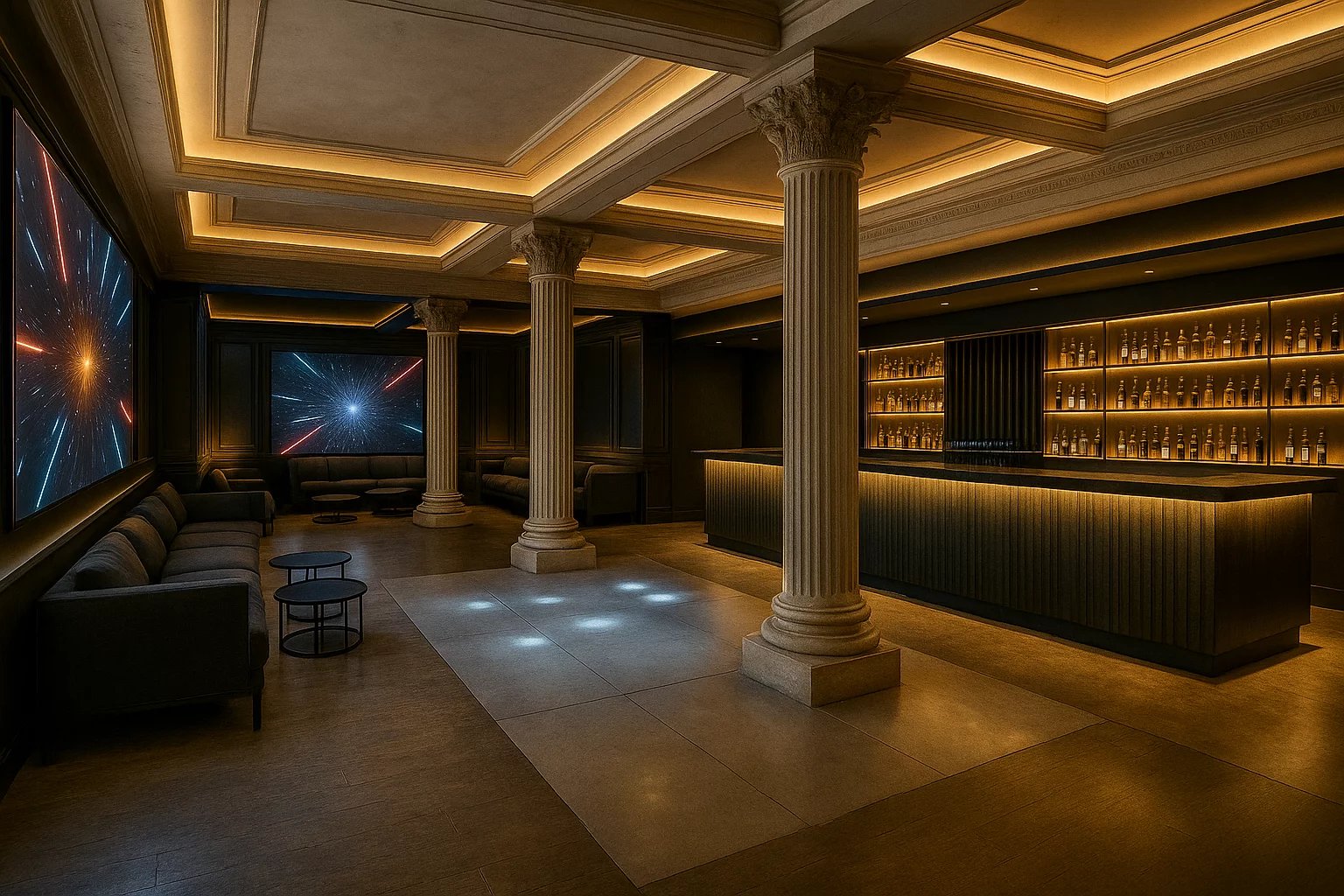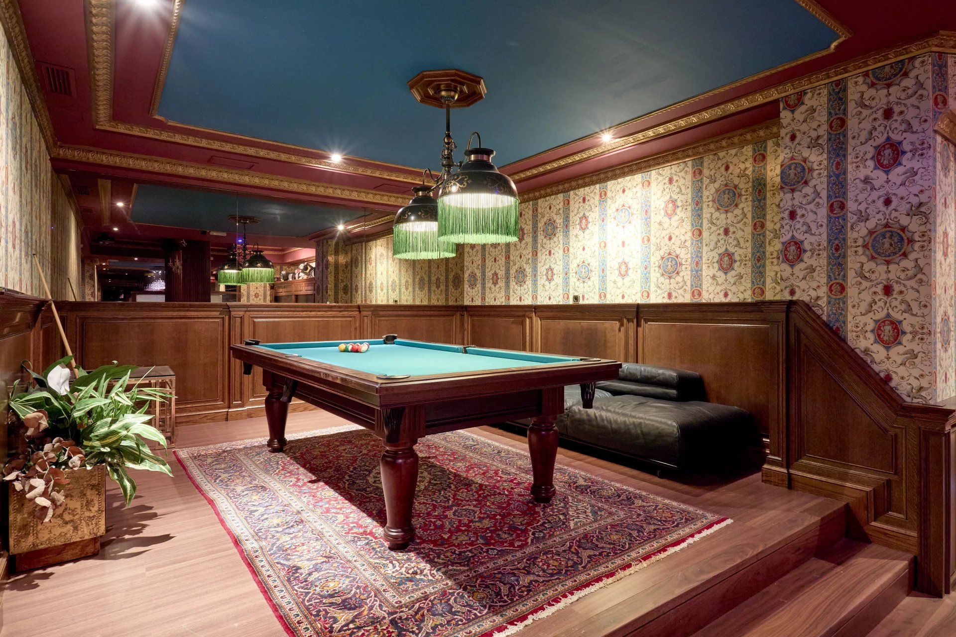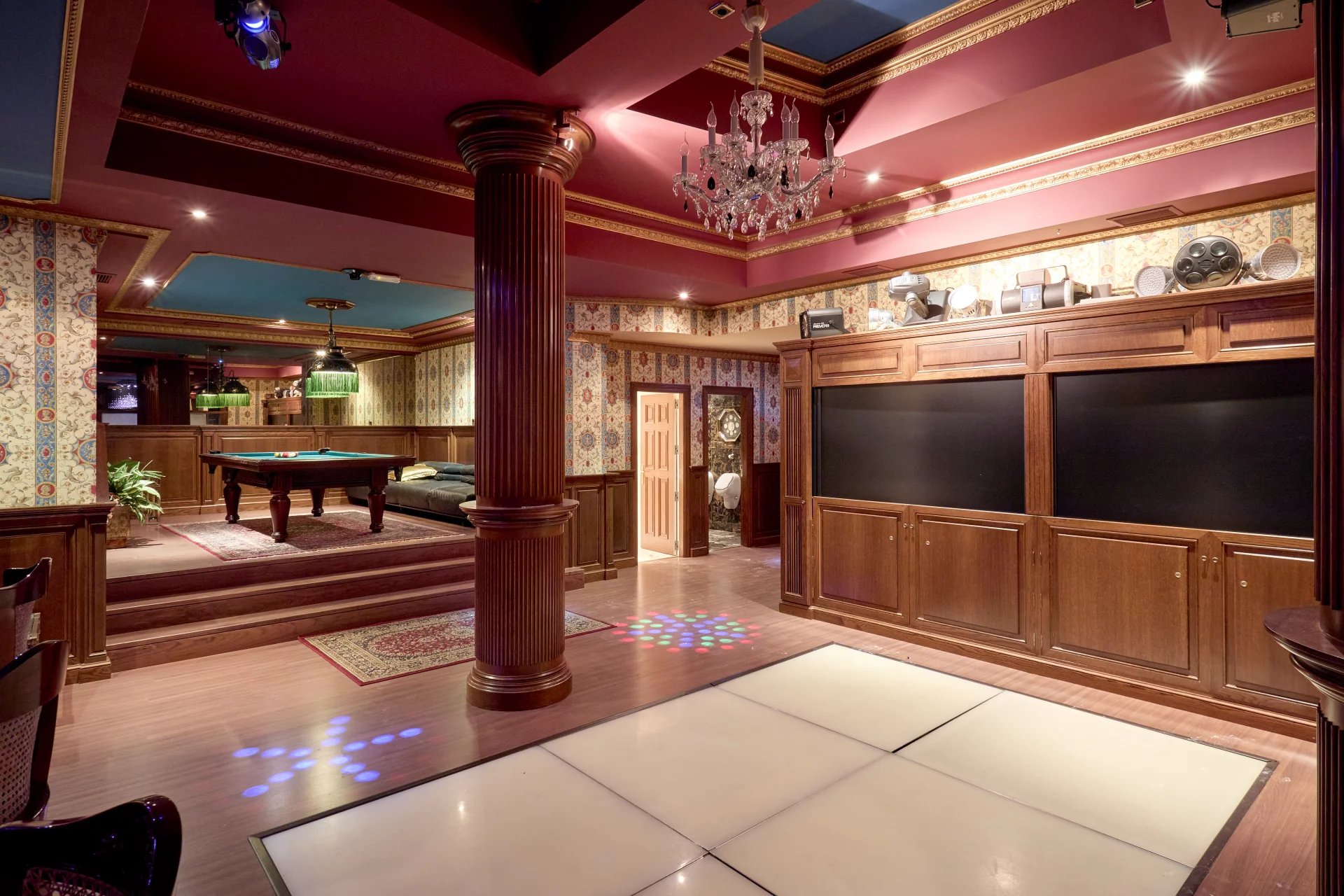 In the basement, pool changing rooms with bathroom, soundproofed party room with bar and billiard area, cinema and gym area, sauna and jacuzzi, laundry and ironing room and maid's bedroom with bathroom.