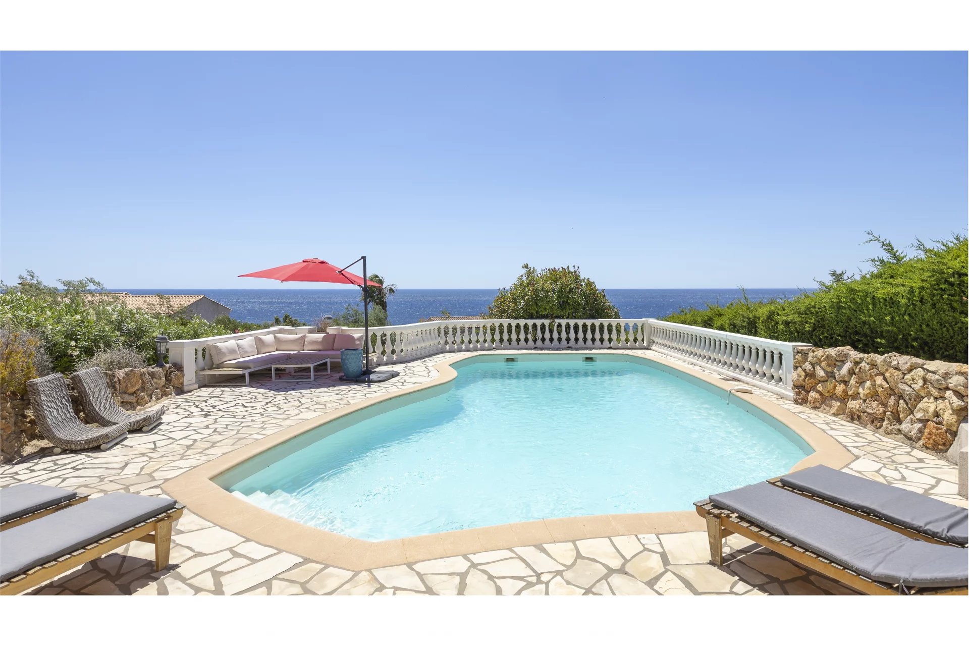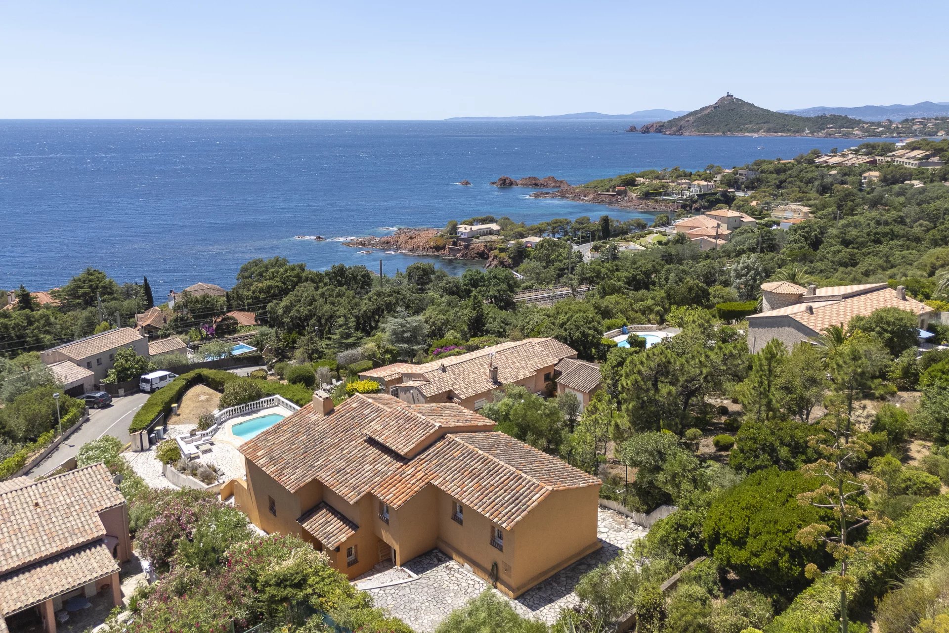 Under sale agreement. On the hills of Antheor, in a private estate, superb villa of around 145 sqm with swimming pool, offering unobstructed views at 180° over the sea.