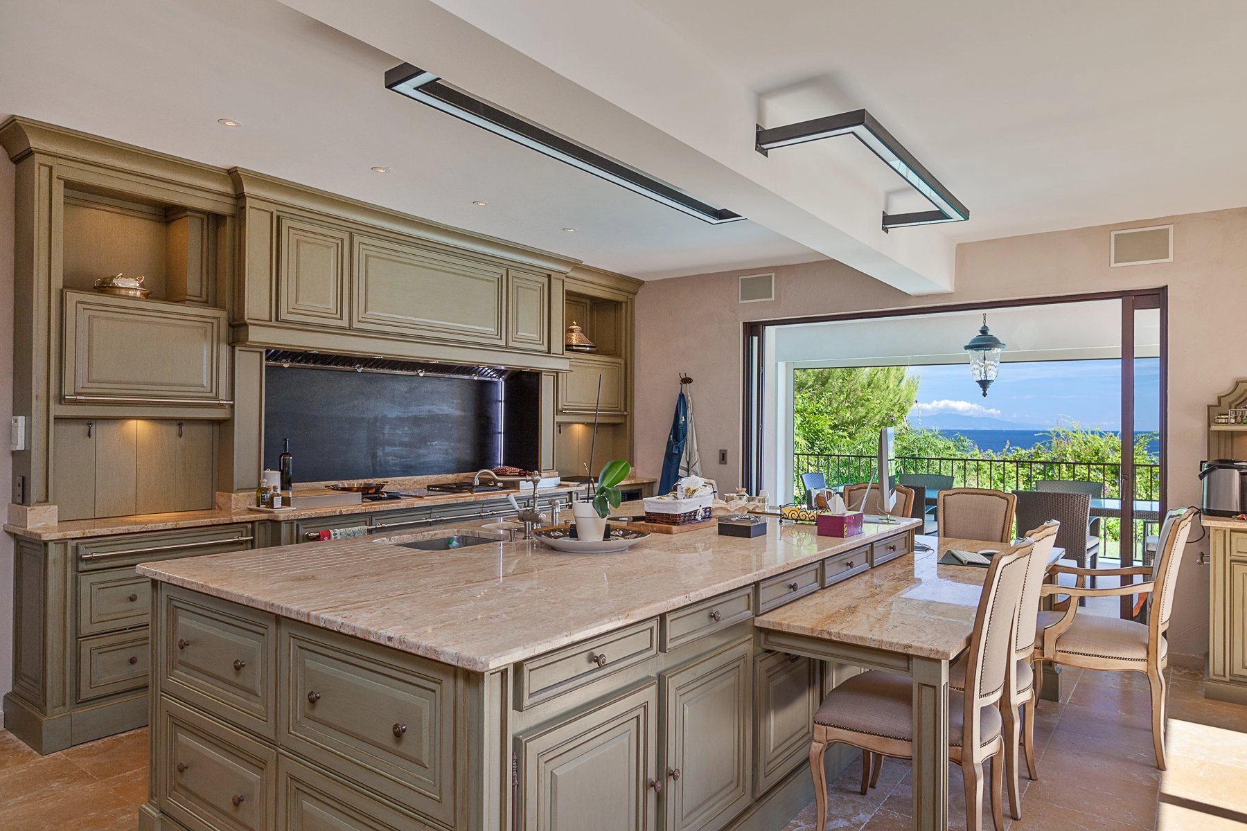 It enjoys panoramic sea views over the sea and mountains.