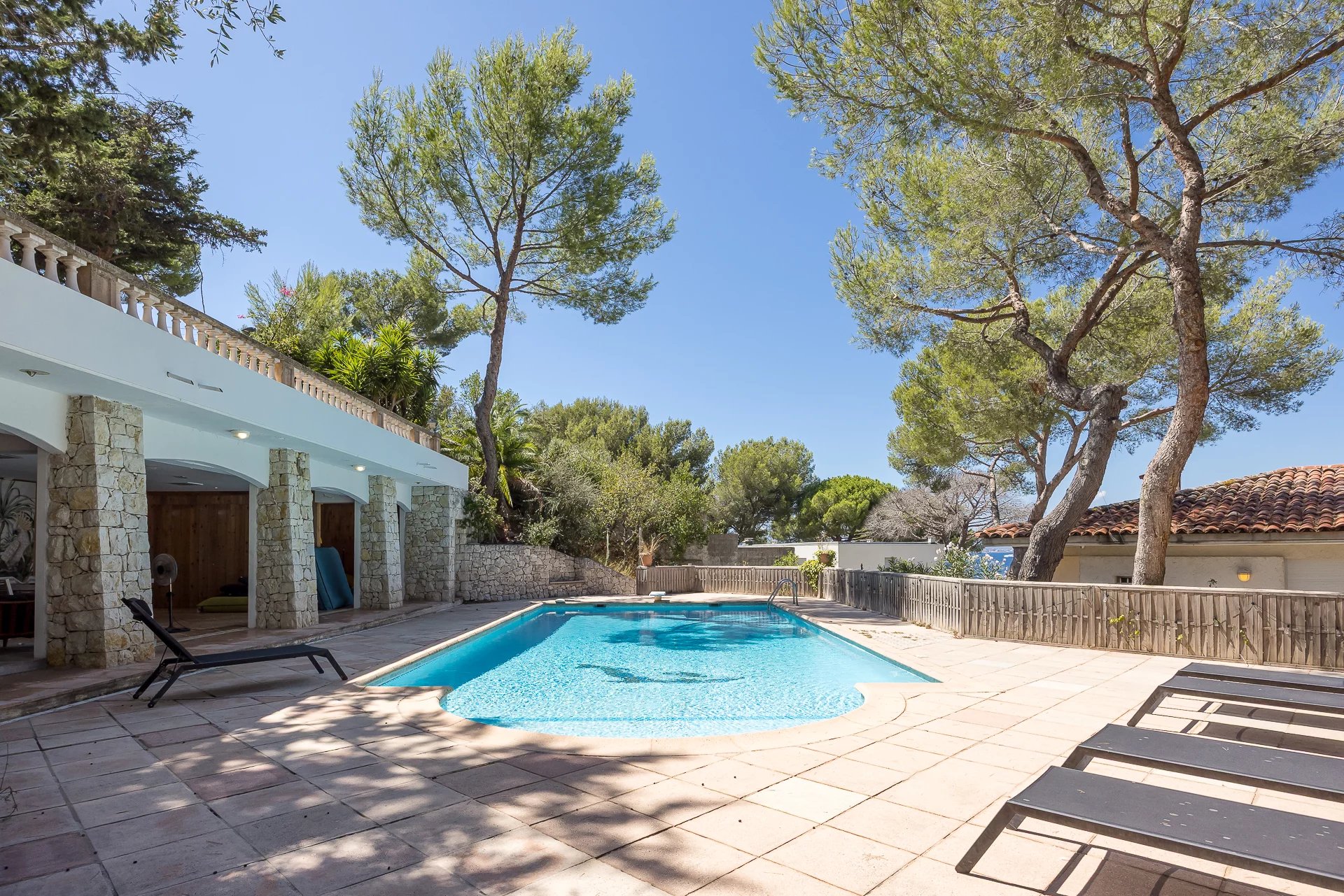 Located on the western side of Cap d'Antibes, just a stone's throw from the prestigious Hotel Eden Roc, two semi-detached villas with private waterfront land.