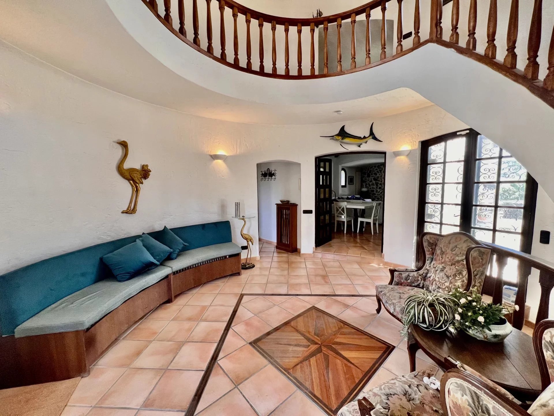 The first floor includes 2 other bedrooms with en-suite bathrooms. Each bedroom opens onto a balcony with a beautiful sea view.