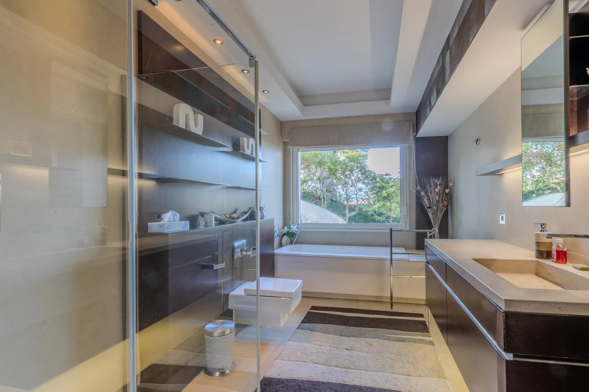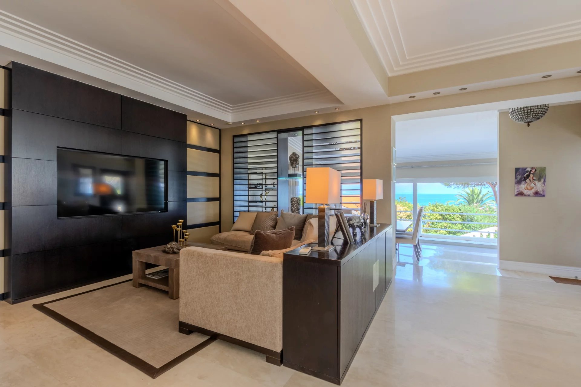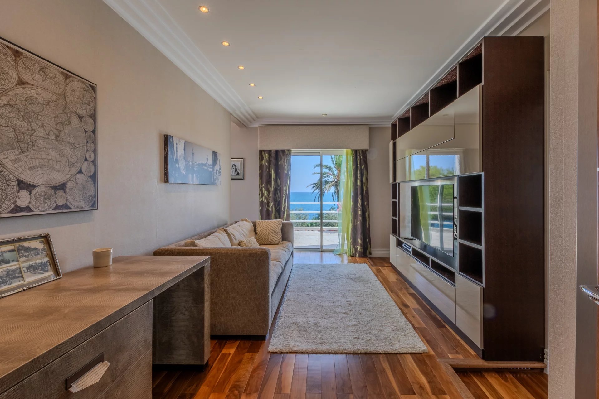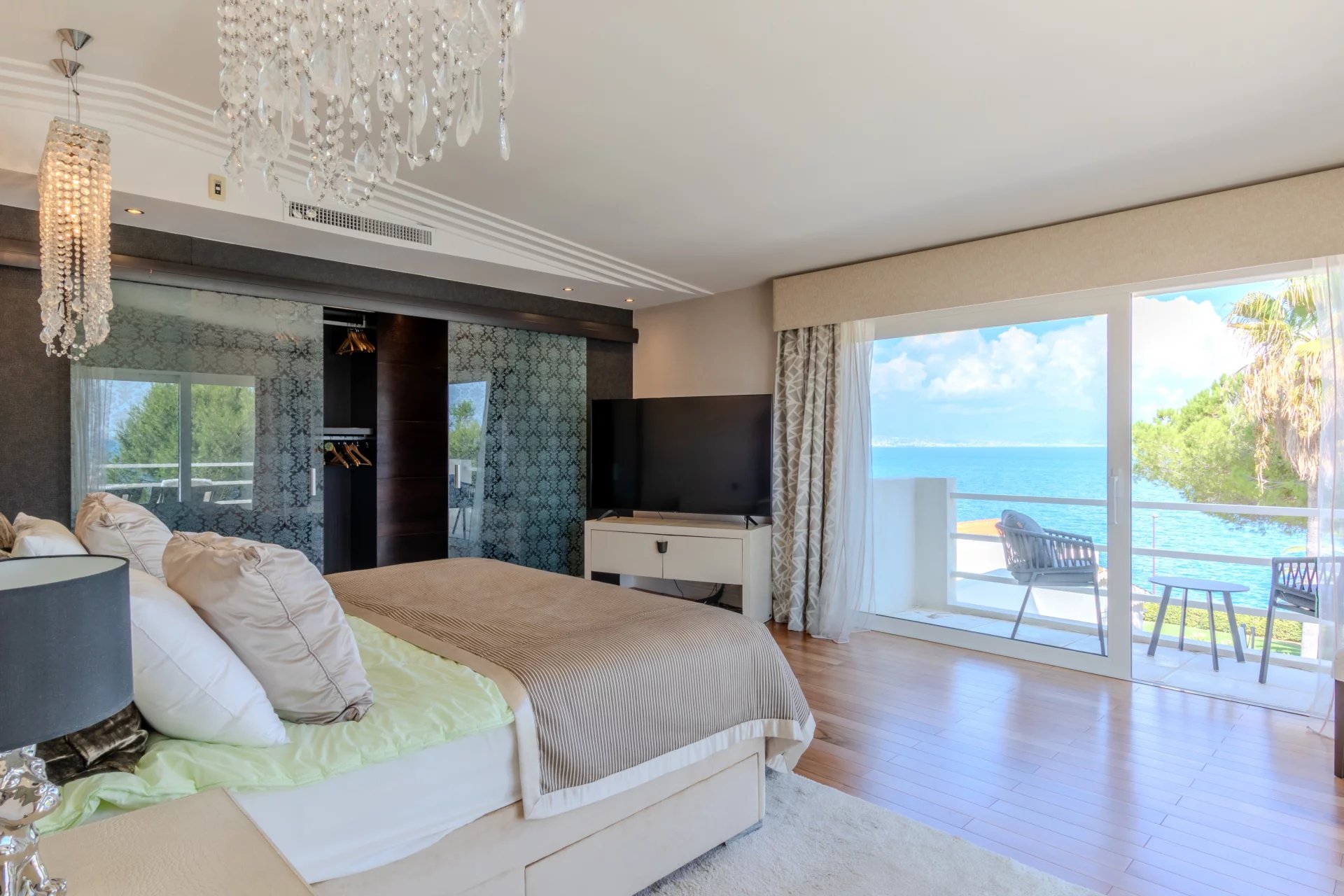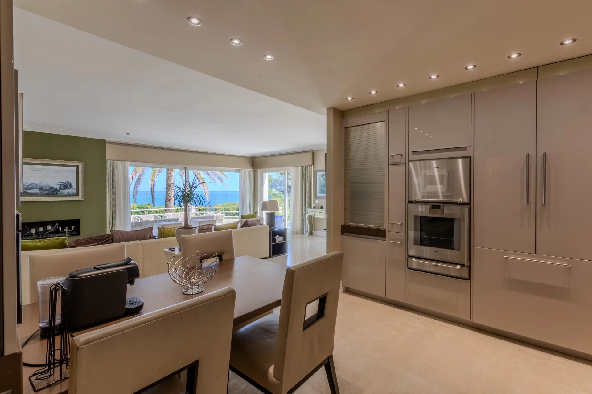 Dominant position for this superb villa of 371 sqm with large flat garden of 2164 sqm and swimming pool. Panoramic sea view. Garden level: spacious living room with sea view, TV lounge, fitted kitchen and dining room. A large bedroom with en-suite bathroom. Upstairs, a master suite with living room, large bathroom and terrace overlooking the sea. A second bedroom with bathroom and sea view. Two further bedrooms with shower rooms. Parking spaces available.
