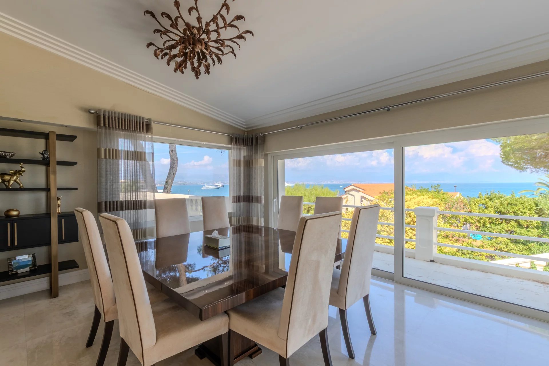 Dominant position for this superb villa of 371 sqm with large flat garden of 2164 sqm and swimming pool. Panoramic sea view.