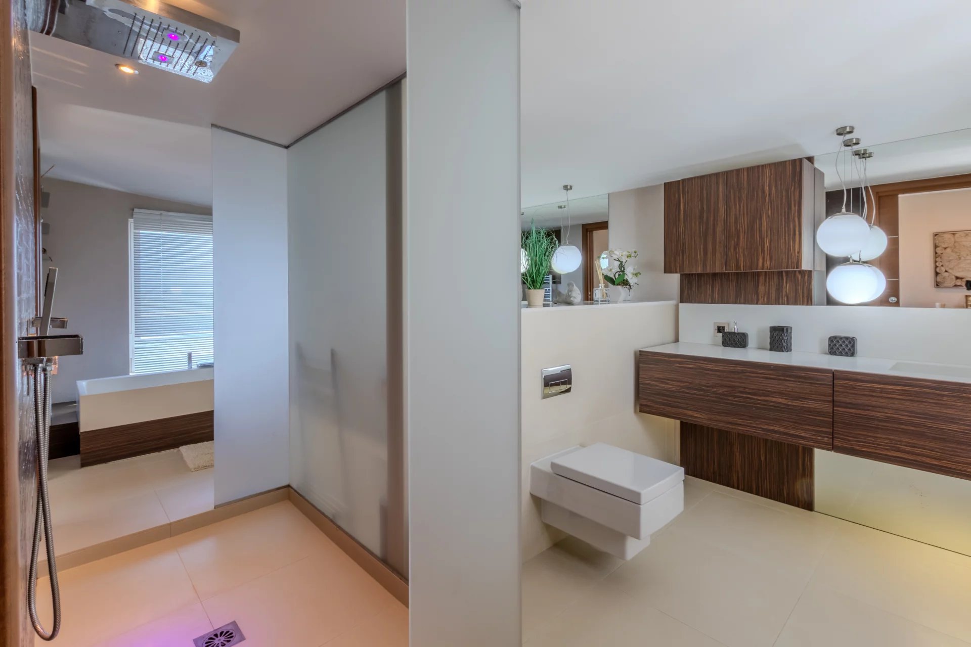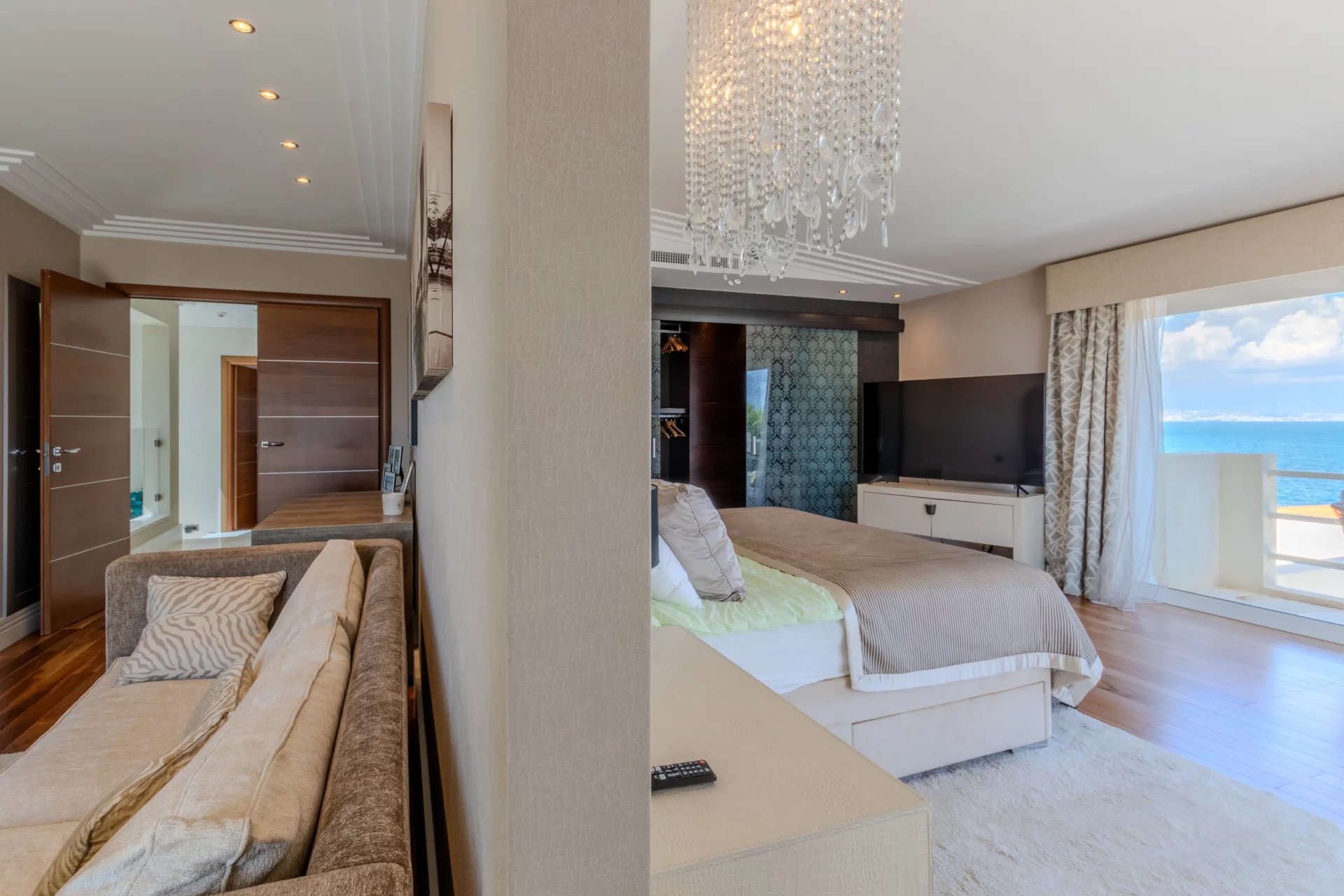 Learn moreGarden level: spacious living room with sea view, TV lounge, fitted kitchen and dining room. A large bedroom with en-suite bathroom.