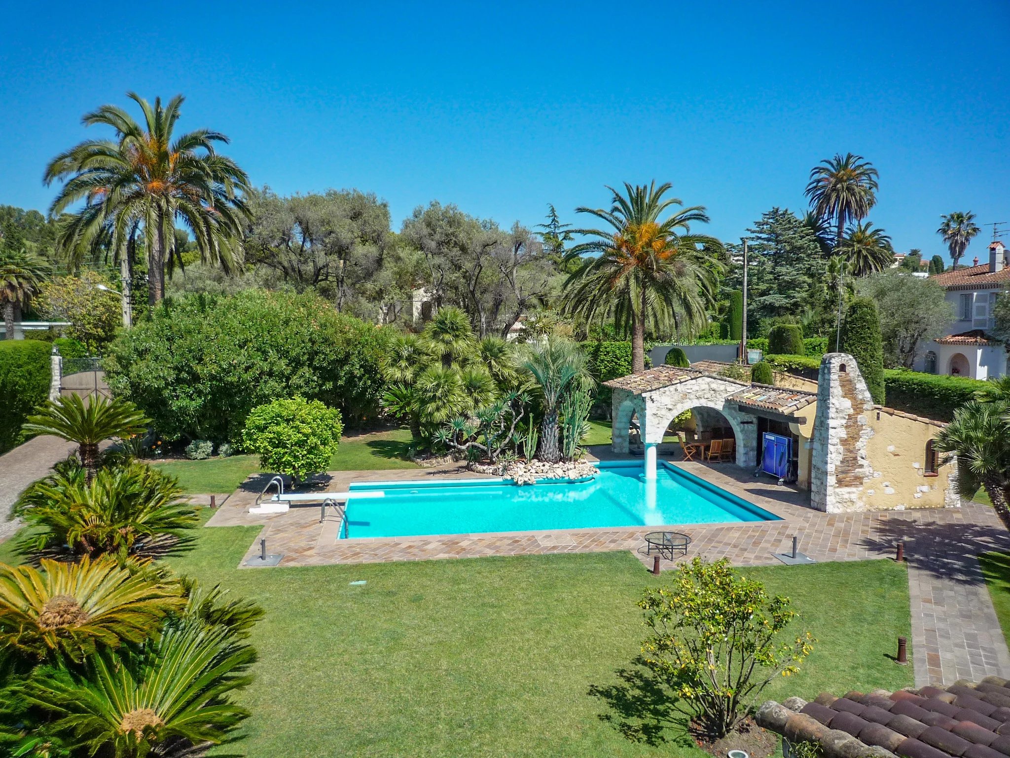 Magnificent property located on the west side of Cap d'Antibes. It offers a panoramic view of the sea, a vast flat garden with century-old trees.