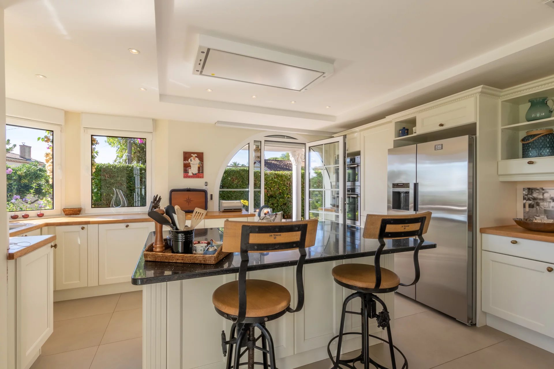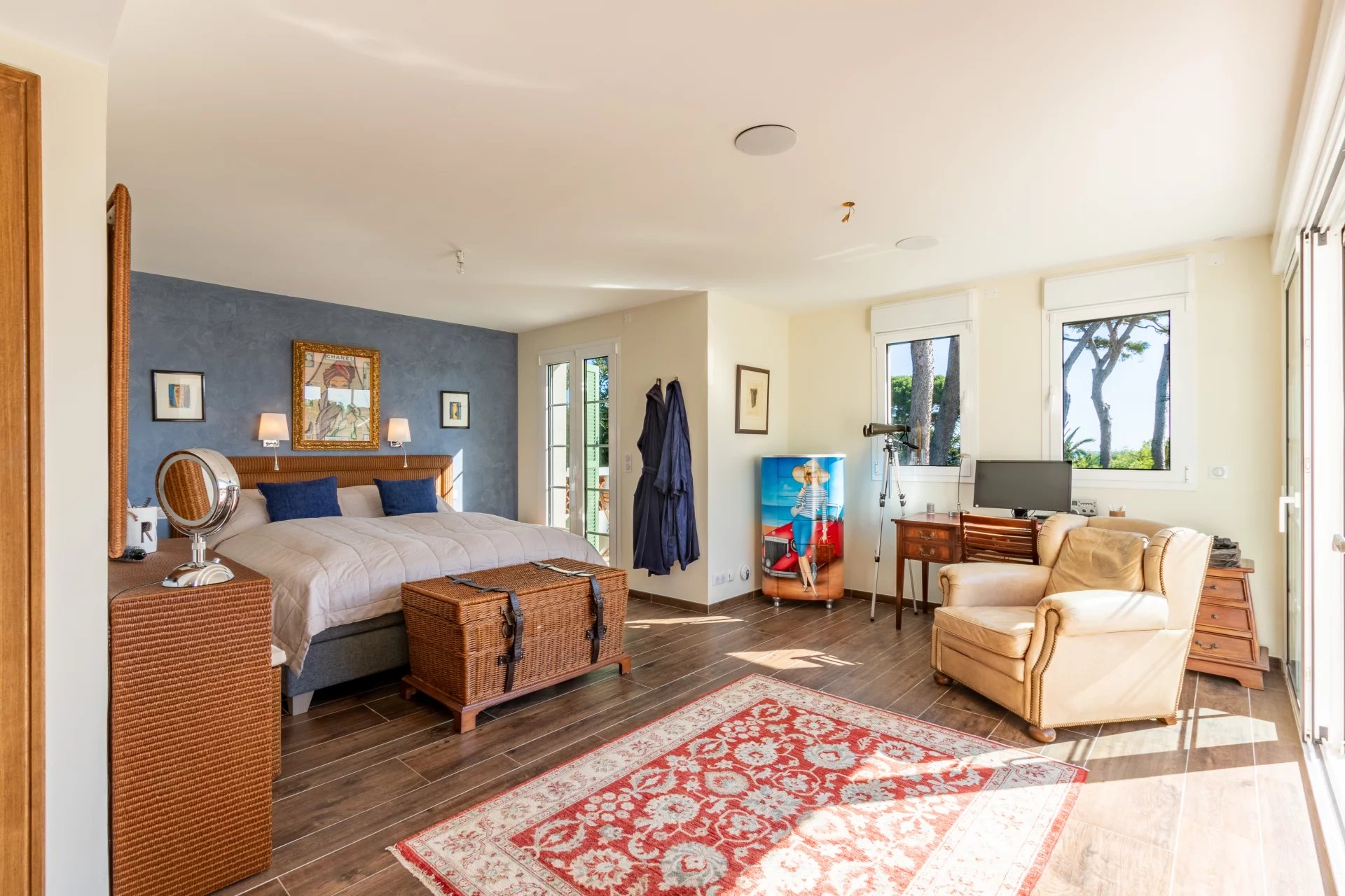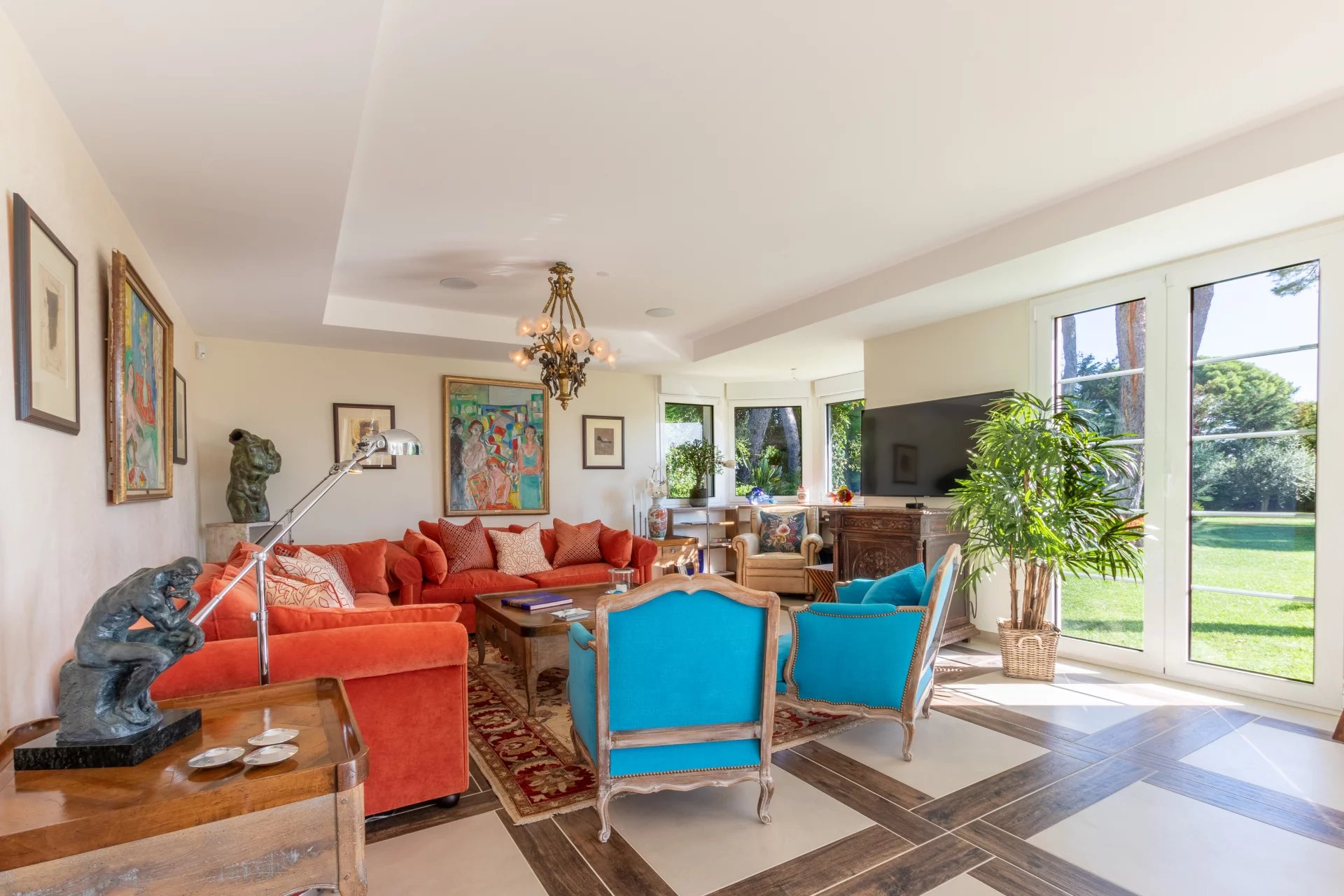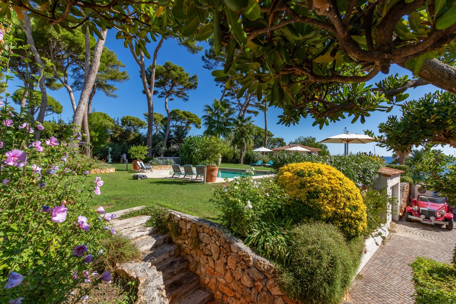 Close to the beaches of “La Garoupe”, attractive villa built on two levels and a basement for a total of 335 sqm and fully air-conditioned, surrounded with 1 573 sqm grounds with lovely views of the sea.