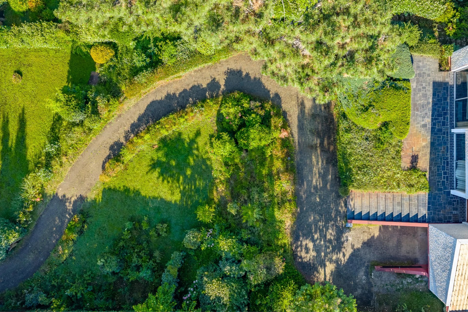 Outside, beyond the main south-facing terrace, a second north-facing terrace offers an alternative space, adapting to different times of the day and seasonal conditions. The garden, well-proportioned and designed to ensure privacy, blends harmoniously with the natural surroundings of the bay.