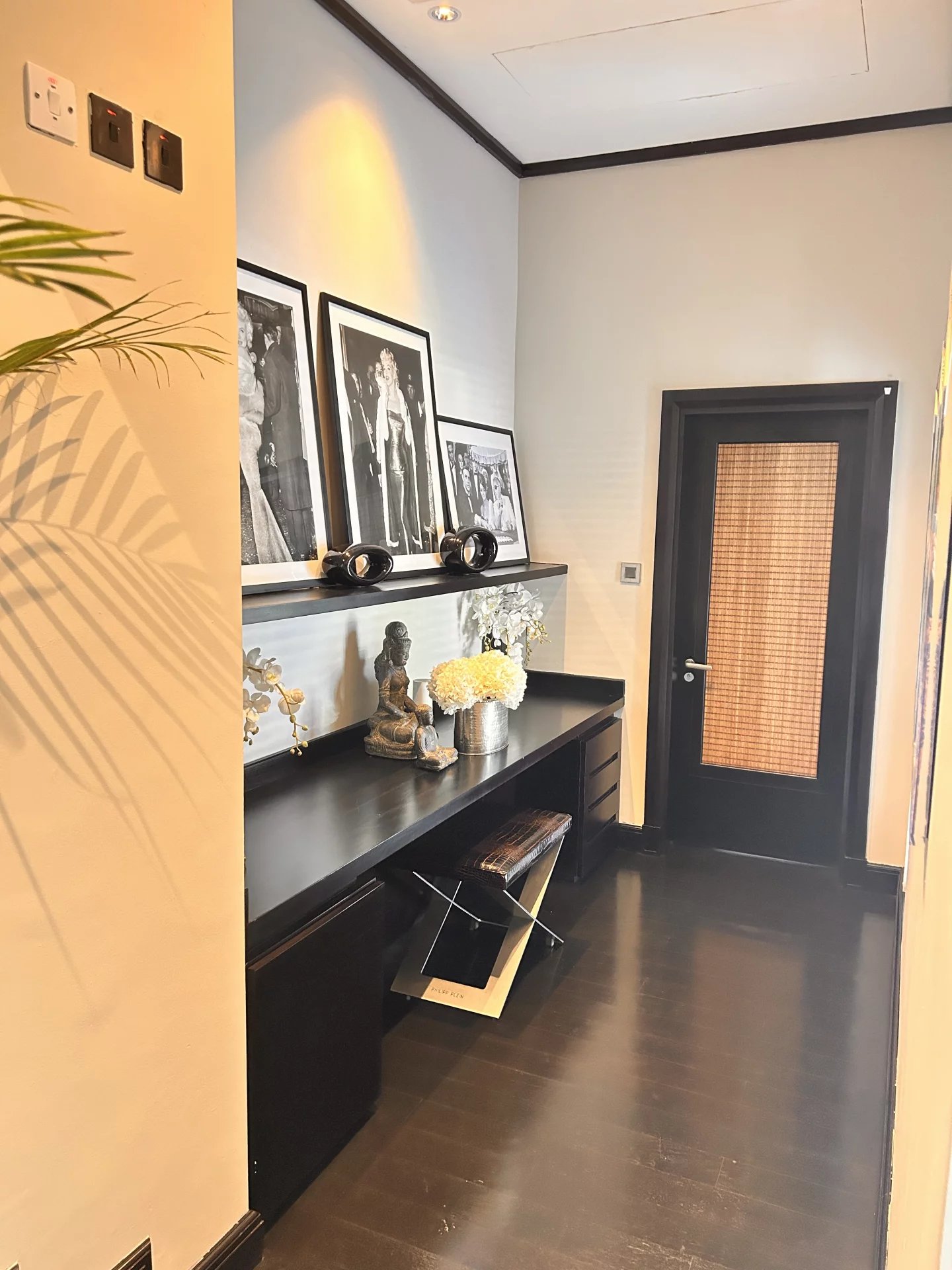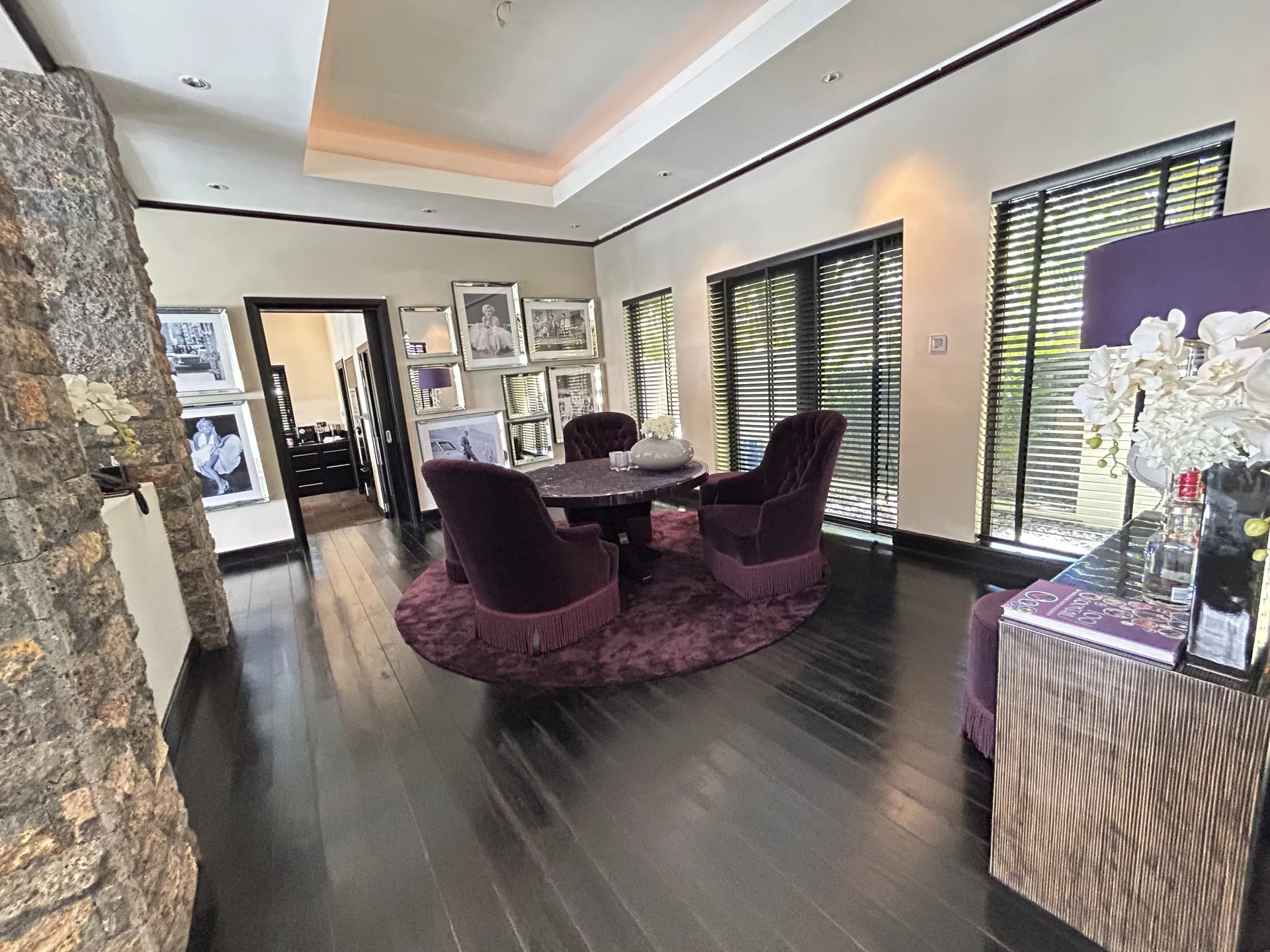 Situated along the signature hole 4, this spacious villa offers breathtaking views of the golf and of the lagoon from the furnished kiosk and the terrace surrounding the long swimming pool. The interior decoration is inspired from world-famous cinema stars, boasting a “glamour-chic” style unique to this villa at Anahita.