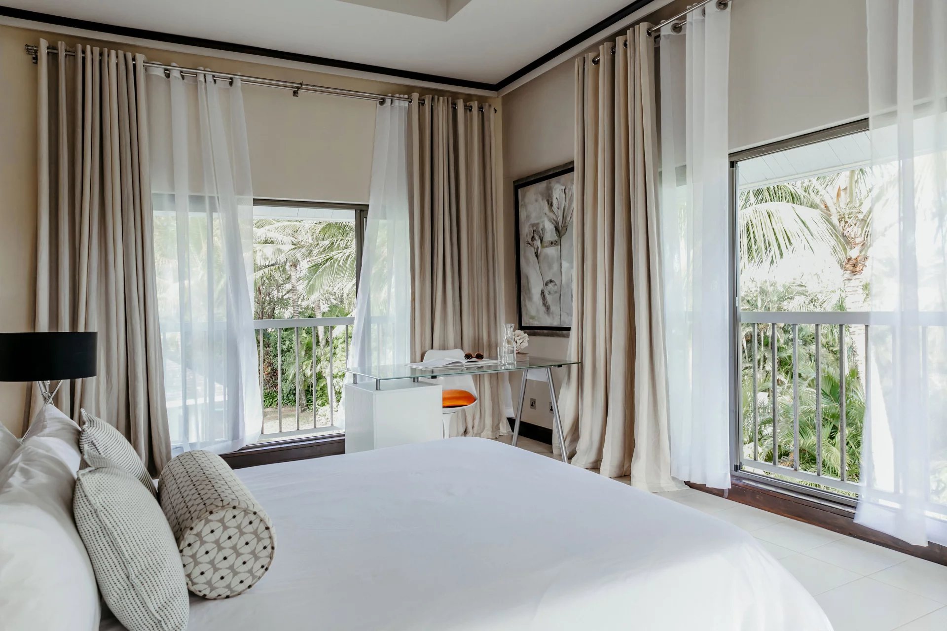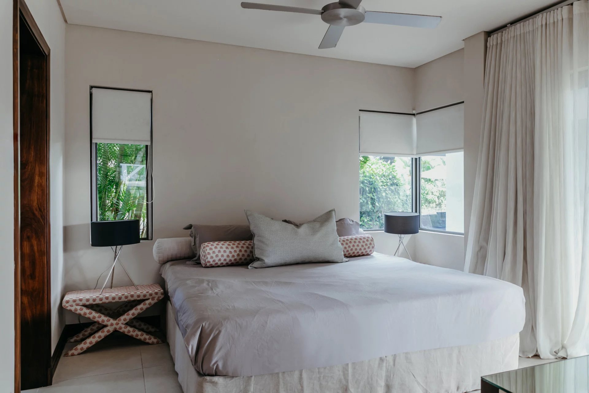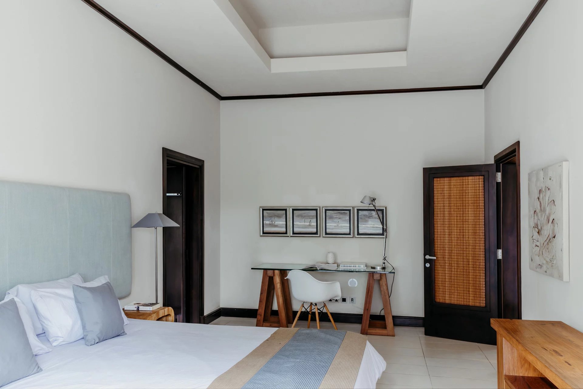 Learn moreThe villa consists of 4 large bedrooms, each equipped with bathrooms and dressing rooms, as well as an annex offering 2 additional bedrooms for optimal comfort. The "master" bedroom located upstairs offers direct access to a wooden decking terrace with a view of the nearby lagoon and ocean.