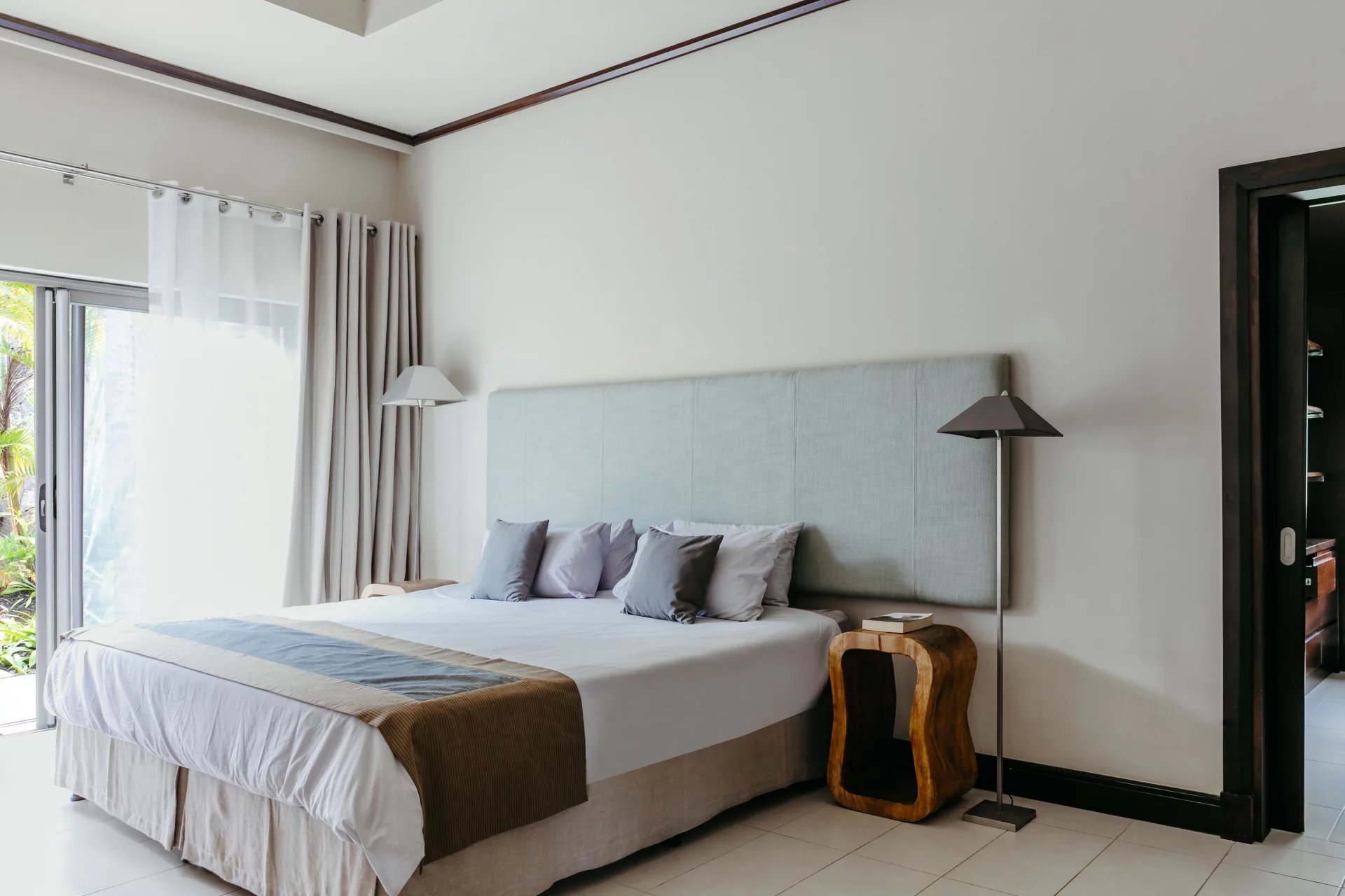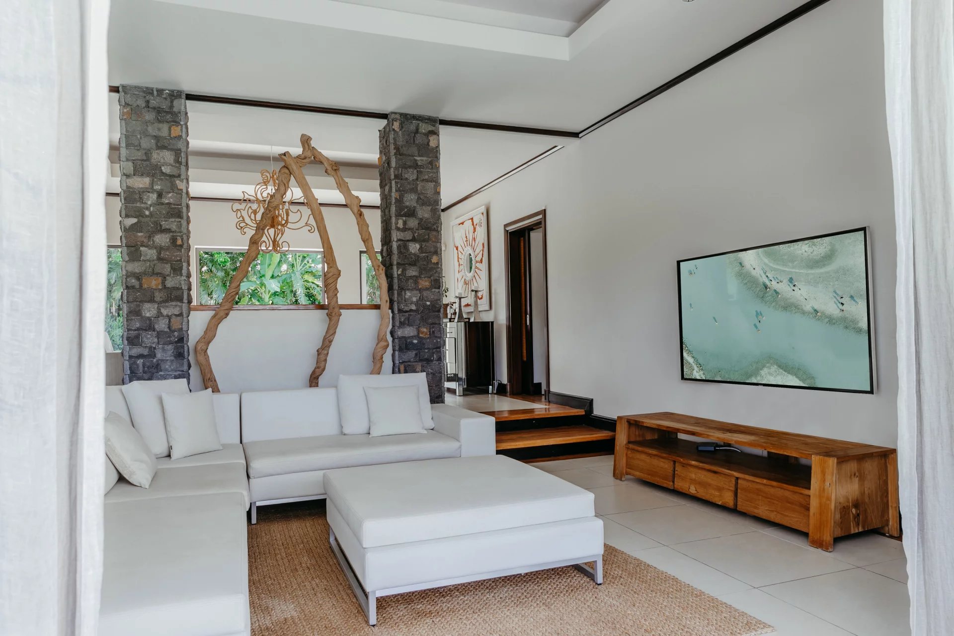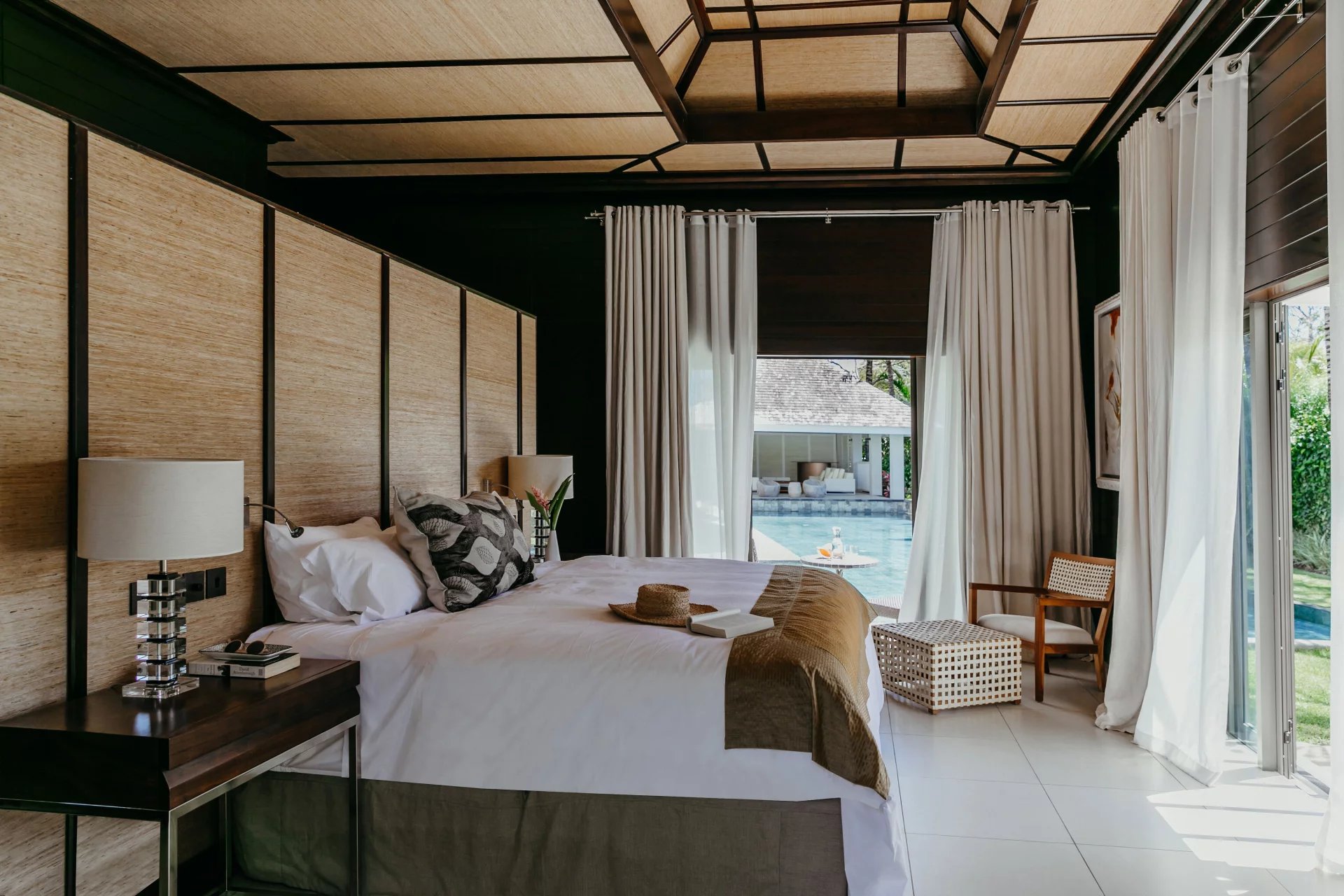 The villa consists of 4 large bedrooms, each equipped with bathrooms and dressing rooms, as well as an annex offering 2 additional bedrooms for optimal comfort. The "master" bedroom located upstairs offers direct access to a wooden decking terrace with a view of the nearby lagoon and ocean.