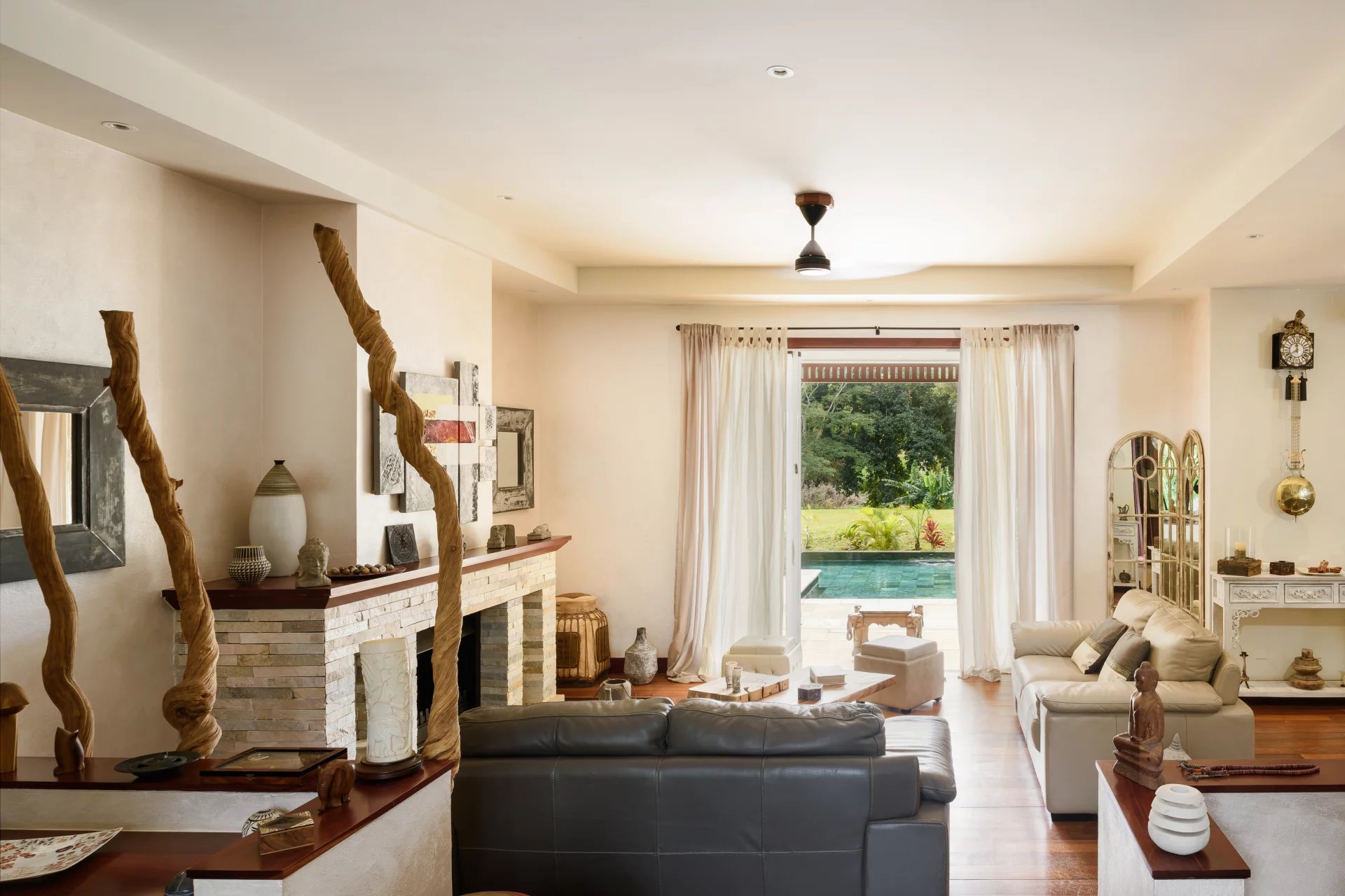 The villas are located on plots ranging in size from 600 m2 to over 2,500 m2. Each of them has a large terrace and a swimming pool overlooking a magnificent private tropical garden. Each villa is designed to offer optimal views of the spectacular golf course, the mountain or the sea, while the generous outdoor areas of the verandas give a real feeling of space and openness. They are available in a variety of configurations and all offer spacious interiors filled with natural light. Floor-to-ceiling double sliding doors seamlessly connect the main living area with generous outdoor spaces.