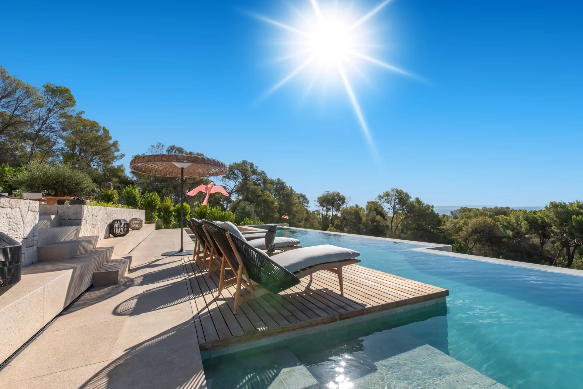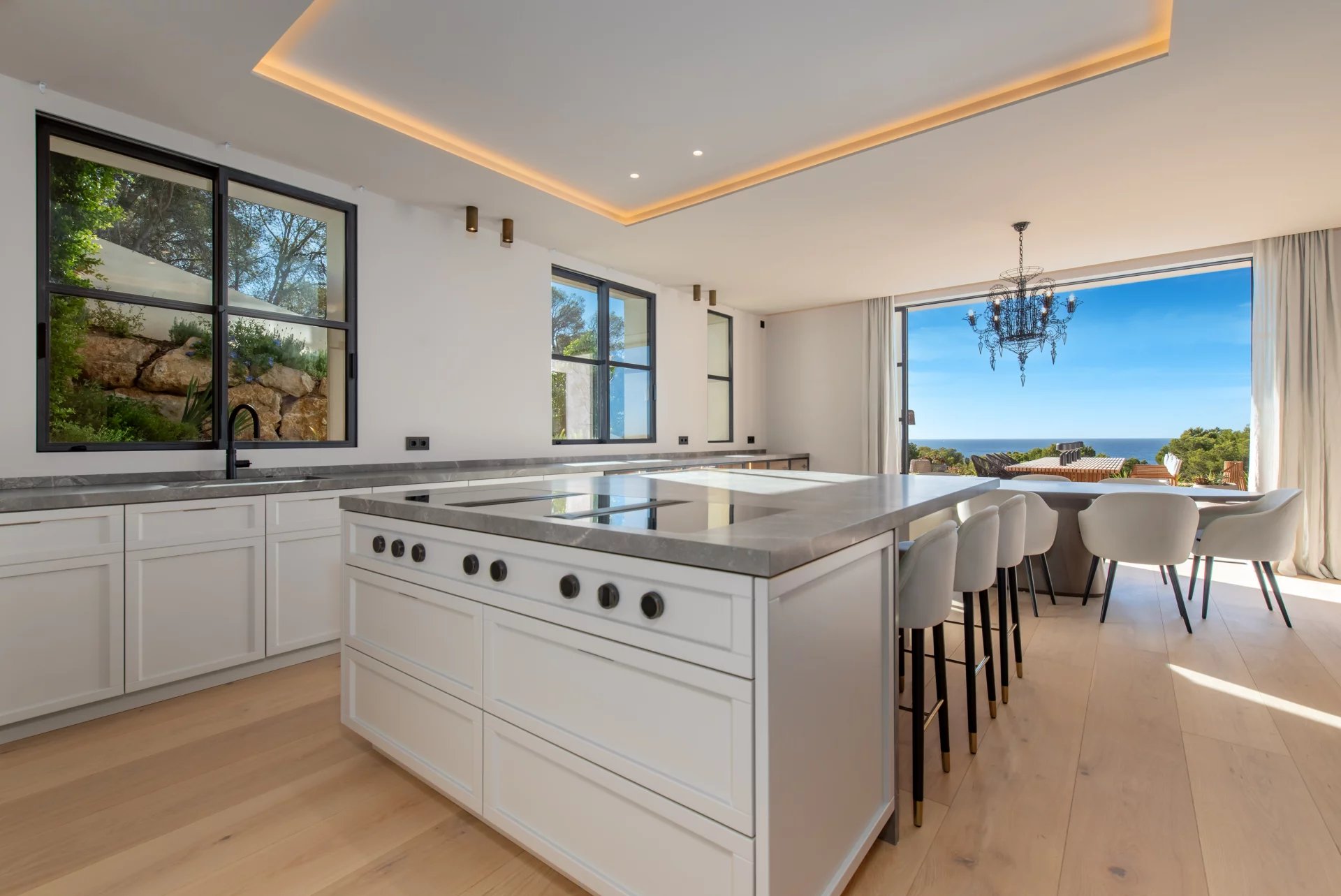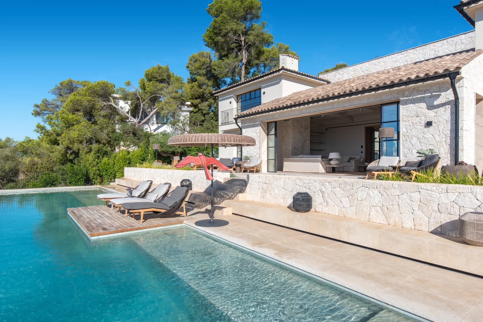 If you are looking for an exclusive property in a quiet and sought after area, you have come to the right place. This is an elegant mansion with sea views in Bendinat, recently completed and ready to move in. "The perfect choice for those who want the best of the best". Set on a generous plot of 2,362 m² very close to the sea, this property offers breathtaking views of the Bendinat coastline, the Mediterranean and the islands of Cabrera and Illetas. The magnificent villa, already finished, stands out for its spaciousness with 787.60 m² built, distributed in six bedrooms, six bathrooms, a guest toilet, living room, kitchen, laundry room and storage room. The mansion has been built with top quality materials, combining Mediterranean style with a modern and elegant touch. The result is an exceptional property that impresses from the first moment. Among its most distinguished details are the oak wood floors, natural beams and large windows that allow you to enjoy the views from almost every room.
