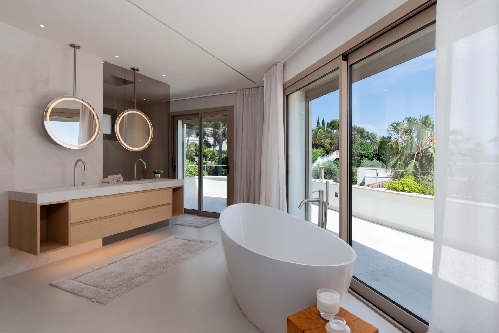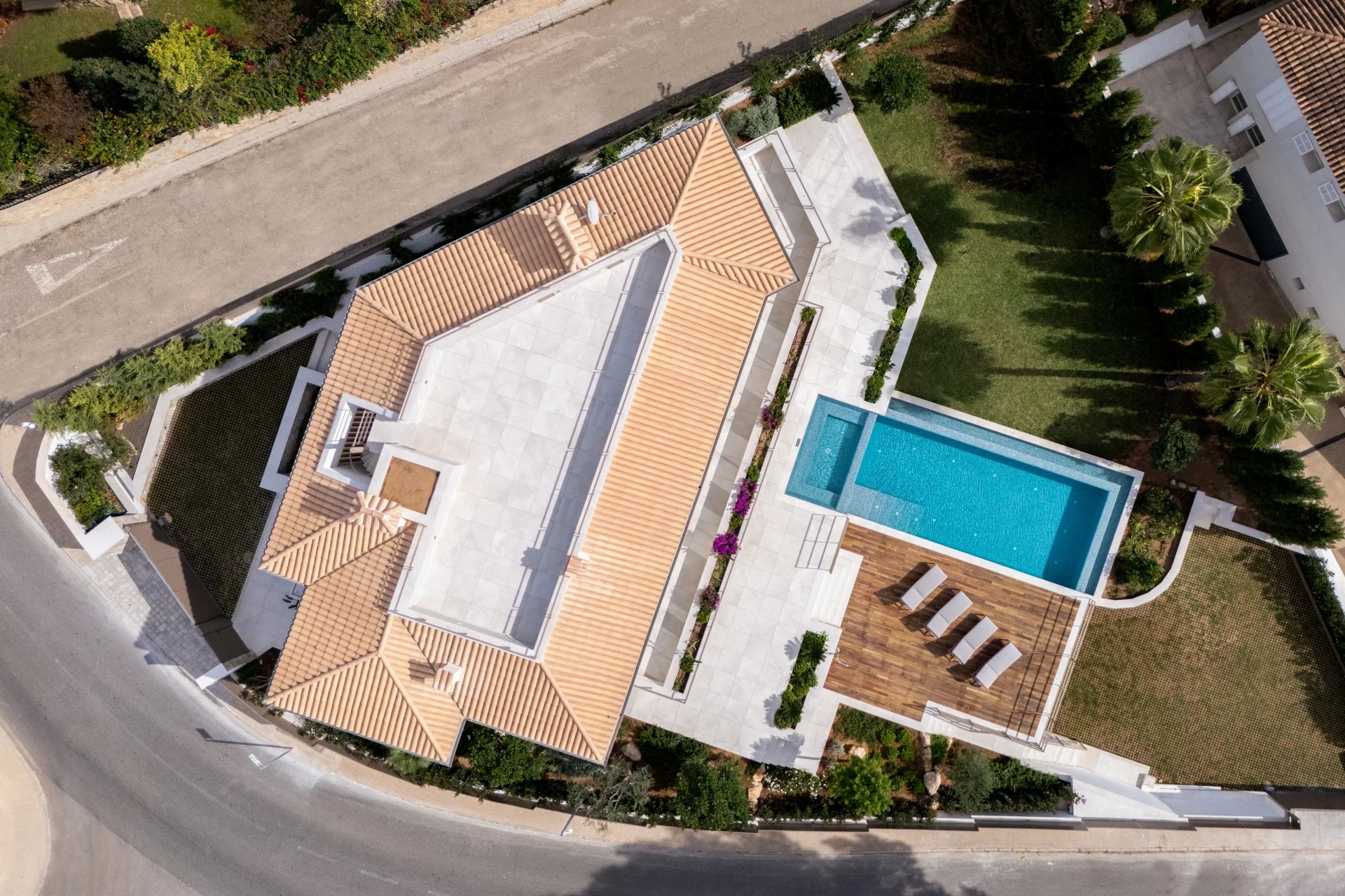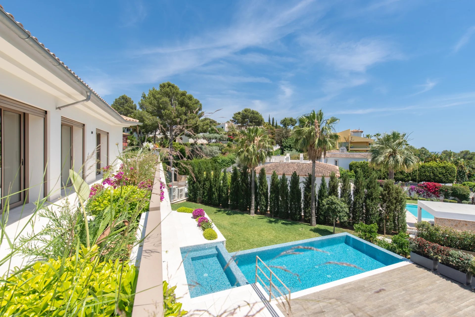 The Mediterranean garden has been carefully designed to offer privacy and beauty all year round. Surrounded by native vegetation, it houses a large solarium area and a spectacular infinity pool.