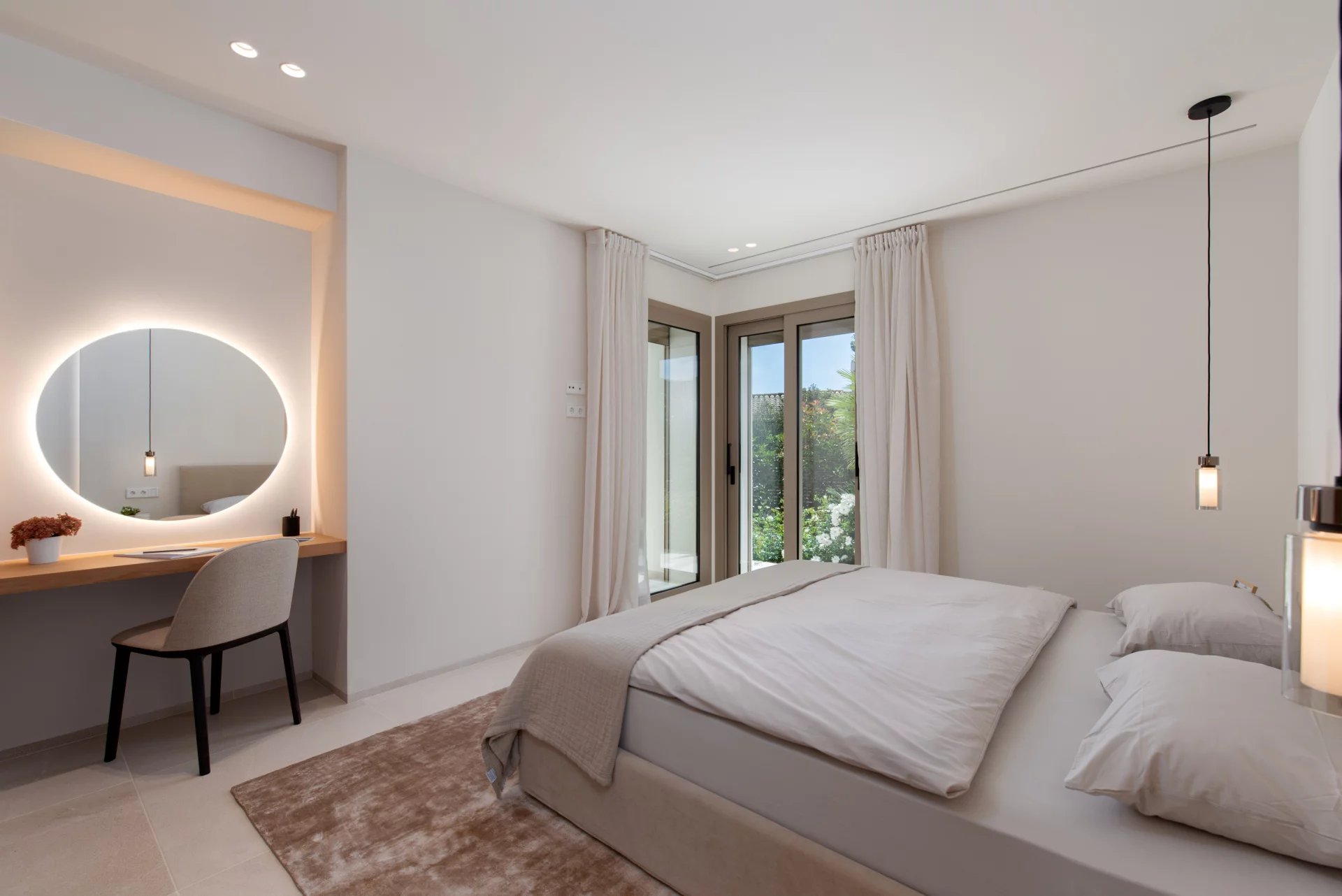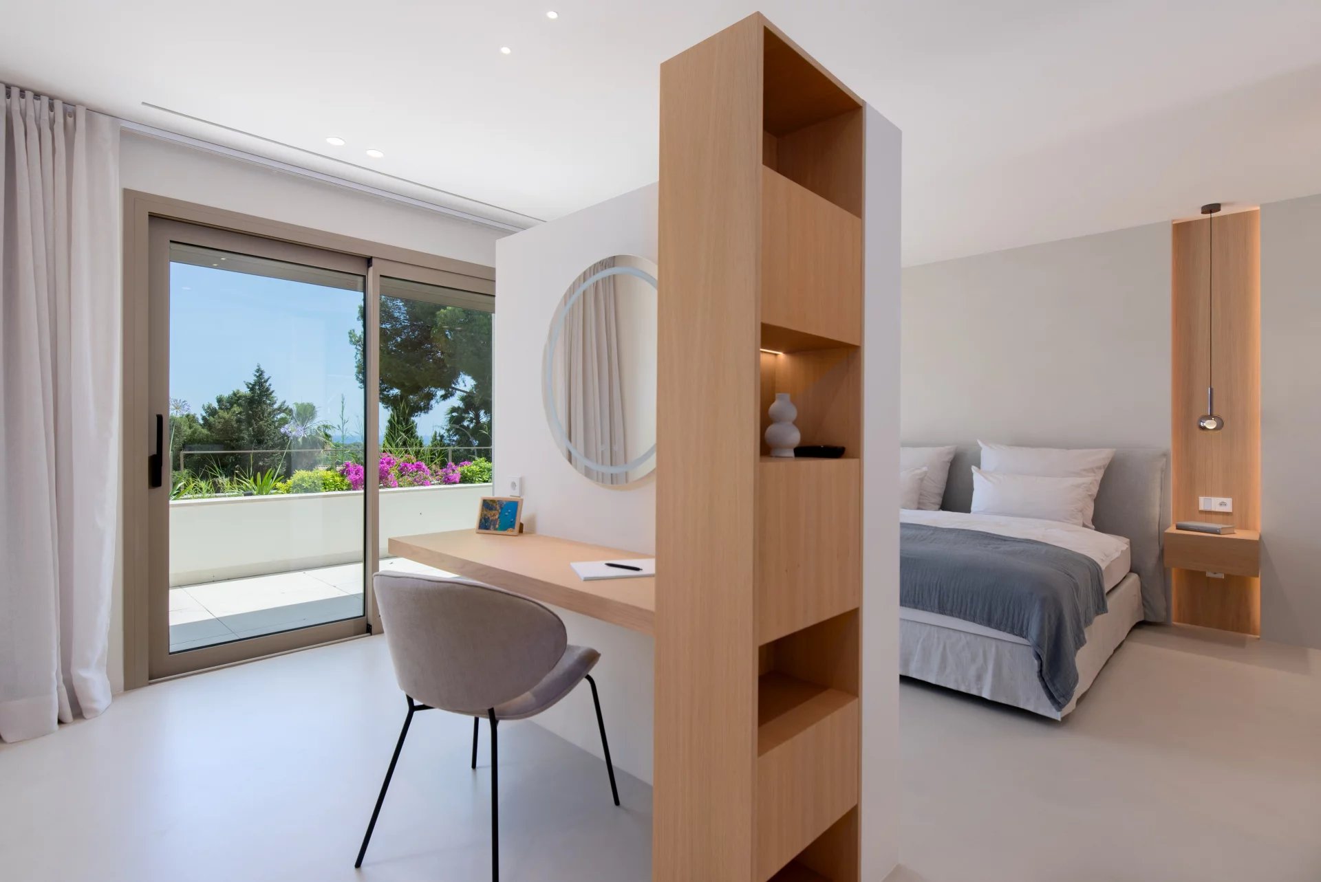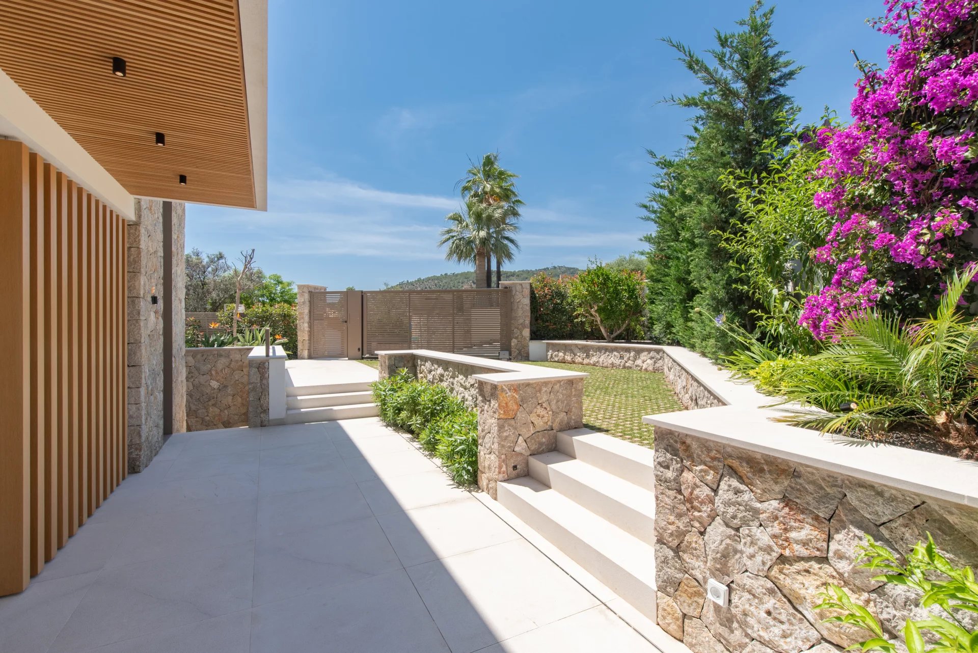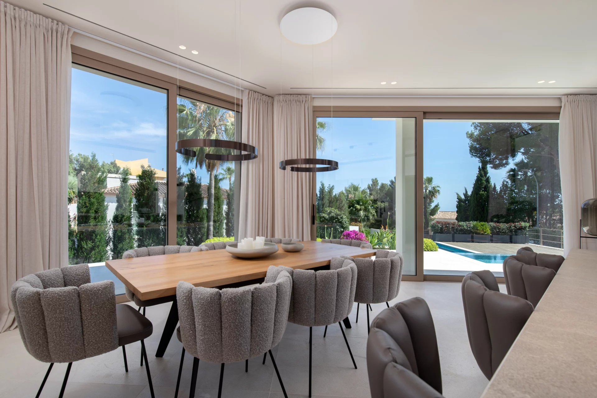 The Mediterranean garden has been carefully designed to offer privacy and beauty all year round. Surrounded by native vegetation, it houses a large solarium area and a spectacular infinity pool.