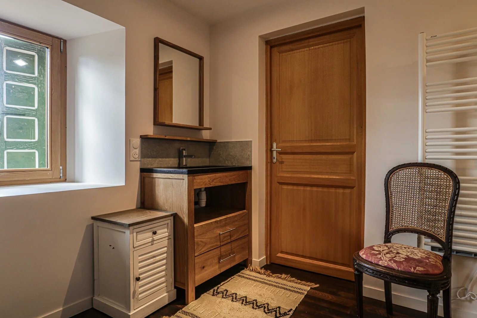 Learn moreL'appartement du bas 93m² a été entièrement refait avec des matériaux hauts de gamme, assurant ainsi qualité et confort. La pompe à chaleur moderne et le poêle à bois contribuent à une atmosphère chaleureuse et éco-responsable, faisant de cette demeure un havre de paix aussi luxueux qu'accueillant.