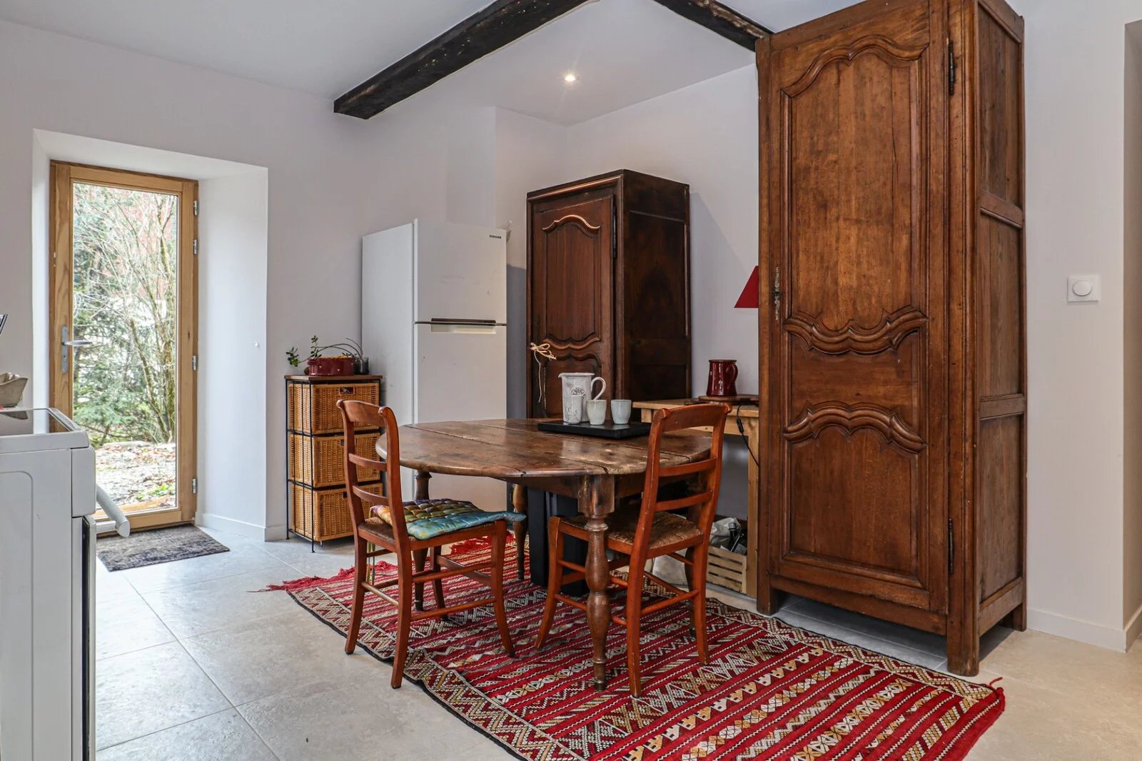 L'appartement du bas 93m² a été entièrement refait avec des matériaux hauts de gamme, assurant ainsi qualité et confort. La pompe à chaleur moderne et le poêle à bois contribuent à une atmosphère chaleureuse et éco-responsable, faisant de cette demeure un havre de paix aussi luxueux qu'accueillant.