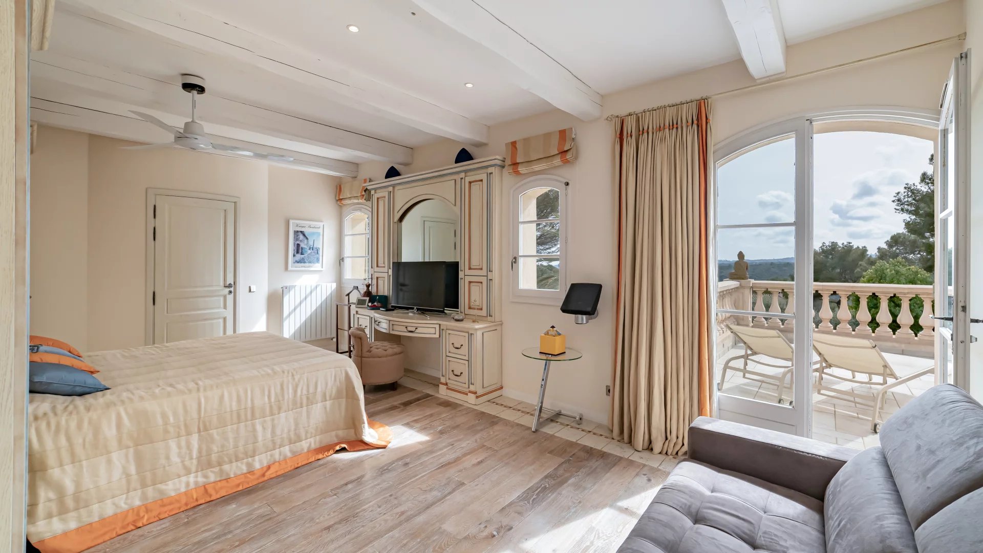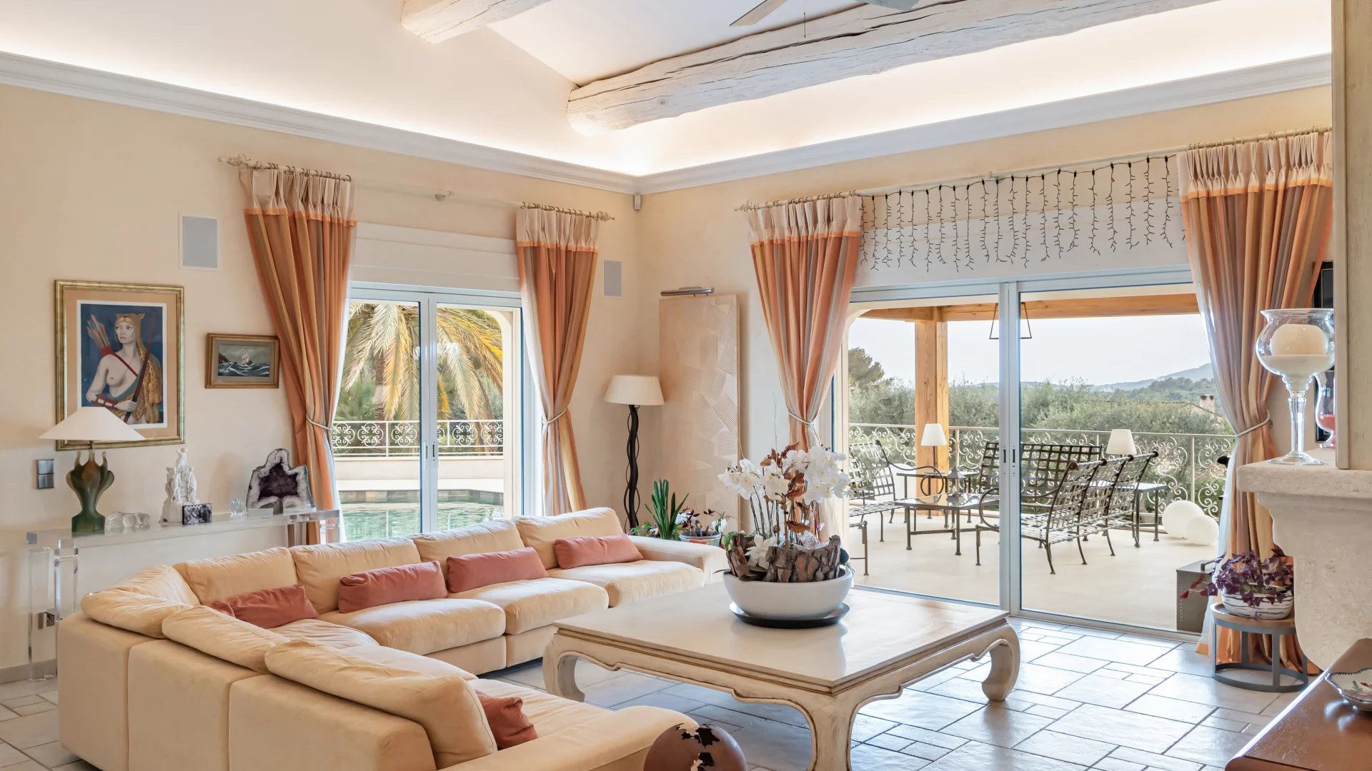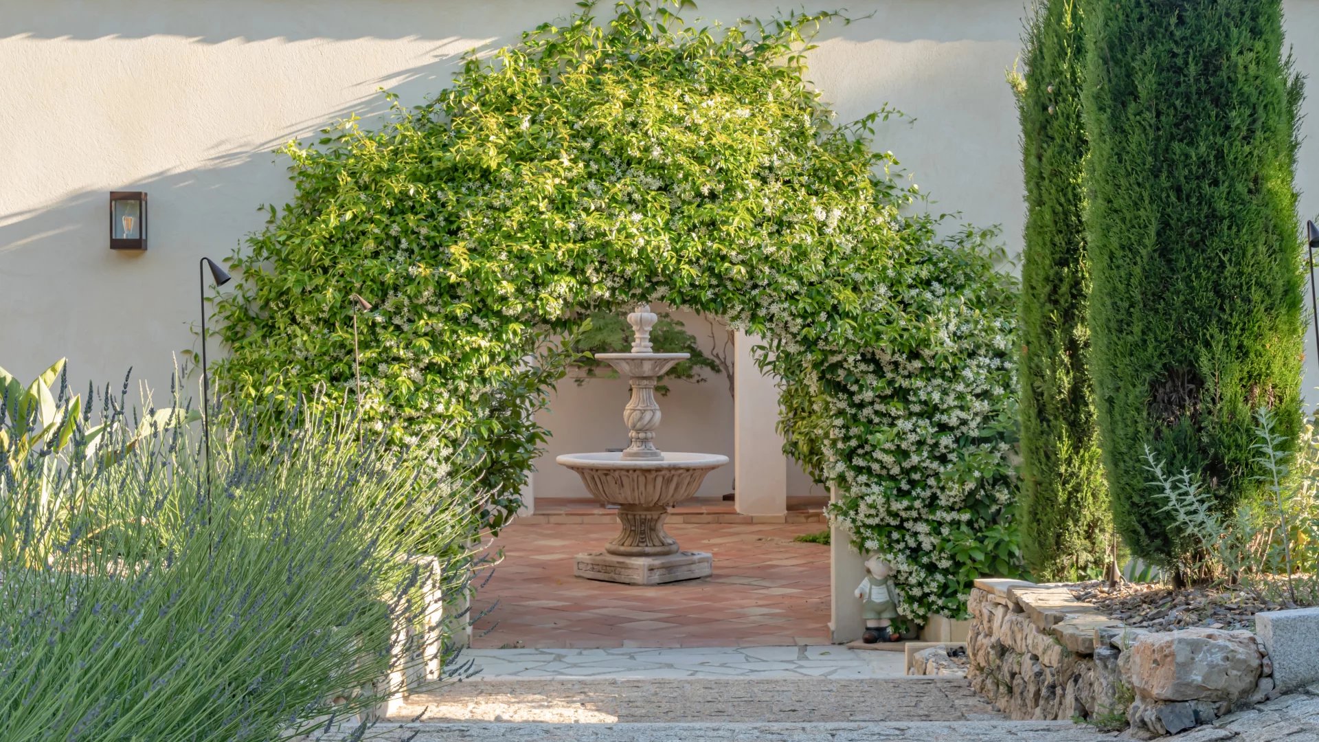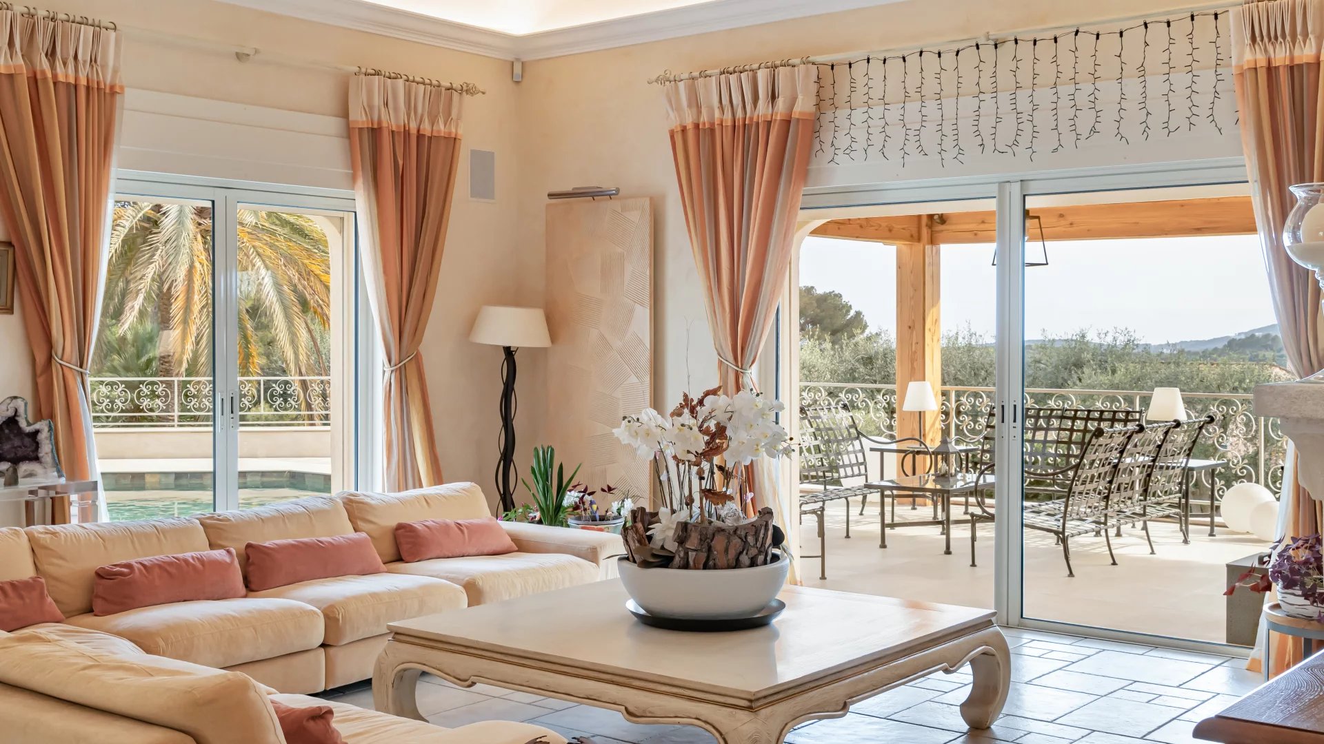 The magnificent fenced and landscaped grounds, planted with Mediterranean species, olive trees and a vegetable garden, are equipped with a sophisticated irrigation and lighting system, creating an exceptional living environment.