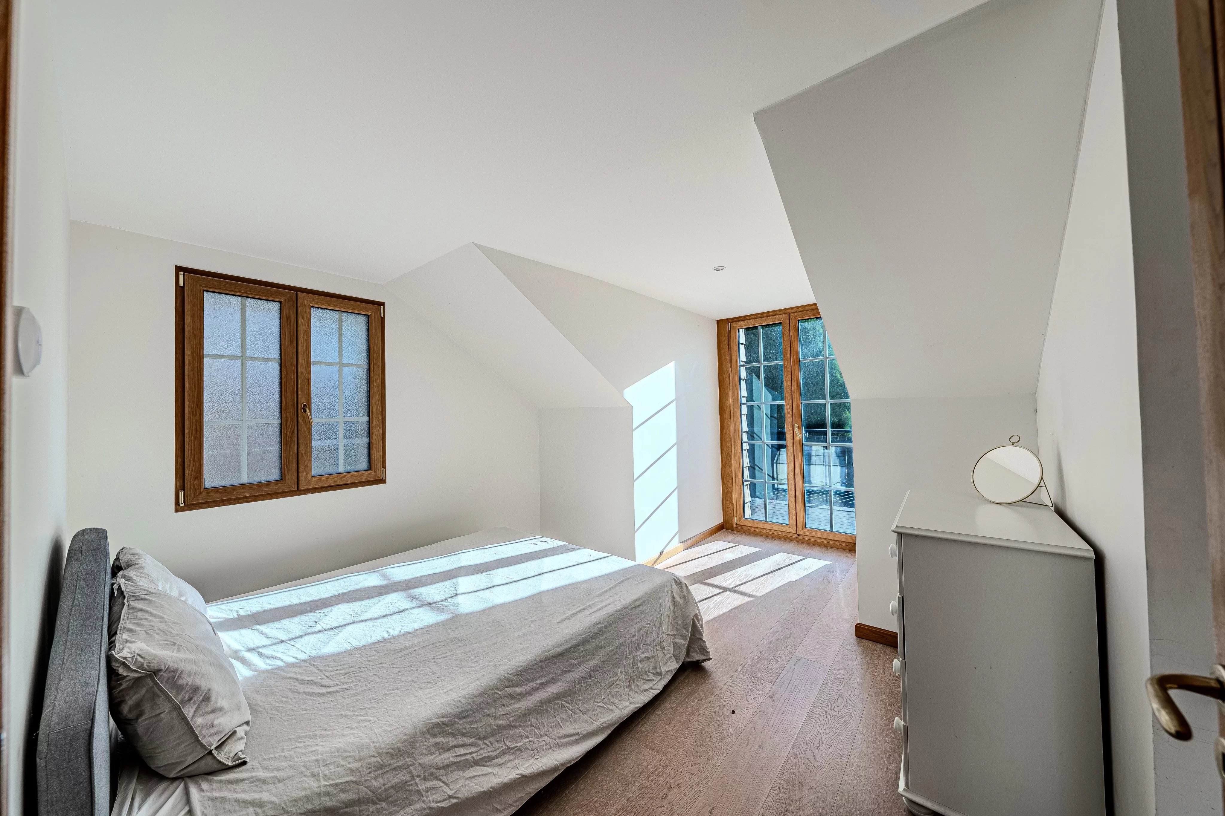 - The second floor houses the main sleeping area and offers three bedrooms, including a master bedroom with dressing room and terrace access, a large bedroom also opening onto a terrace, and a third bedroom. A modern shower room with walk-in shower completes this level.