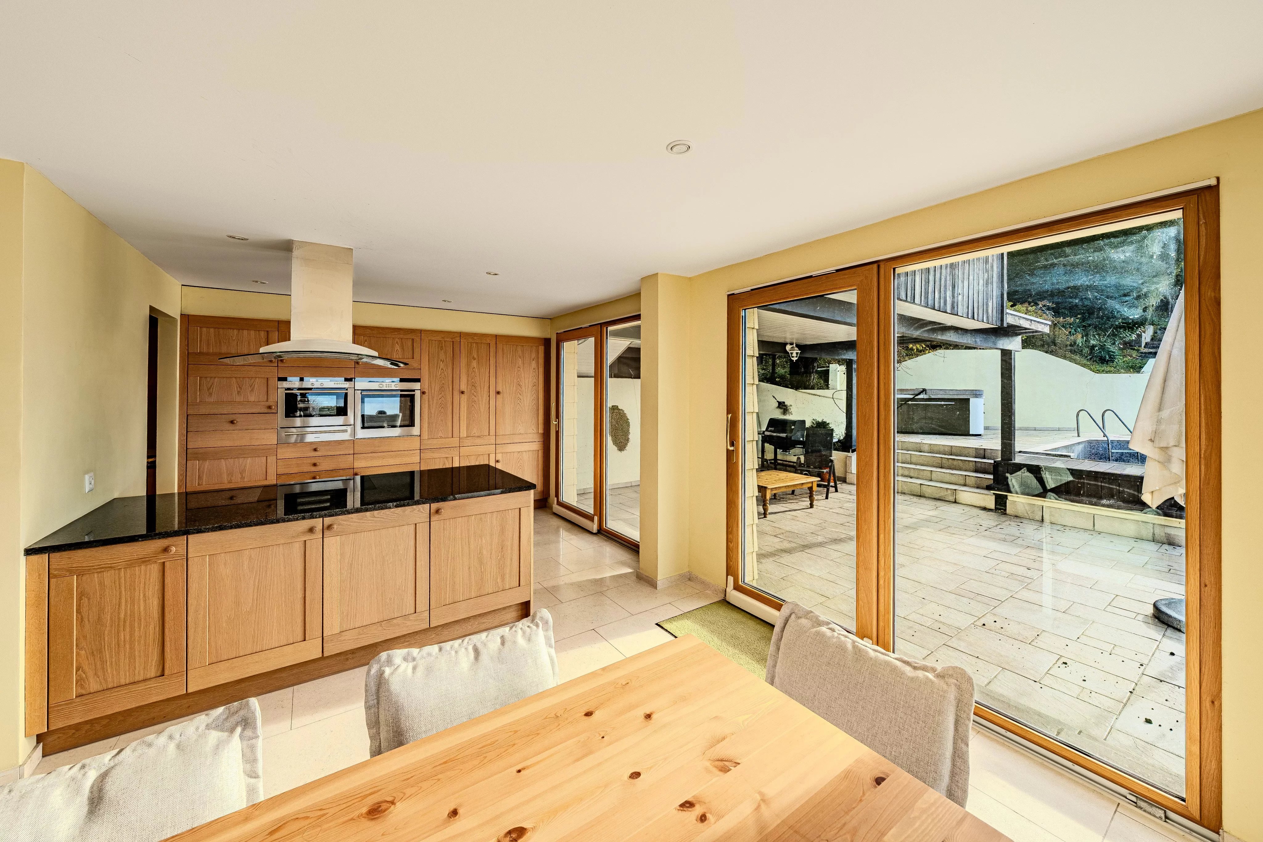 The outdoor areas are one of the key highlights of the property. A heated outdoor swimming pool, a jacuzzi and several terraces provide the perfect setting for relaxation throughout the year. The garden is tastefully arranged and includes a separate garden pavilion as well as a covered winter garden, ideal for plant lovers or for enjoying quiet moments sheltered from the weather.
