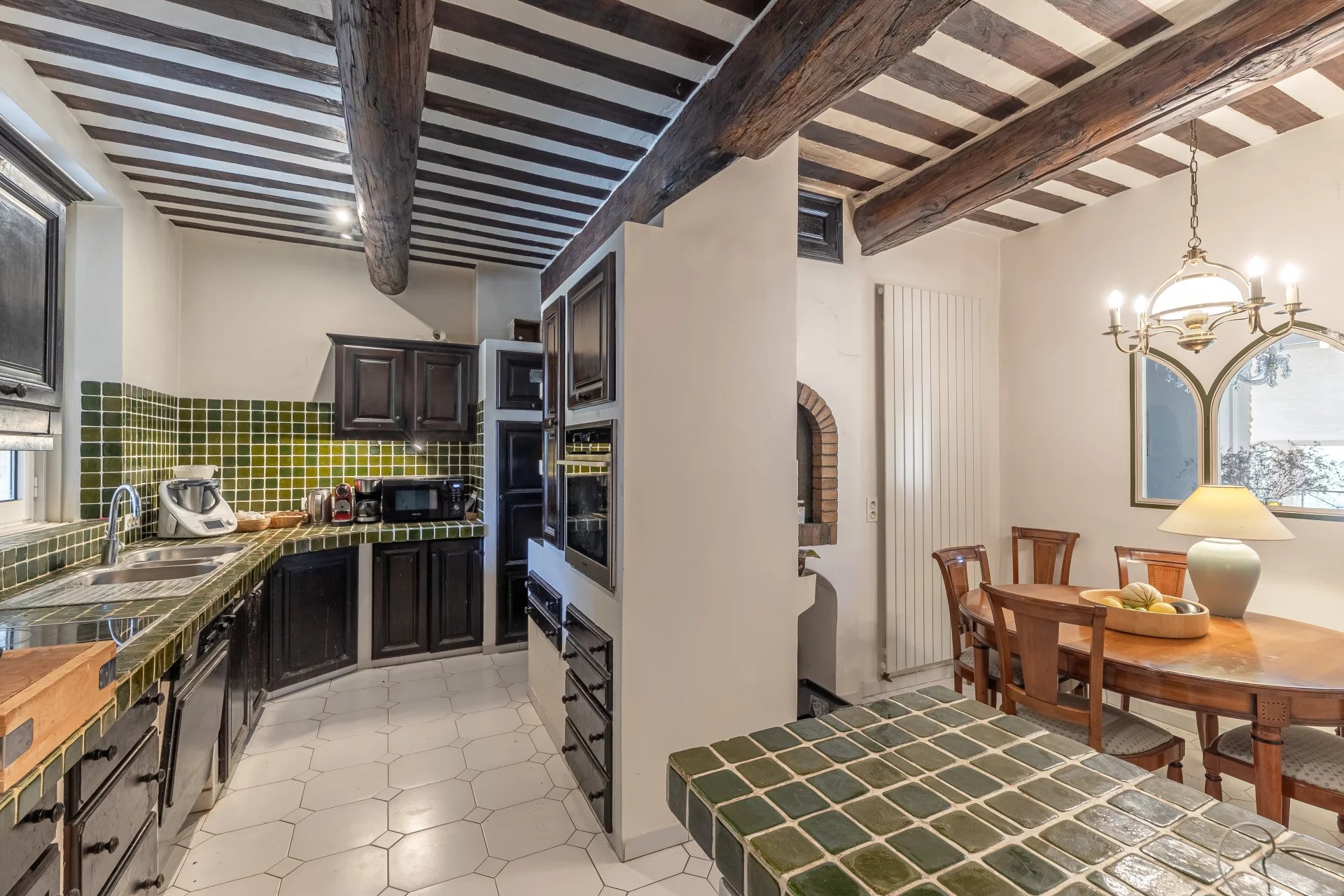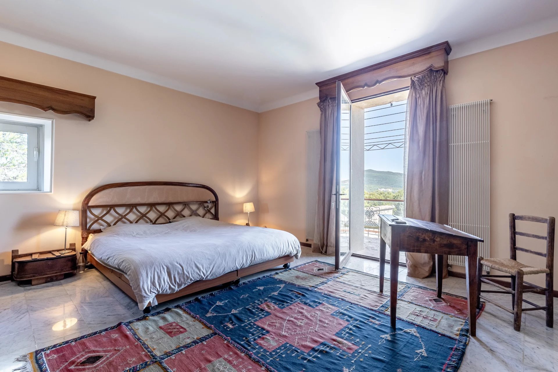 Its assets: the peacefulness of the setting, its character with its stone and old parefeuille floors, its French ceilings and its terraces.