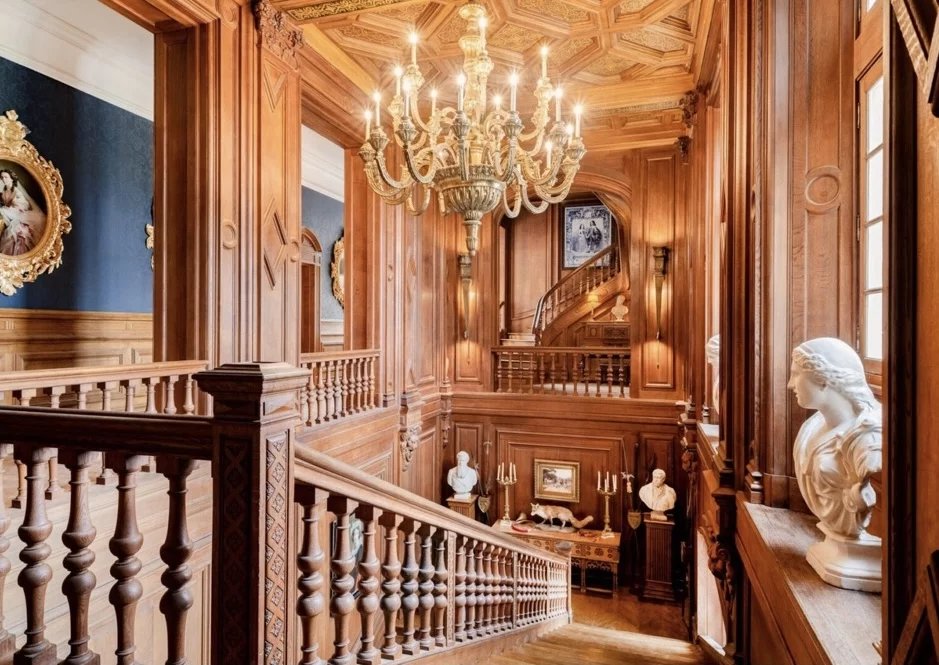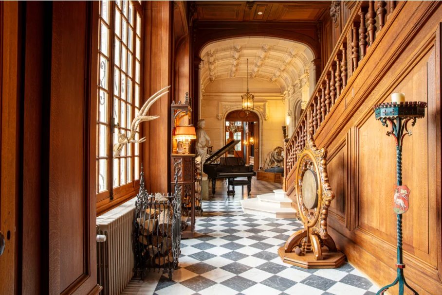 We find here a Porte d'honneur, ceilings adorned with moldings and elegant chandeliers, leading to three enfilade reception rooms, enhanced by François I-style fireplaces.