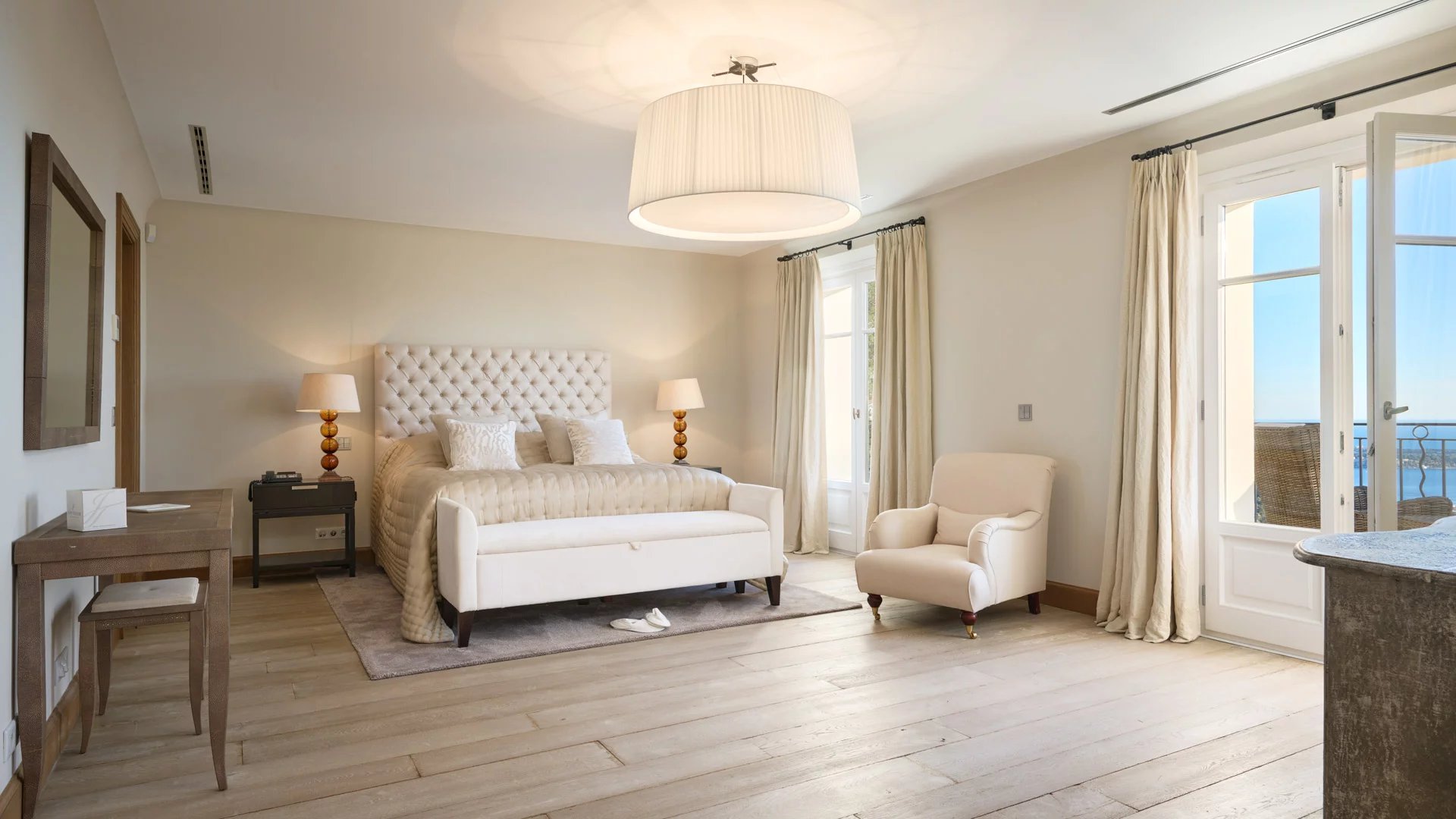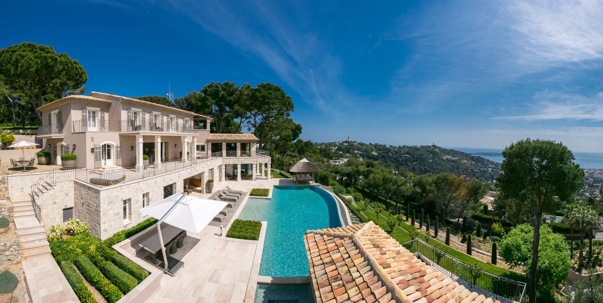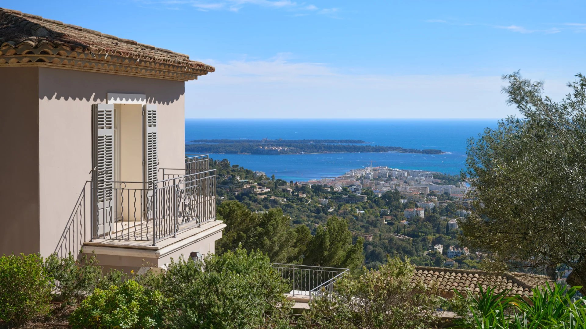 Co-exclusivity. Situated on the heights of Cannes' most coveted hill, this sumptuous property enjoys spectacular panoramic views over the bay, the Lérins islands and the Estérel massif.