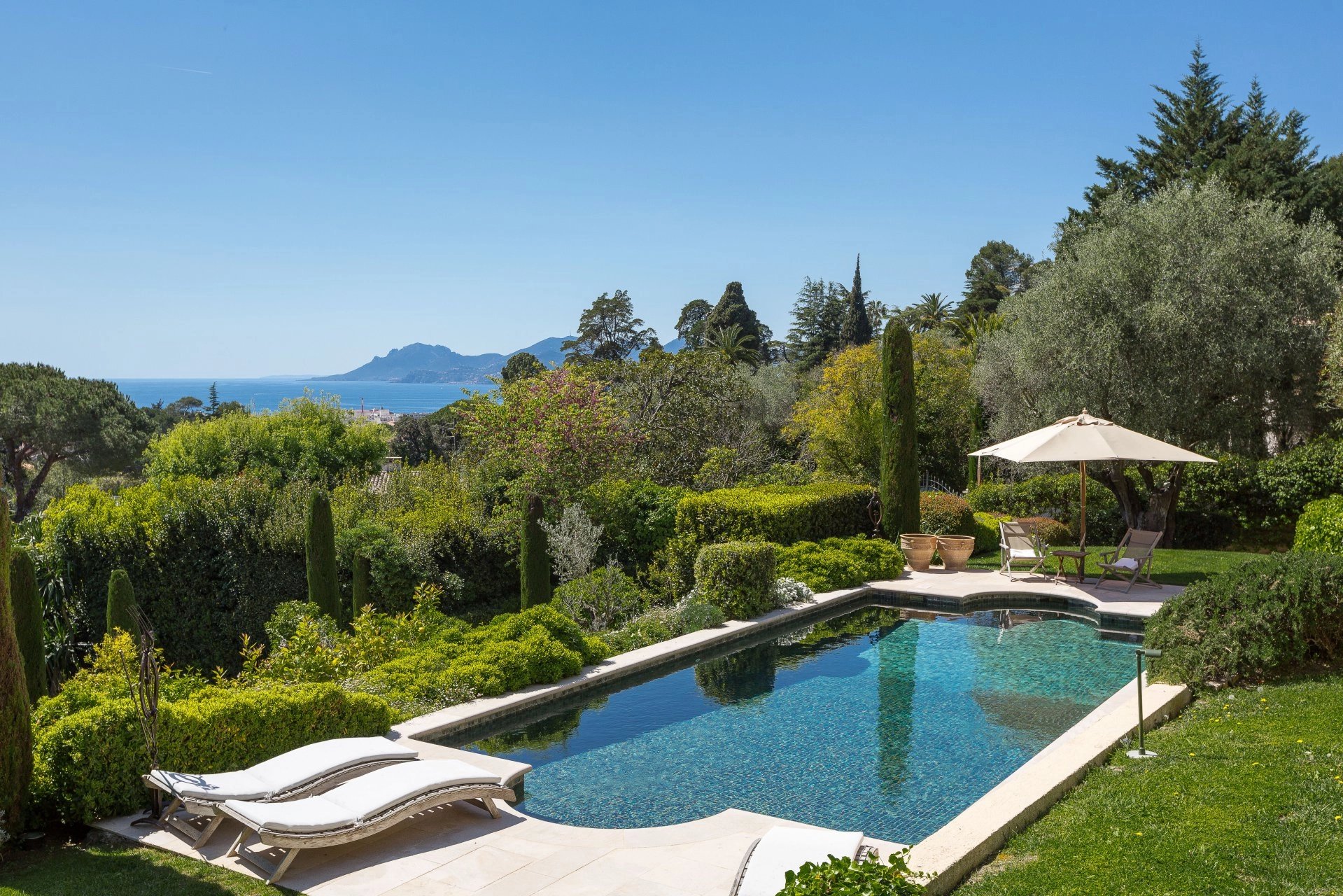 Just a few minutes' walk from the town center, in one of Cannes' most sought-after neighborhoods, this superb property offers breathtaking views of the sea, the Bay of Cannes and as far as the Estérel massif.