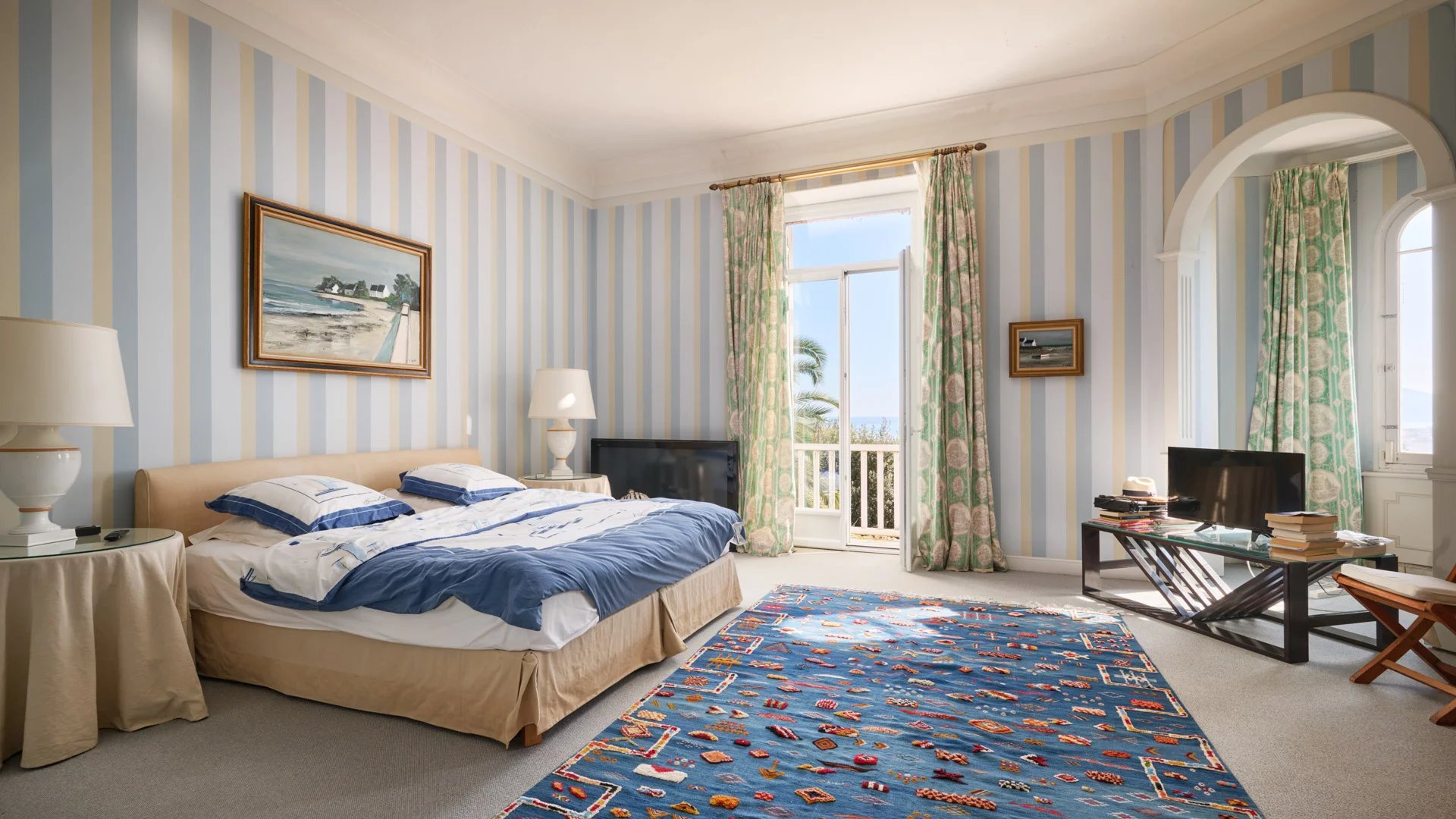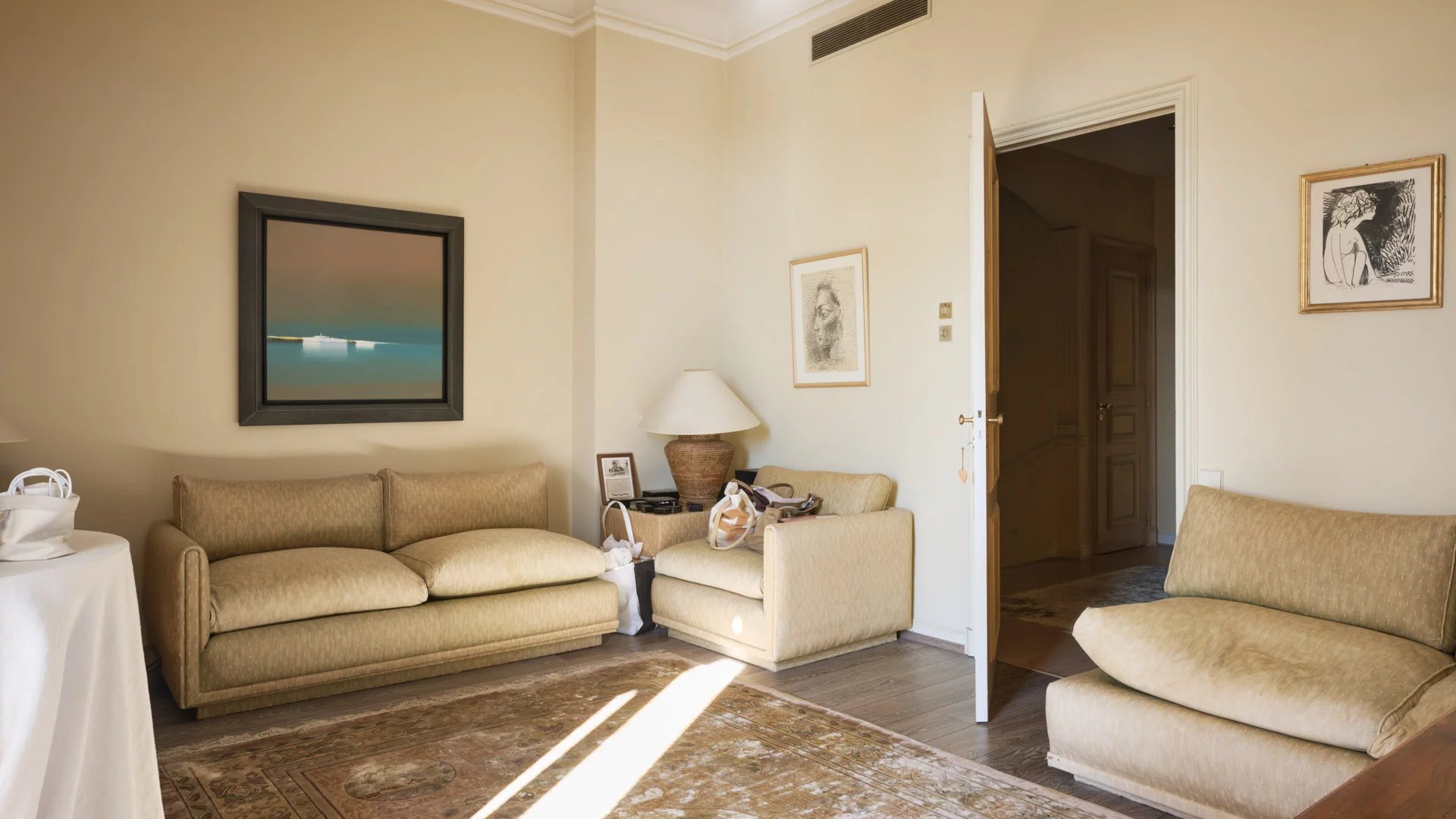 In a highly sought-after residential area of Cannes, this 1850 residence boasts magnificent sea and Esterel views and high ceilings.