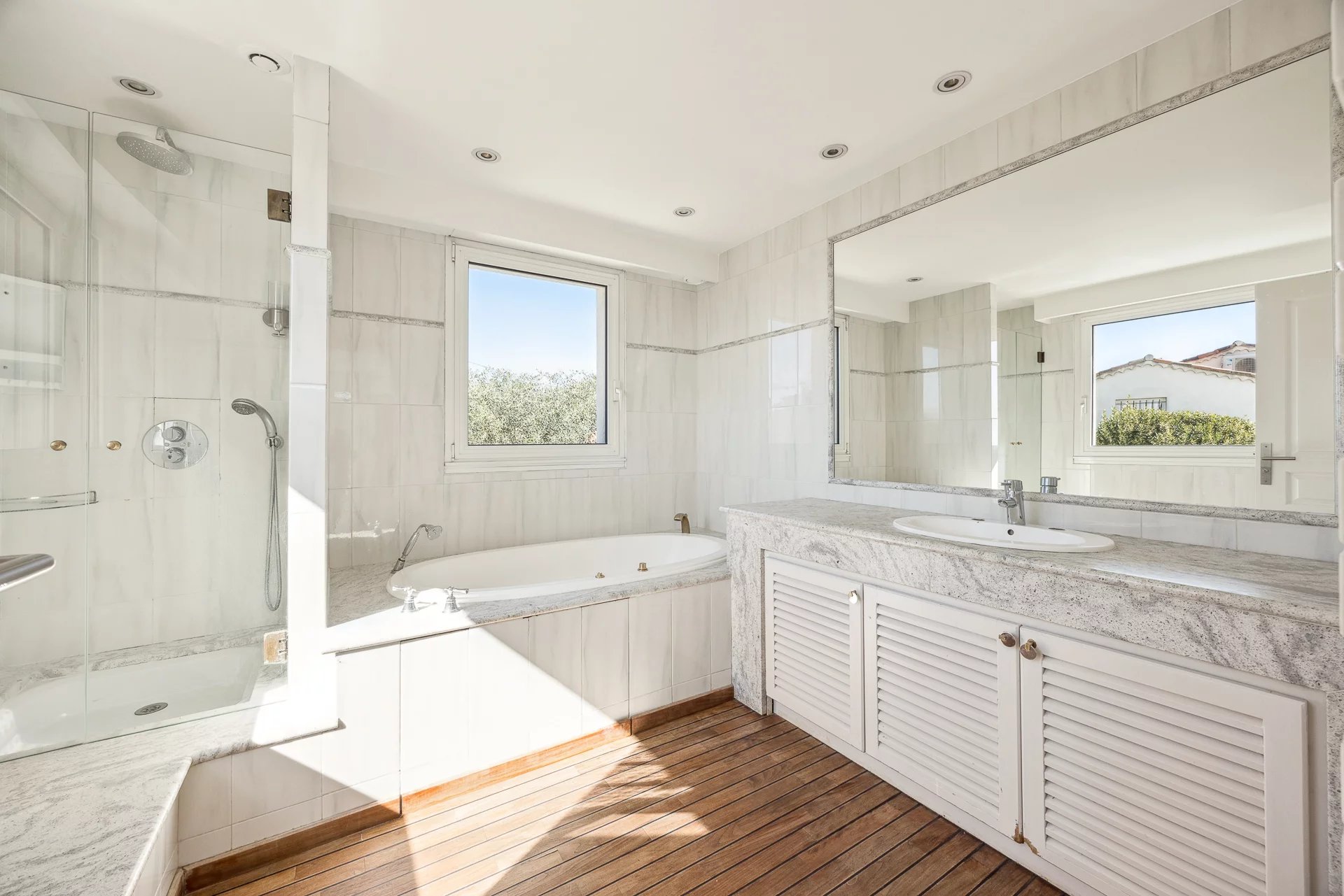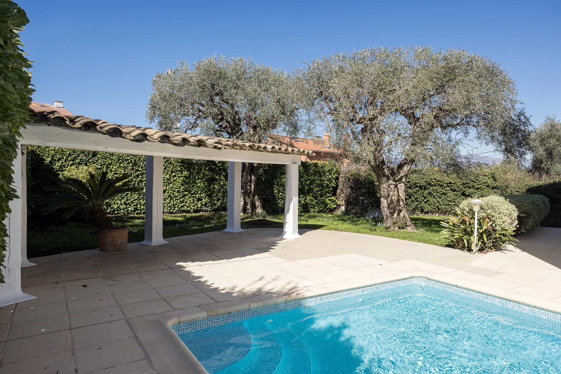 Close to the center of Cannes, shops, and main roads, yet in absolute tranquility, this beautiful modernized Provençal villa of around 176 sqm (266 sqm of total space) offers a stunning view from the upper floor of the Lérins Islands and the hills of Le Cannet and La Californie.